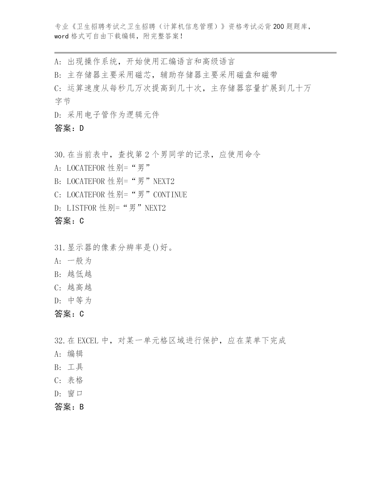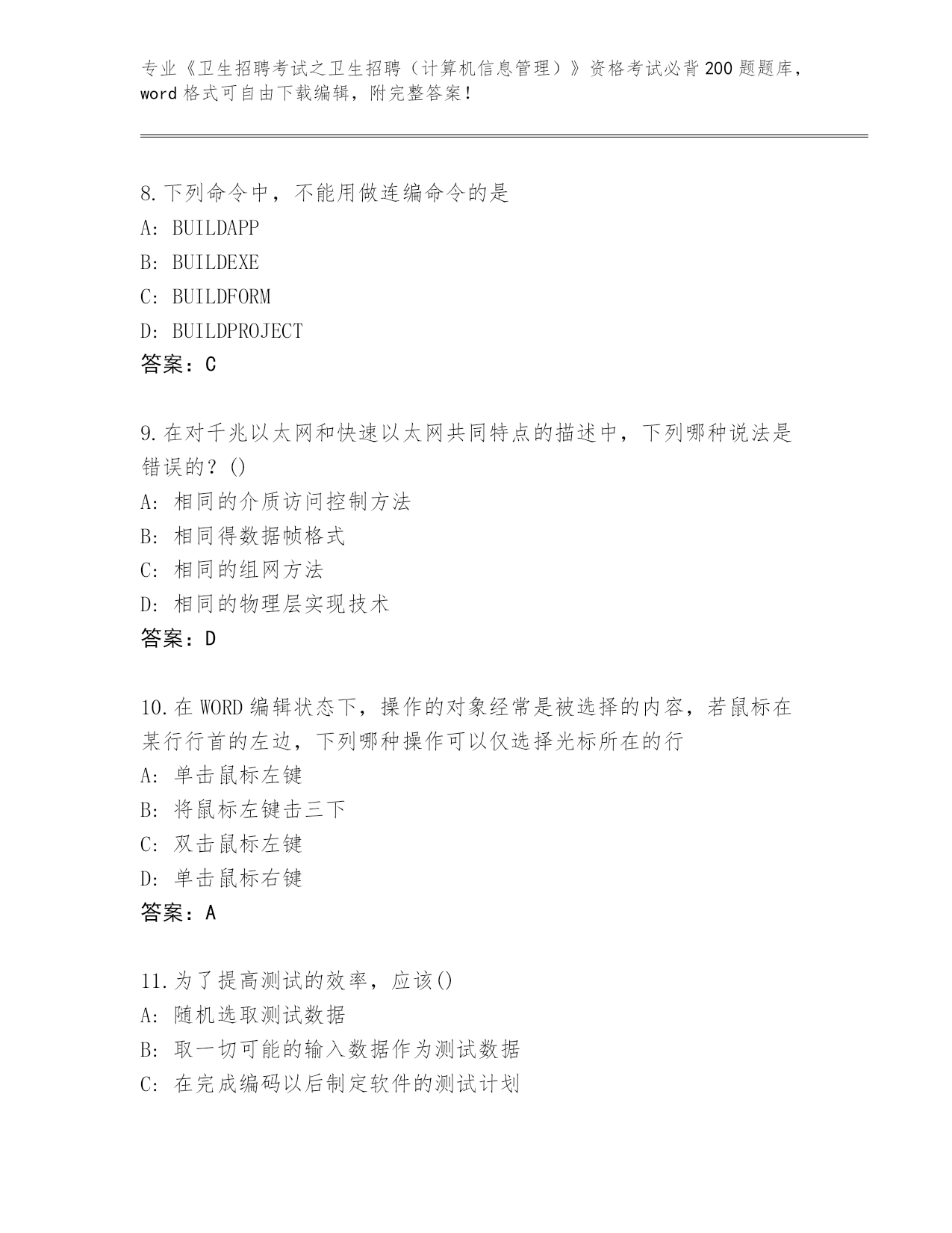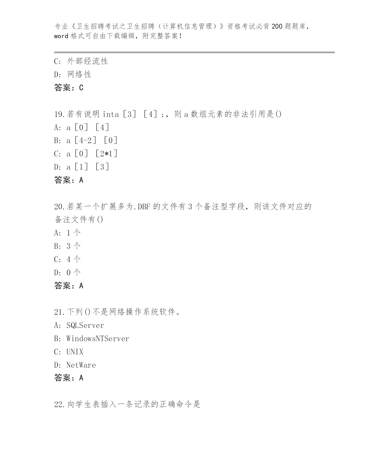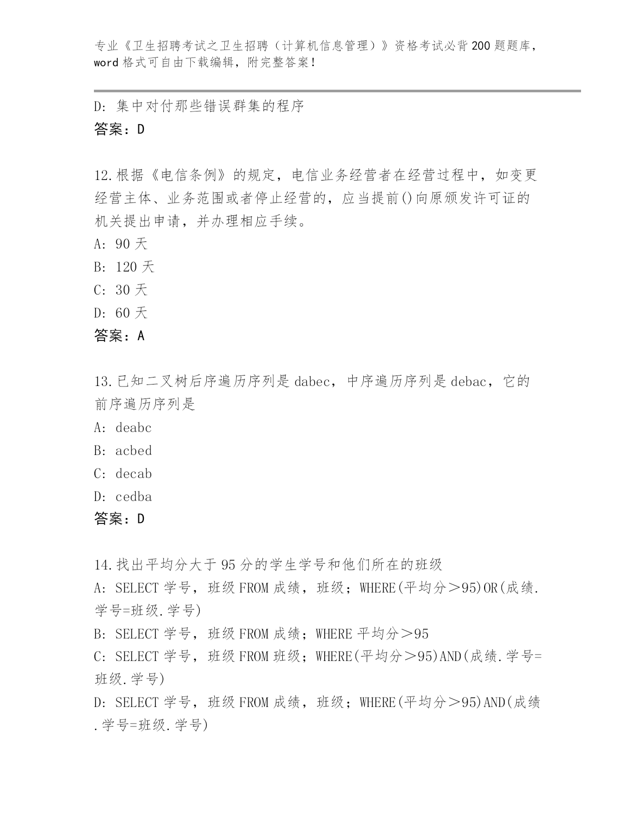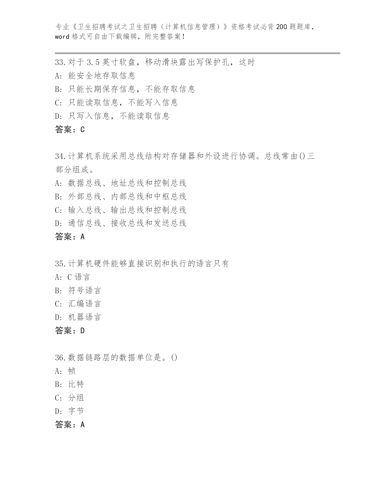 河北省内部使用《卫生招聘考试之卫生招聘(计算机信息管理)》资格考试必背200题内部题库【夺冠】