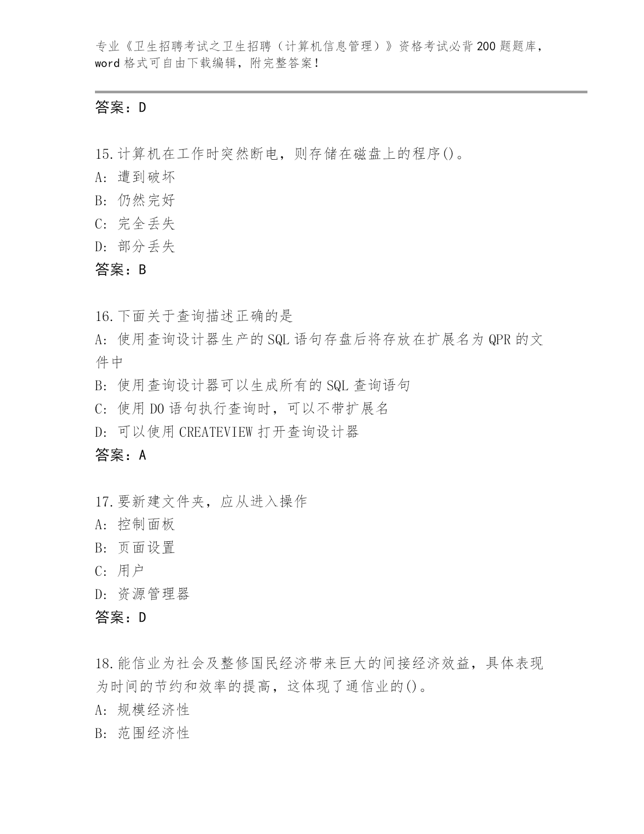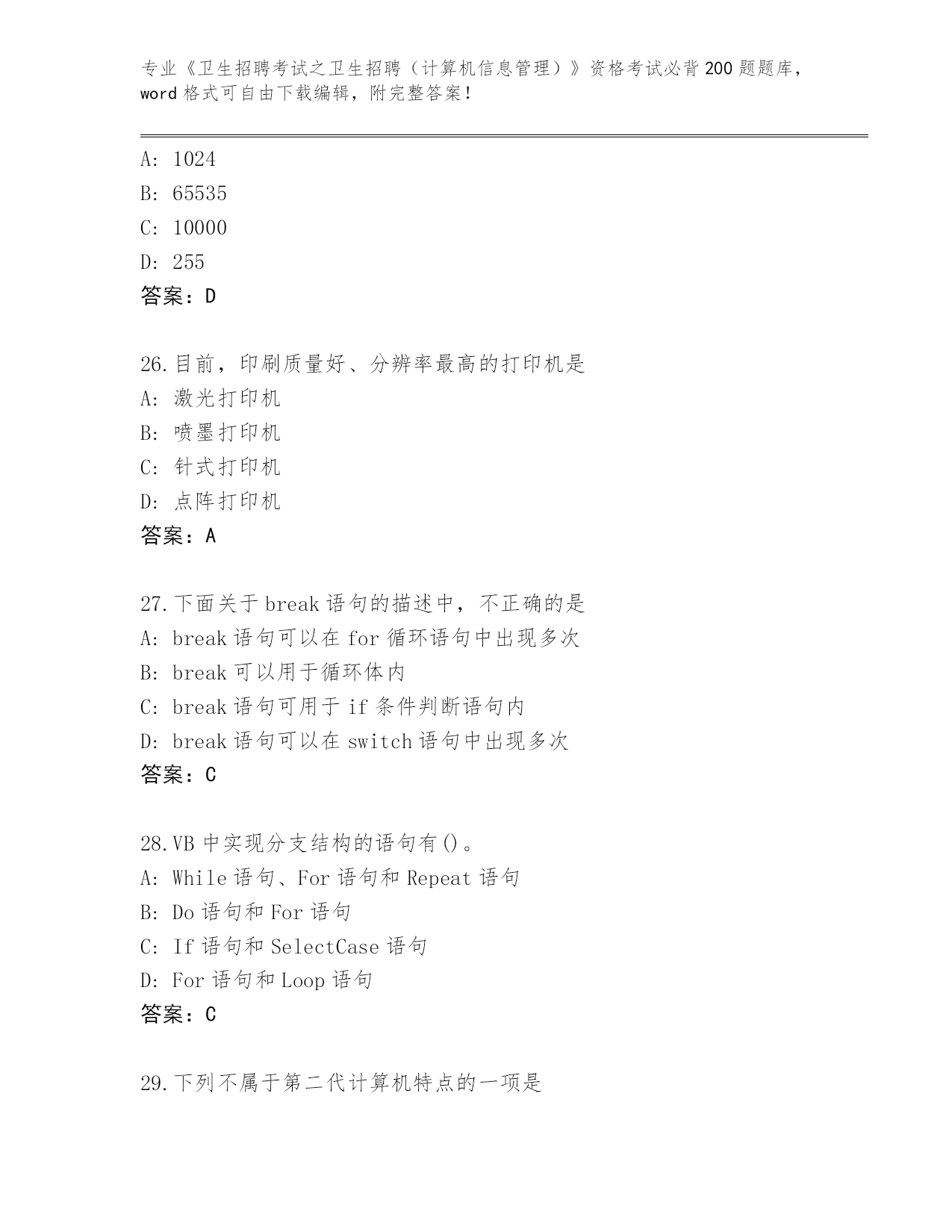 河北省《卫生招聘考试之卫生招聘(计算机信息管理)》资格考试必背200题内部题库及答案下载