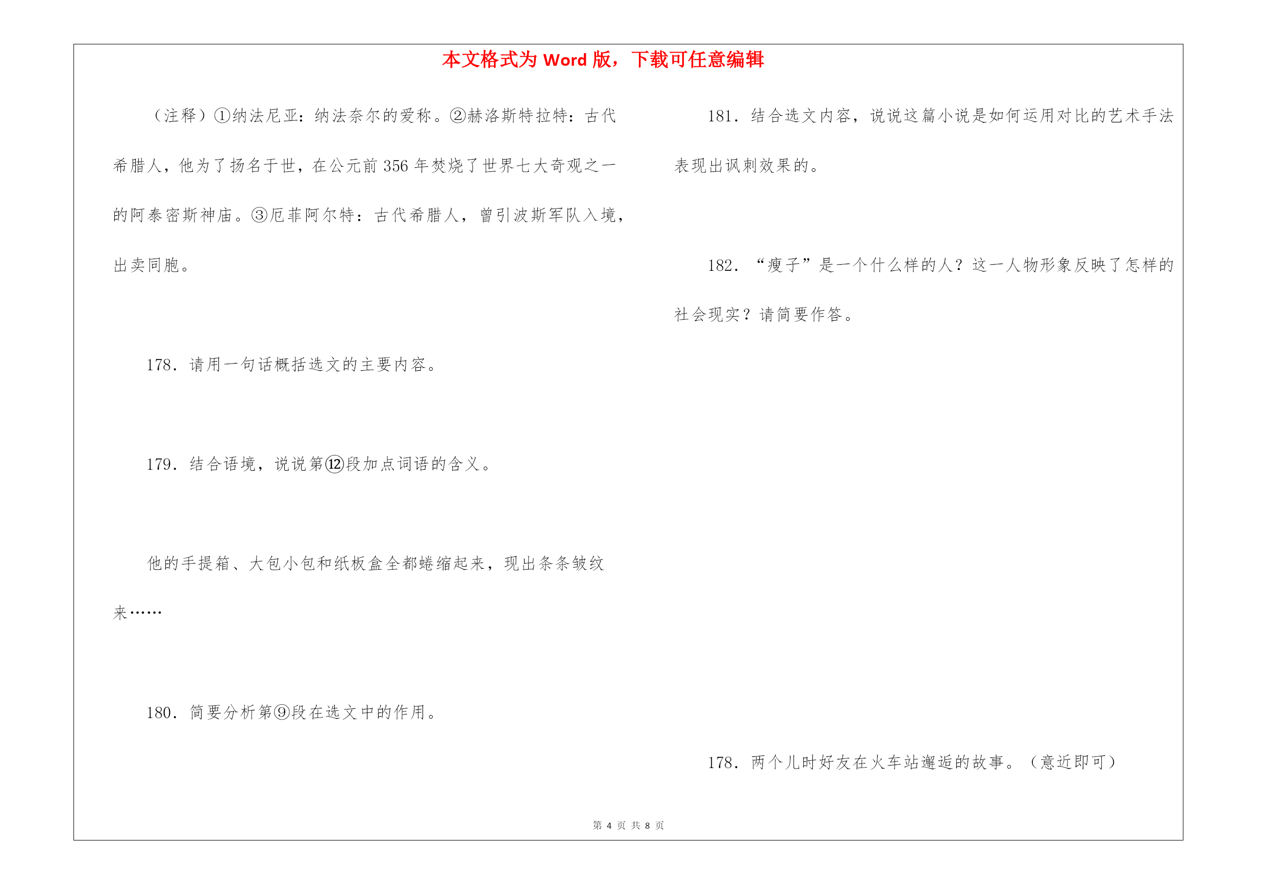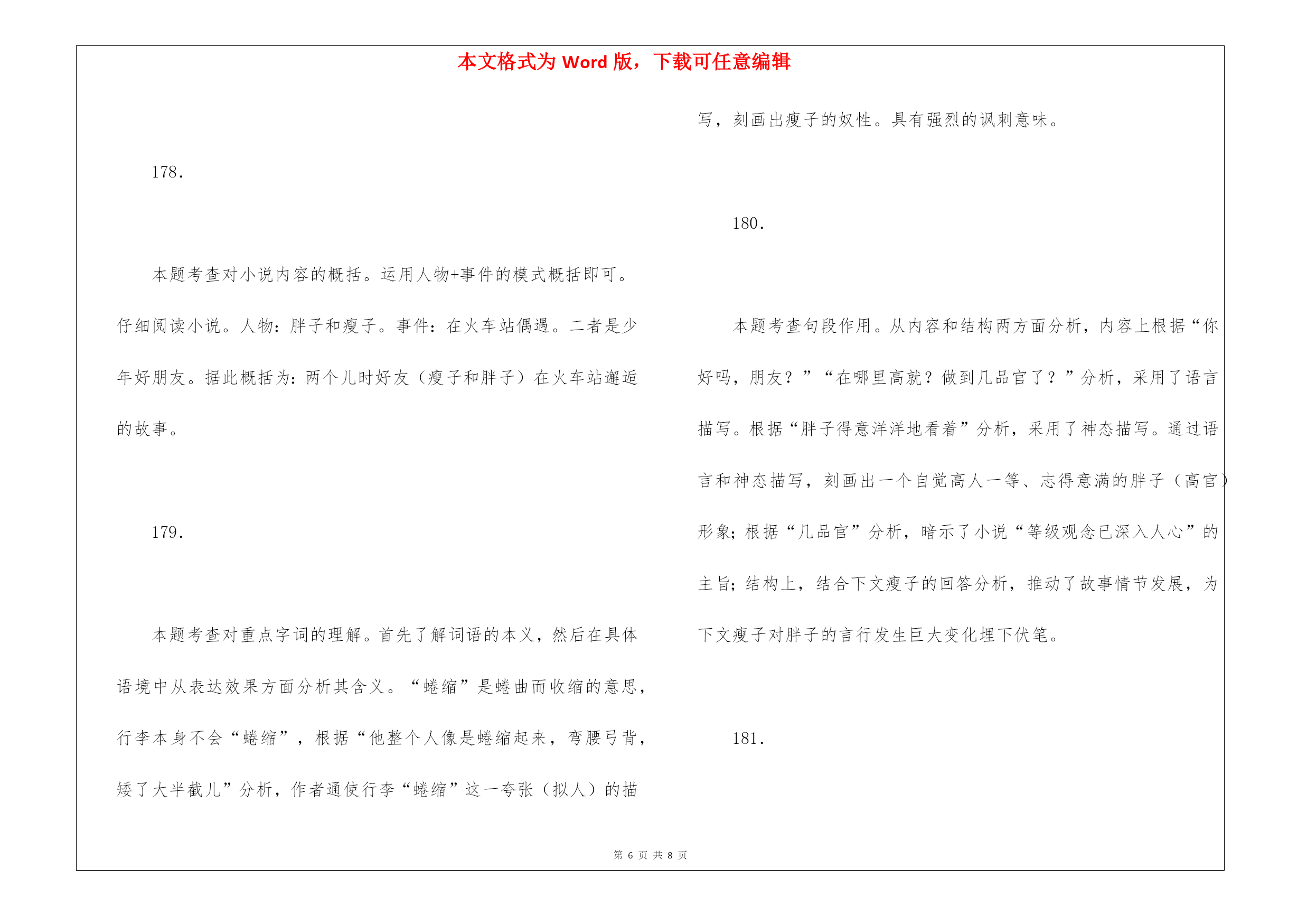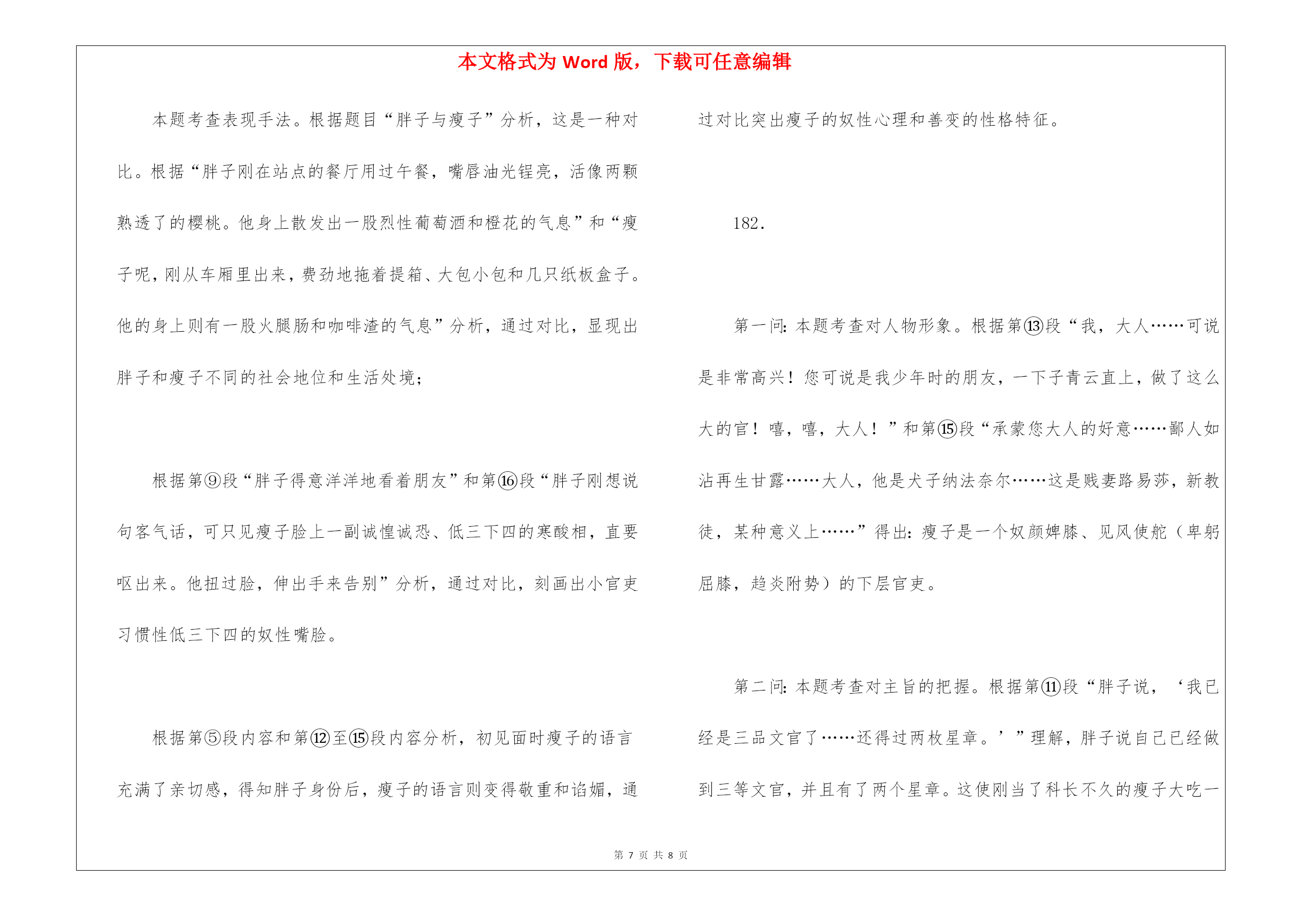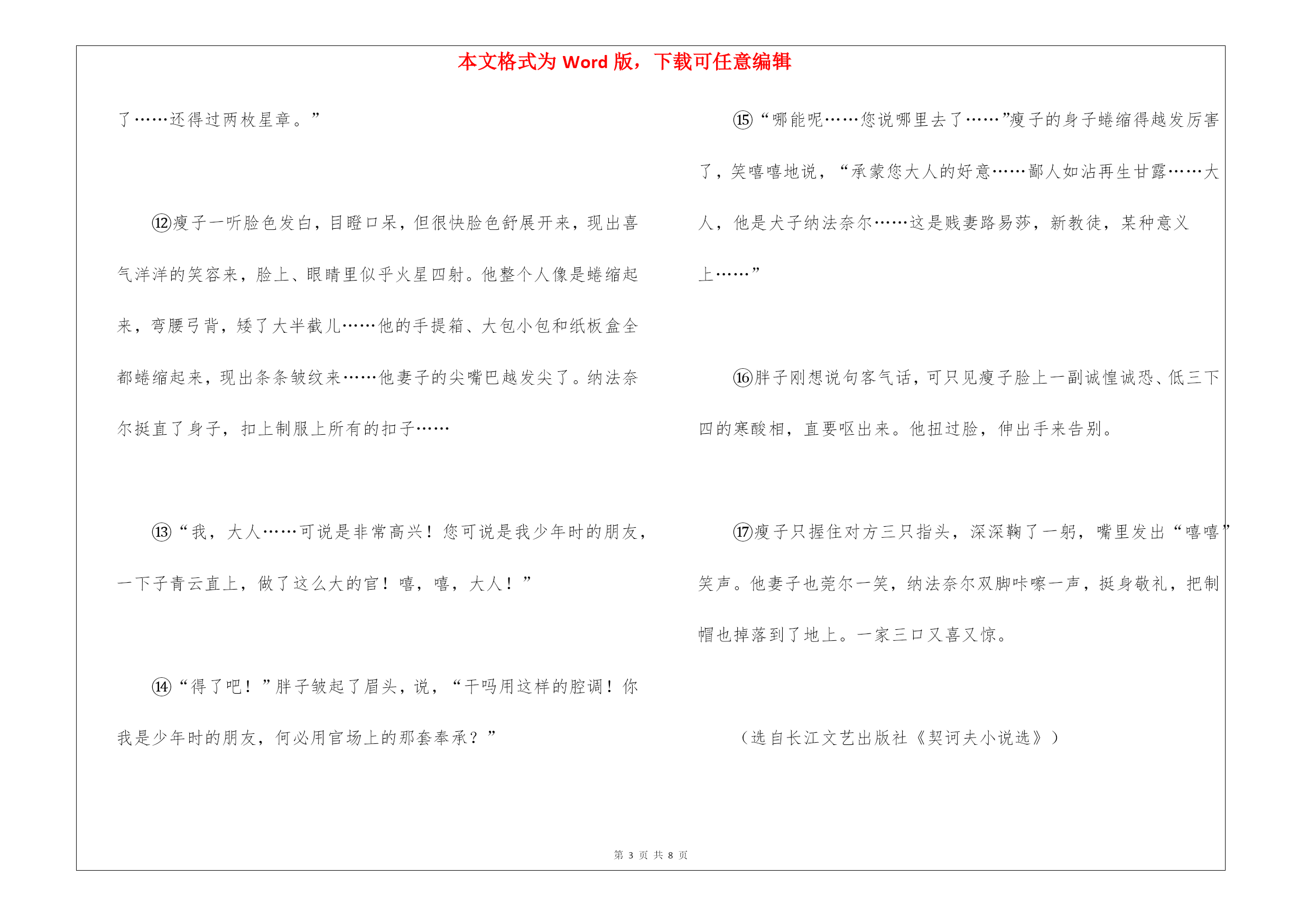 2021中考语文试题题型分类汇编——记叙文(21)中考真题