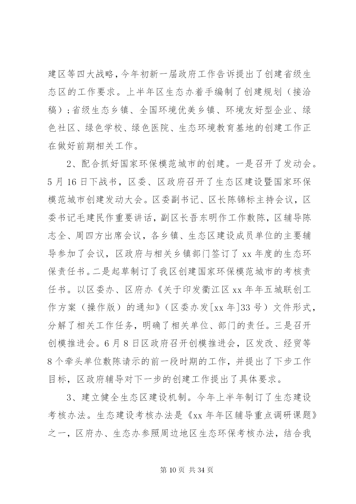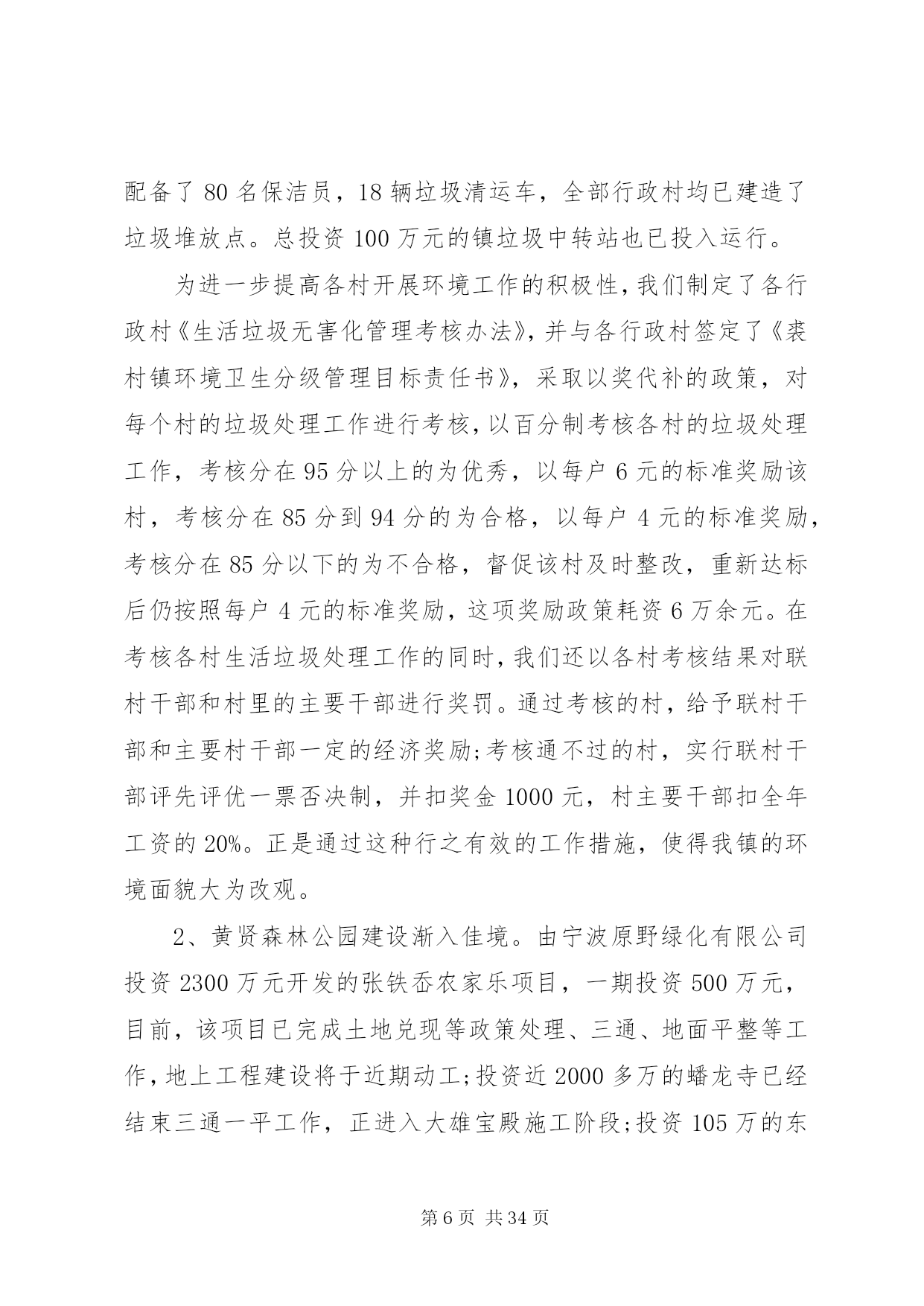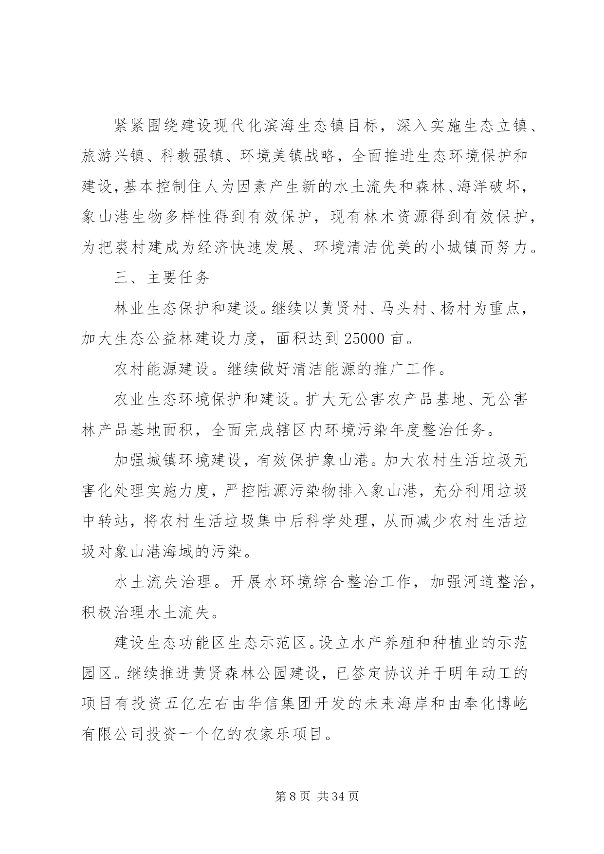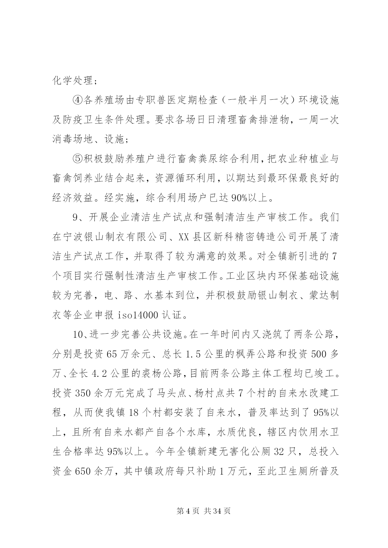第PAGE\*Arabic\*MERGEFORMAT34页共NUMPAGES\*MERGEFORMAT34页生态环保工作总结(一)根据《XX县区2014年度生态环境保护任务书》关于裘村镇工作任务书的内容要求,我镇领导重视,措施得力,对照《任务书》提出的工作目标以及生态杯竞赛活动考核办法,逐条逐项付诸实施。现将具体情况总结如下:一、基本任务完成情况1、完善制度,明确责任。按照生态环境保护任务书的总体要求,通过了裘村镇生态镇建设规划的编制工作,并以文件形式颁布实施。按照规划要求,制订了2015年生态环境保护年度计划。切实加强对生态环境保护工作的领导,做到落实机构、落实人员,落实资金,将计划内容分解至各职能部门。2、广泛宣传,意识到位。积极开展生态环境保护的宣传教育工作,在全镇人口较为密集的车站、市场等处悬挂宣传横幅15条次,张贴宣传画,刊出宣传窗8期。在各村、学校、工厂采取标语、黑板报等形式宣传生态环境保护的重要性,促使环保意识深入人心。3、开展农村清洁能源利用工作,继续做好绿色(有机)食品和无公害农产品认证及企业iso14000认证工作,使无公害农产品基地累计达2500亩,林产品基地累计达6000亩。①继续推进奉化尚田今果农产品公司订单基地建设,扩大基地面积,引导农户种植无公害农产品,农药使用及肥料使用等符合该公司及镇、市所要求的环保及绿色食品的标准;②经多年推广引导工作,全镇在杨村、曹村、马头等村建成荞头、茶叶、芋艿等无公害农产品基地累计达2500亩;③加强柑桔生产基地建设,目前全镇已有优质柑桔生产基地6000多亩。4、深入开展百村示范、千村整治工程。今年确定陶坑、吴江、甲岙、岭下为本年度示范村、整治村。目前这四个村进展顺利。陶坑村做好了空心村搬迁的前期准备工作,把原里陶坑的村民搬迁出来,计划在空心村的位置上营造生态林和经济林,村中心公路、绿化健身路径等工程已完成了大半工作量。吴江、甲岙、岭下三个村投入近350万元资金,建成了崭新的办公楼4幢,完成了村内溪坑治理,新建了5只公园,拆除露天粪缸、简易厕所500多只,新增绿地面积3500平方。经过整治后,这几个村的村容村貌焕然一新。5、开展水环境综合整治工程。完成了黄贤村村西全厂3000米投资160万元的河道治理工程。马头村投资10万元对村口的河道改道,使洪水一来就危及村庄的情况不会重现。各村都对域内的溪坑河流进行了不同程度的清淤整理,并在河道两边植树栽花,村民生活环境得到了改善。6、继续开展环保模范单位以及卫生村的创建活动。裘村镇初中已通过了省绿色示范学校的验收,阿拉象山港水产开发有限公司已通过XX市环保模范单位的验收,且均已授牌。积极鼓励XX县区大通制衣、联和针织有限公司两家企业争创环保模范单位。今年,我镇的黄贤村还被评为省级卫生村、XX市生态村,曹村、翔丰两村被评为XX县区卫生村。7、全面完成辖区内环境污染整治工作,加大象山港保护力度,推进滨海生态镇建设。防止和控制陆源污染物排入象山港。我们坚持不引进有污染的企业,关停并转小型污染企业。加强对金贝造纸厂、三友化工、盛源制造等企业的跟踪检查,尽量减少企业对象山港的污染。积极发展生态农业,减少农业源污染负荷。严格控制环境敏感海域的陆地汇水区畜禽养殖密度、规模,有效处理养殖场污染物,严格执行废物排放标准并限期达标。认真执行有关建设项目环境保护管理的规定,新建、改建、扩建和技术改造项目经环境影响评价并经环保部门批准。8、积极开展规模化畜禽养殖场生态化改造,畜禽粪尿综合利用率达90%以上。①规模化畜禽养殖场远离村庄住宅区,实行畜禽养殖分离;②禁止农户零星散养,由村治保主任负责本村散养户的思想工作,由畜牧兽医对畜禽进行定期检查;③规模化畜禽养殖场设施符合镇及上级环保要求,严禁把畜禽粪尿排入河道、渠道、河塘等公共环境系统,一律采取生物或化学处理;④各养殖场由专职兽医定期检查(一般半月一次)环境设施及防疫卫生条件处理。要求各场日日清理畜禽排泄物,一周一次消毒场地、设施;⑤积极鼓励养殖户进行畜禽粪尿综合利用,把农业种植业与畜禽饲养业结合起来,资源循环利用,以期达到最环保最良好的经济效益。经实施,综合利用场户已达90%以上。9、开展企业清洁生产试点和强制清洁生产审核工作。我们在宁波银山制衣有限公司、XX县区新科精密铸造公司开展了清洁生产试点工作,并取得了较为满意的效果。对全镇新引进的7个项目实行强制性清洁生产审核工作。工业区块内环保基础设施较为完善,电、路、水基本到位,并积极鼓励银山制衣、蒙达制衣等企业申报iso14000认证。10、进一步完善公共设施。在一年时间内又浇筑了两条公路,分别是投资65万余元、总长1.5公里的枫弄公路和投资500多万、全长4.2公里的裘杨公路,目前两条公路主体工程均已竣工。投资350余万元完成