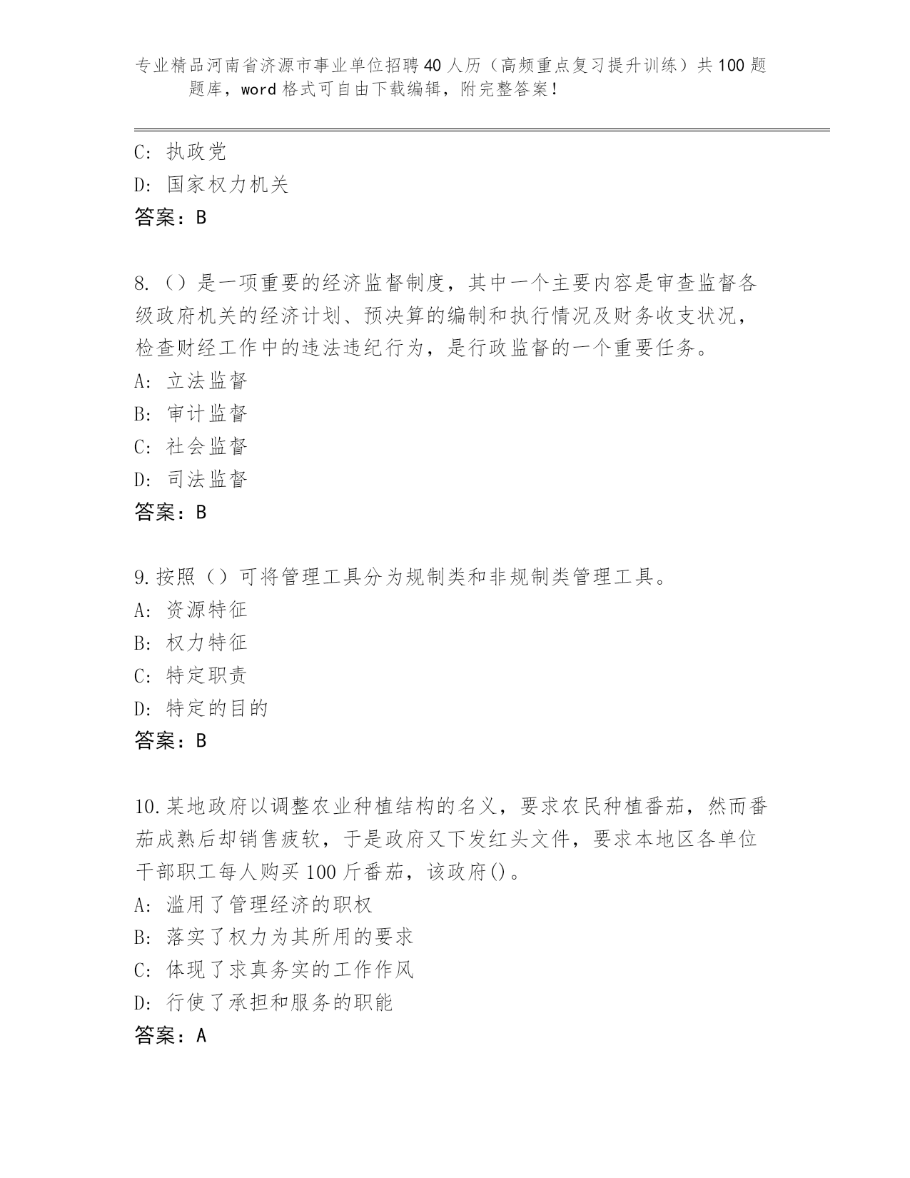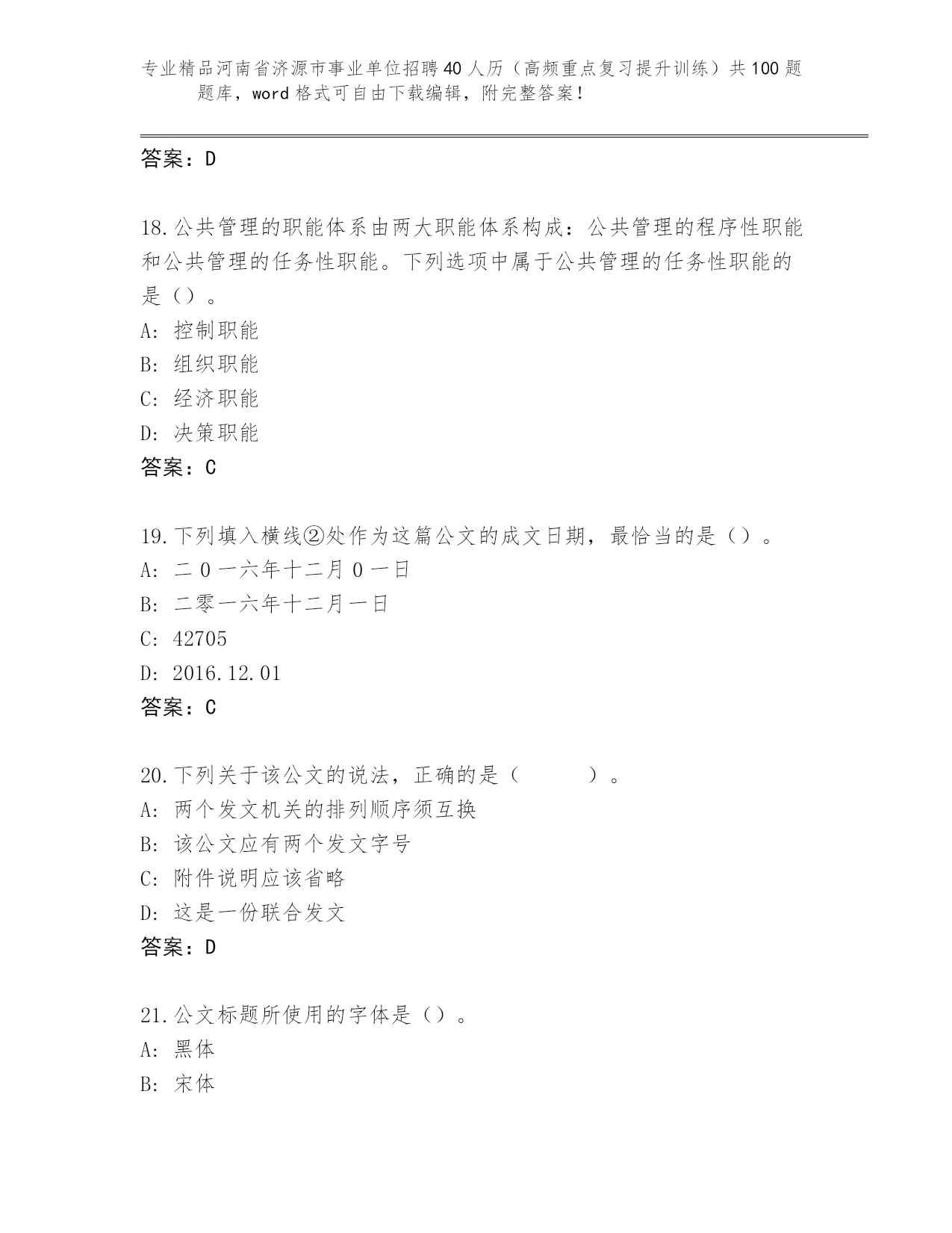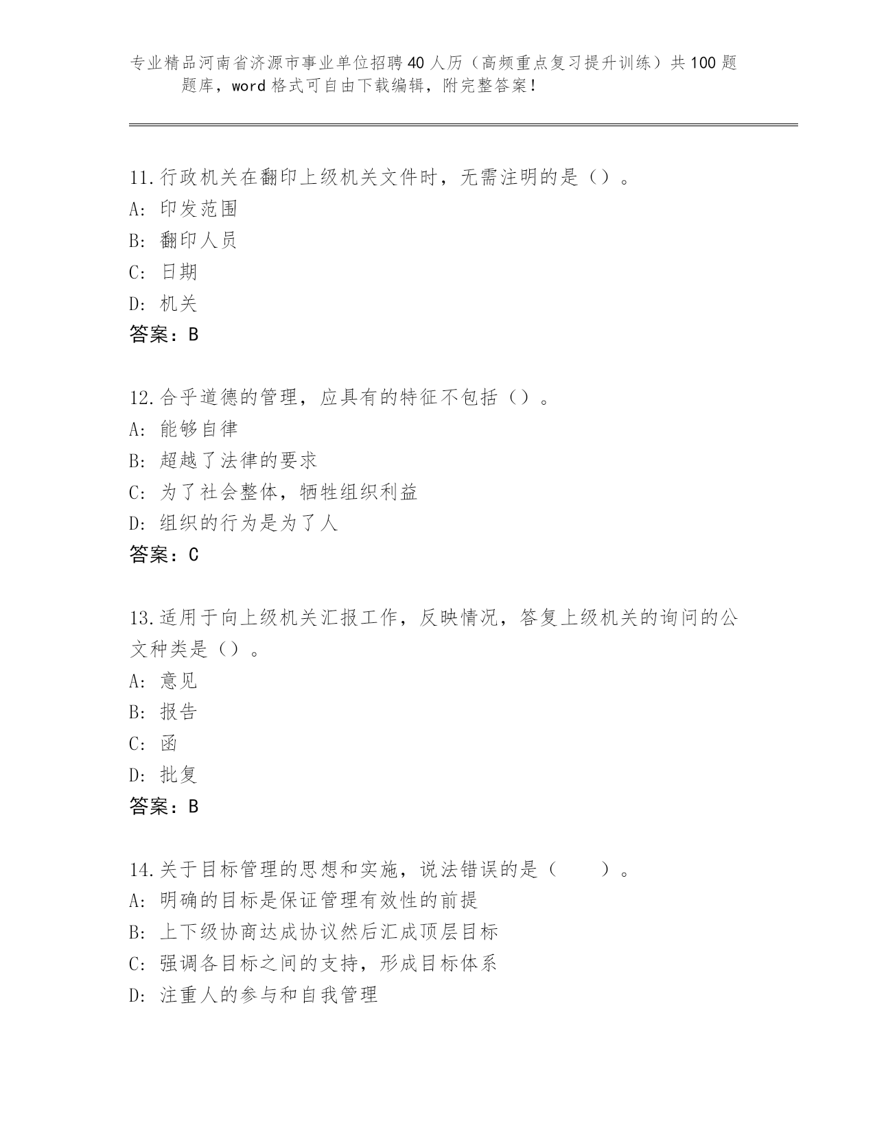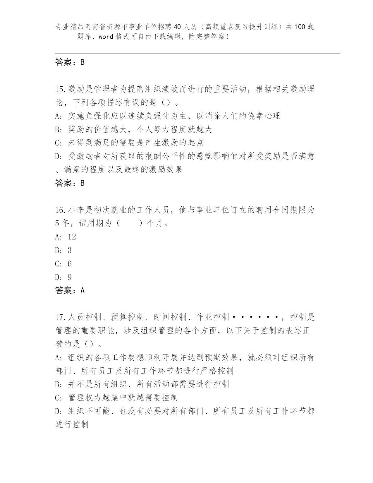 精品河南省济源市事业单位招聘40人历(高频重点复习提升训练)共100题 大全答案下载