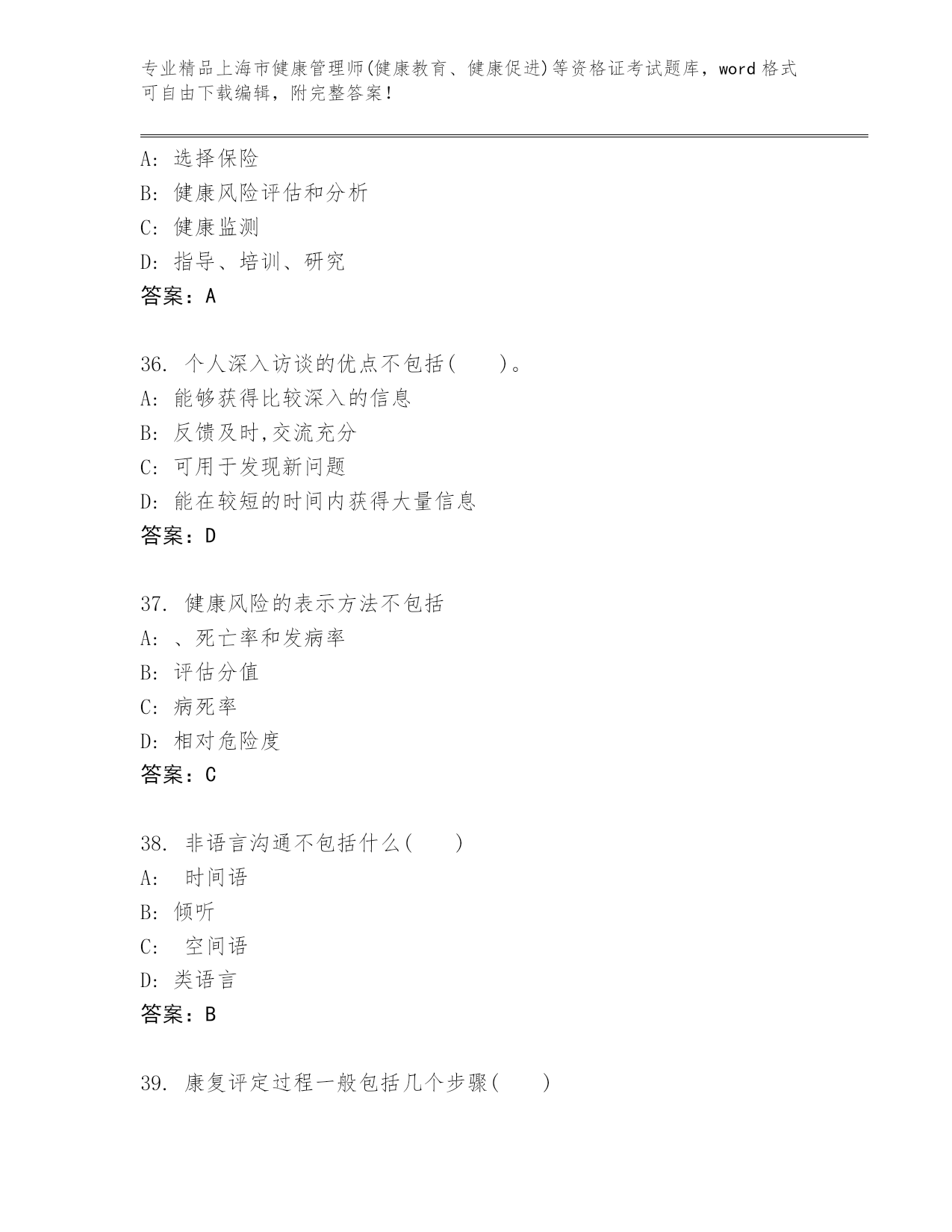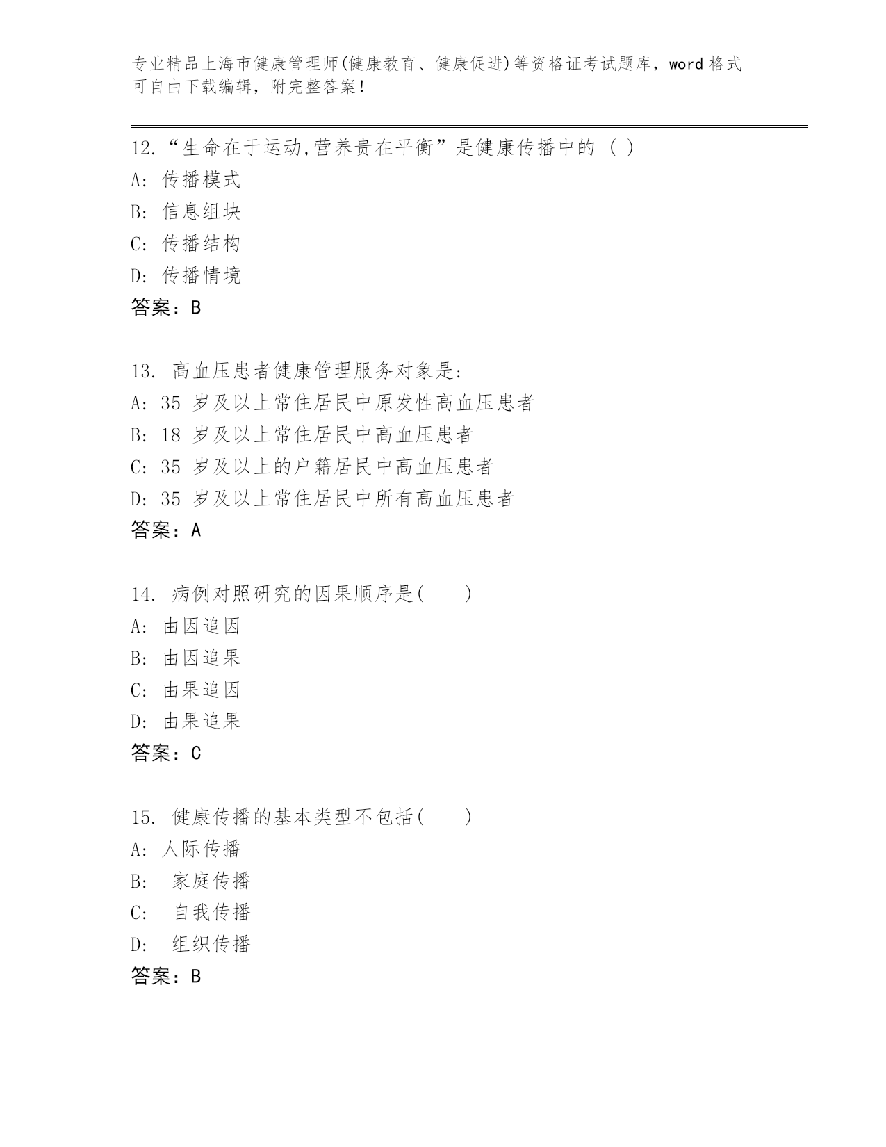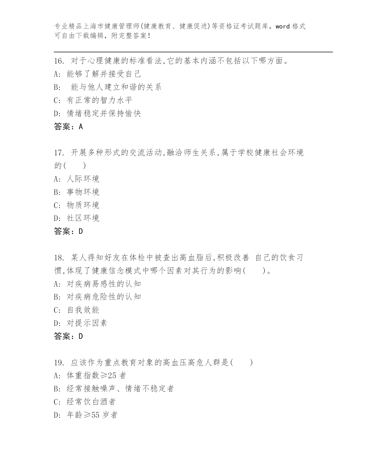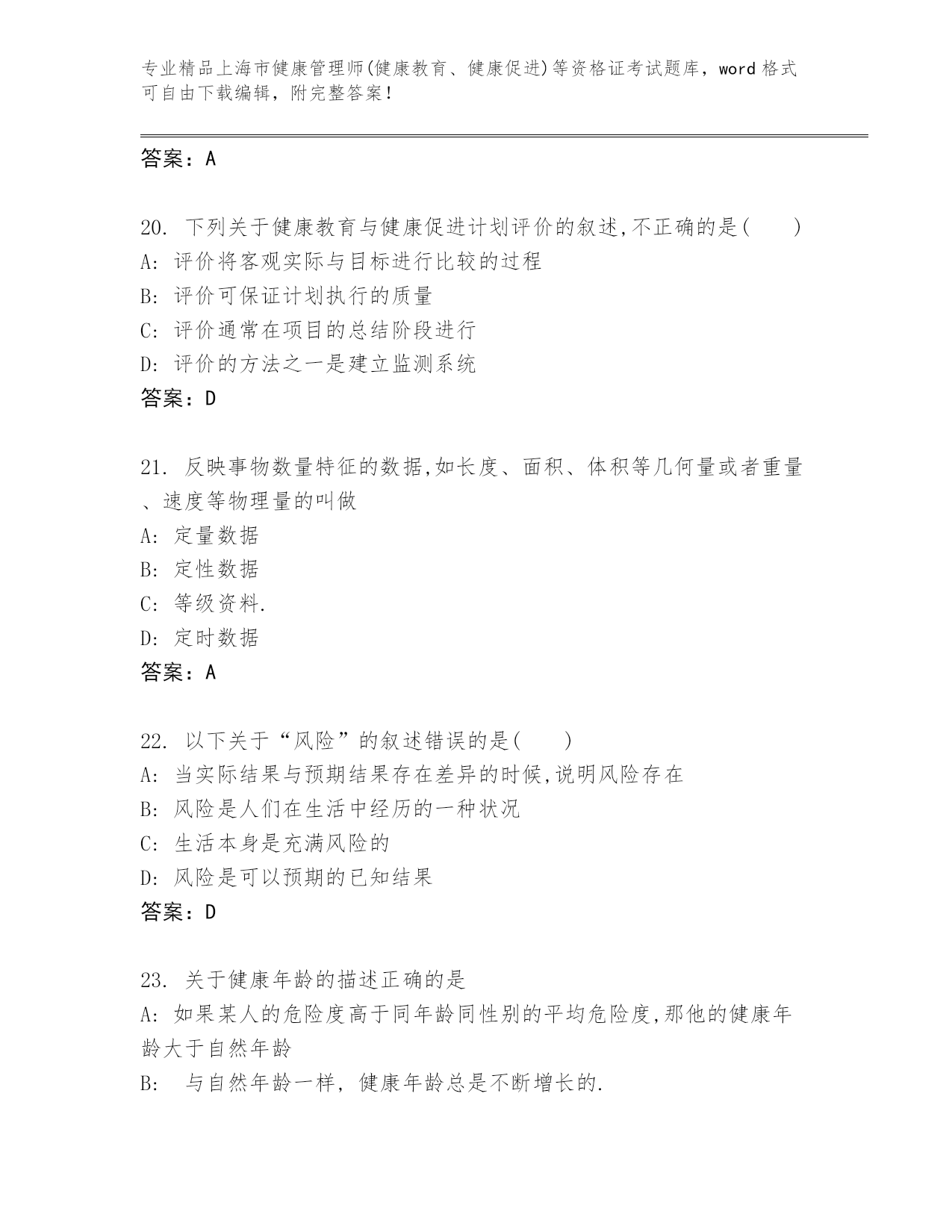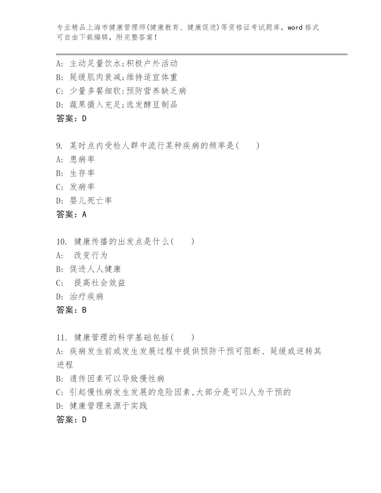 最新上海市健康管理师(健康教育、健康促进)等资格证考试完整版有解析答案.docx