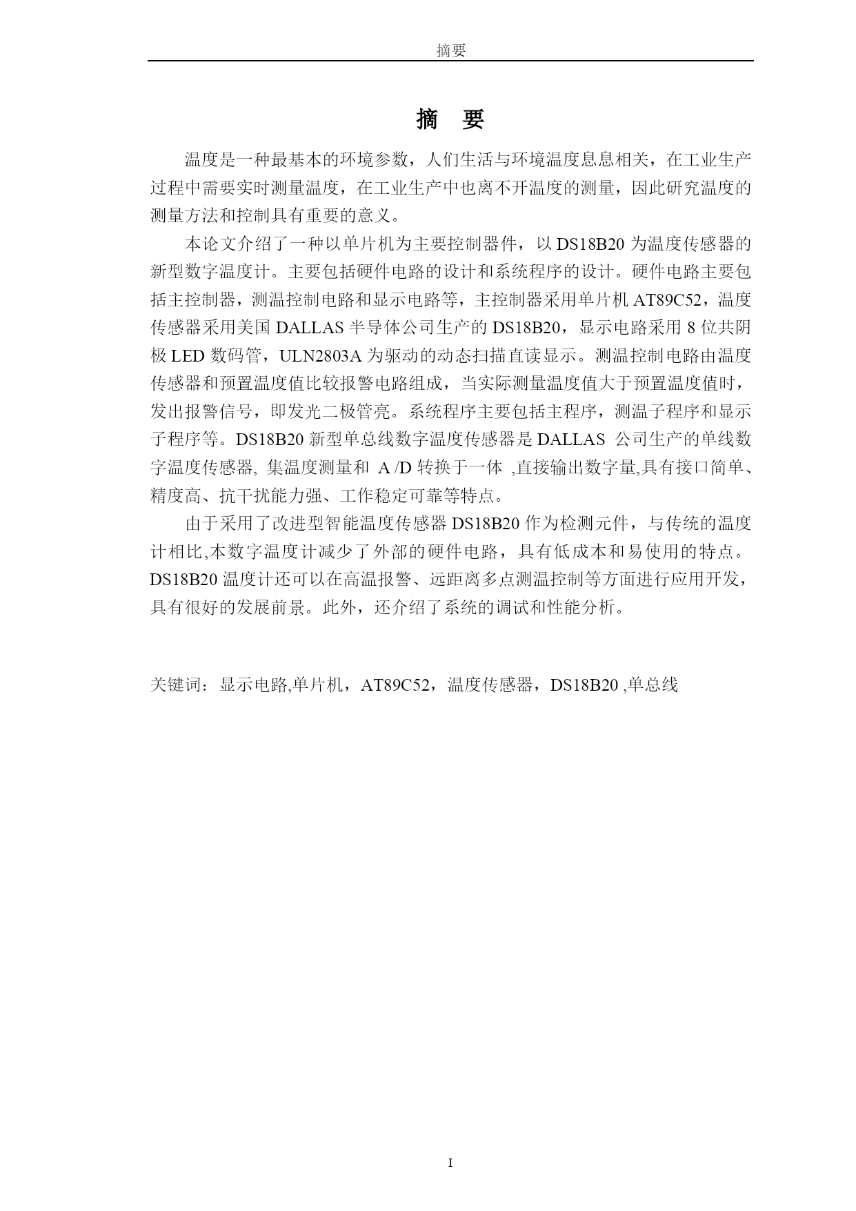 于基单片机的温度控制系统的设计--毕业设计
