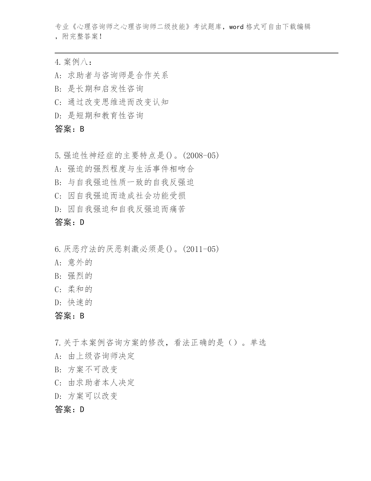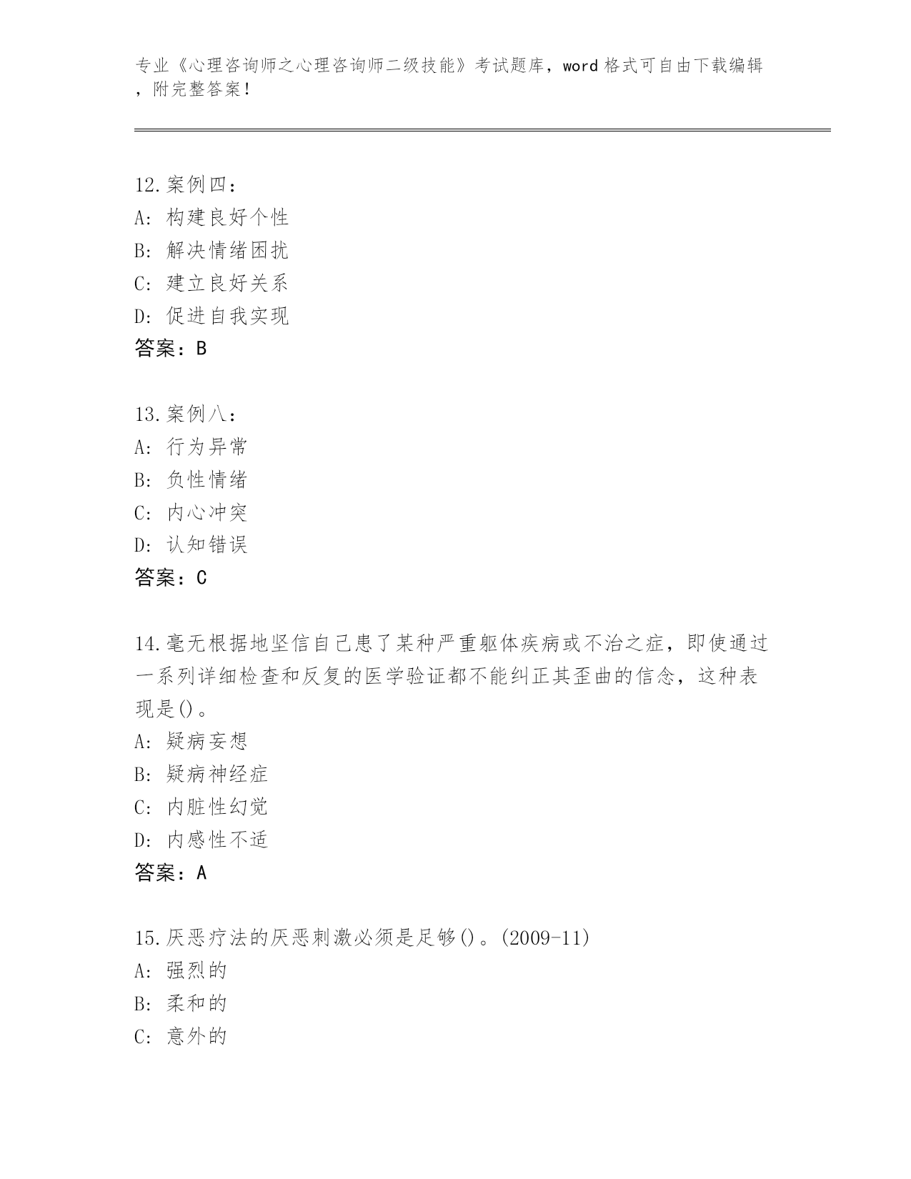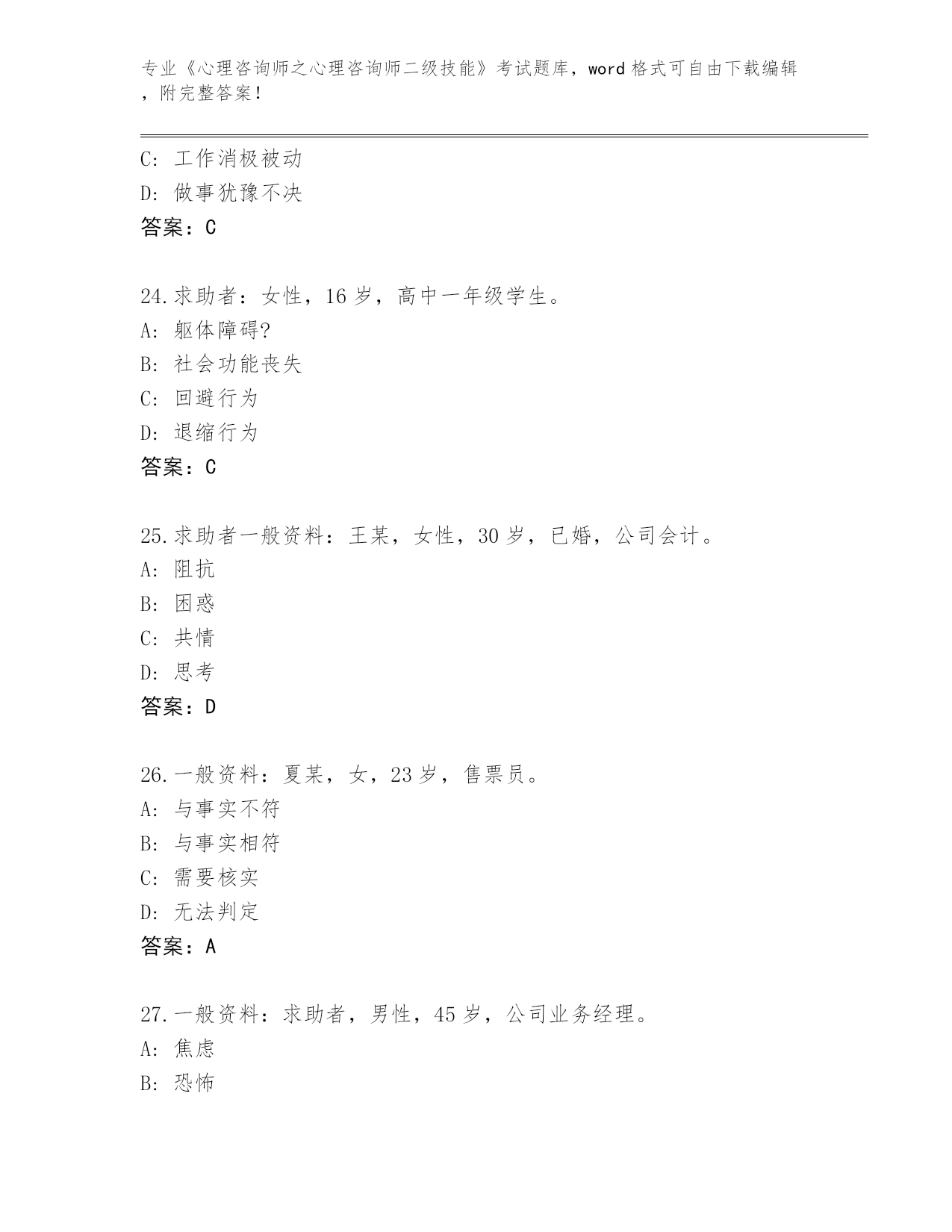 河北省2024年《心理咨询师之心理咨询师二级技能》资格考试大全(实用)