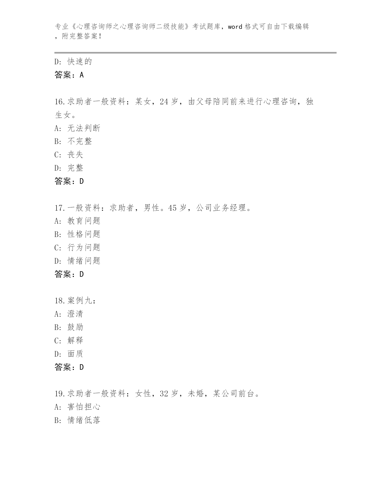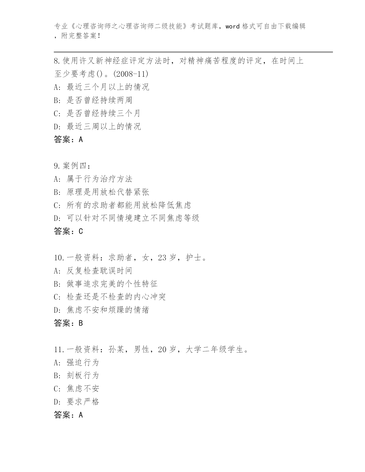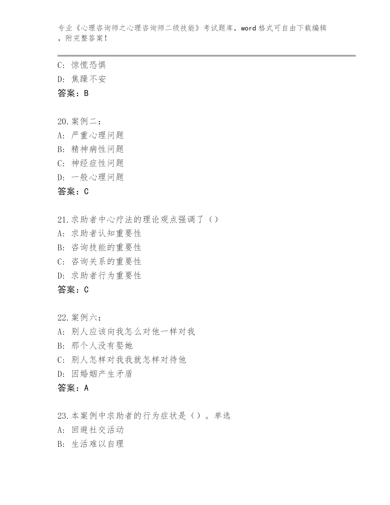 河北省2024年《心理咨询师之心理咨询师二级技能》资格考试大全(实用)