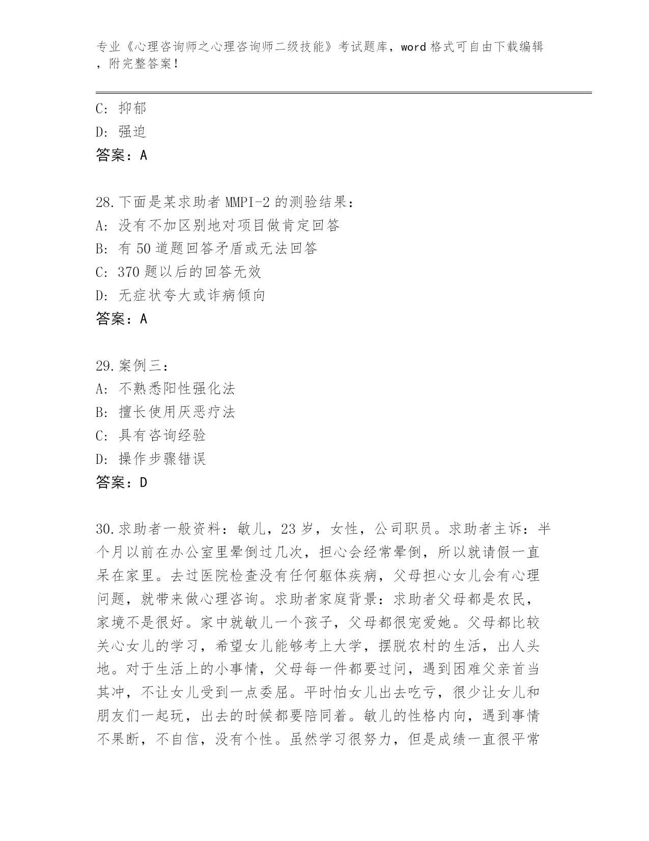 河北省蔚县2024年《心理咨询师之心理咨询师二级技能》考试必刷200题题库大全【黄金题型】