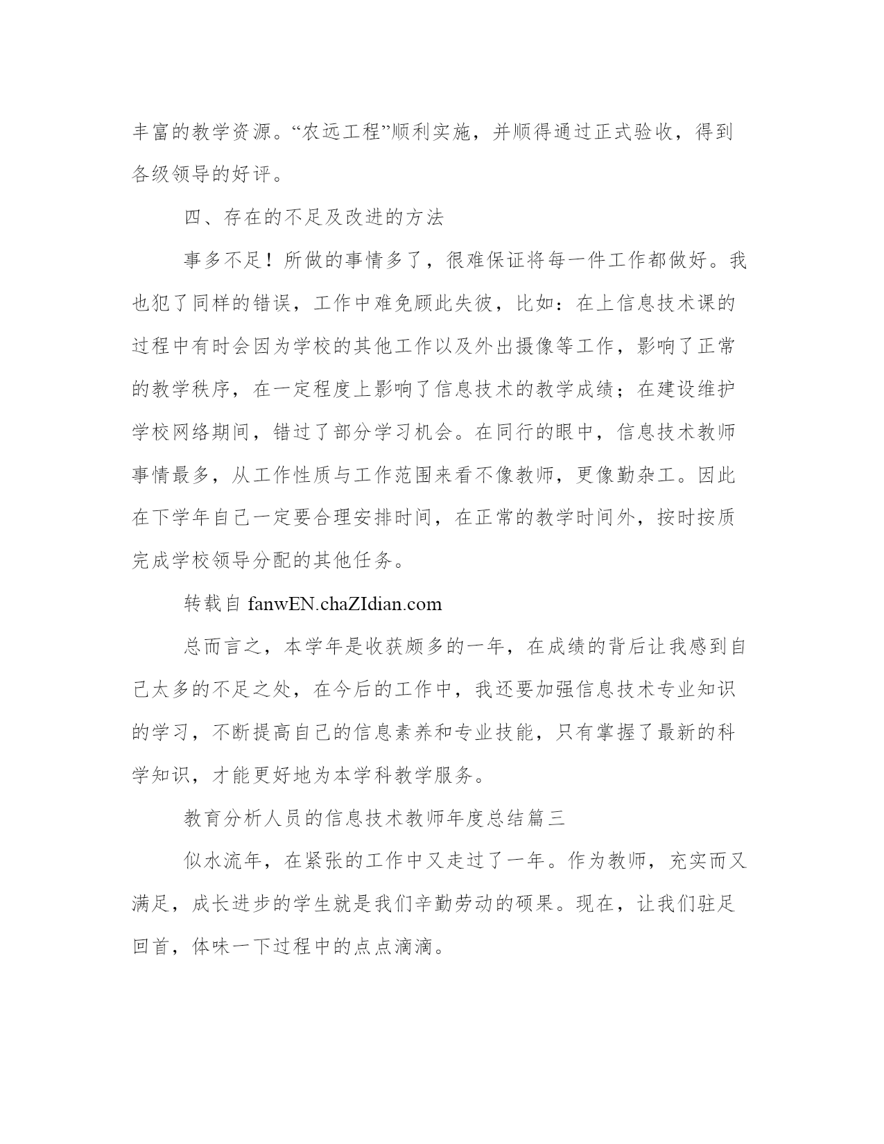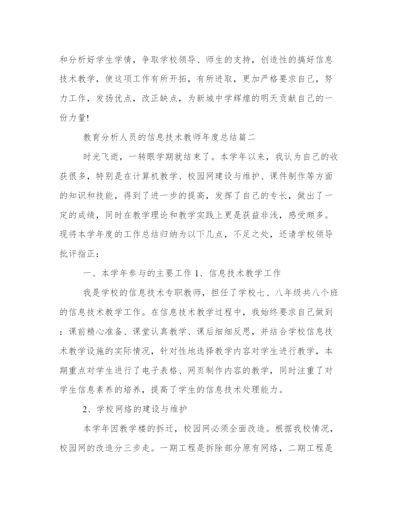 教育分析人员的信息技术教师年度总结(通用20篇)