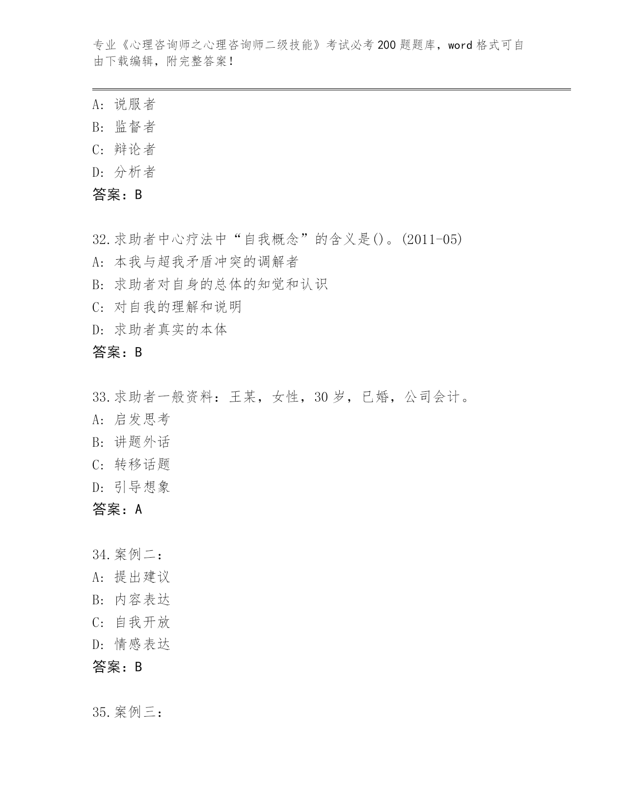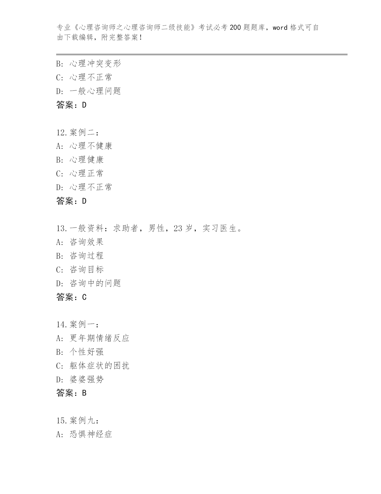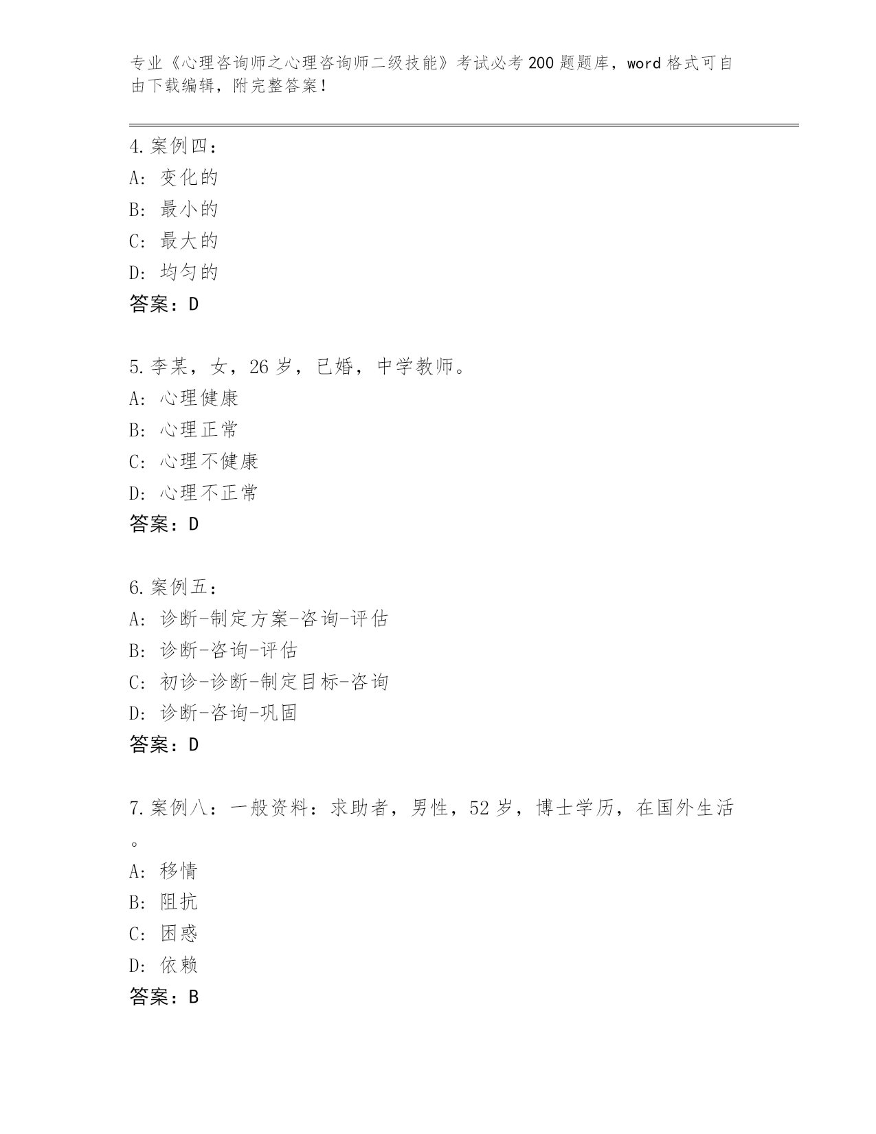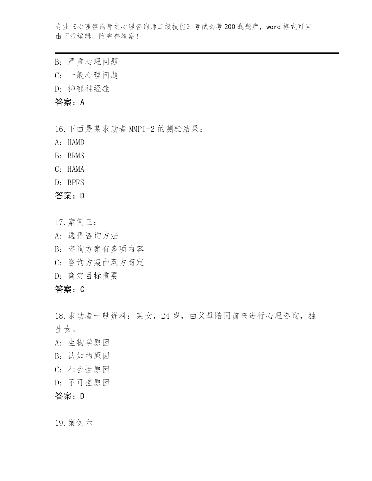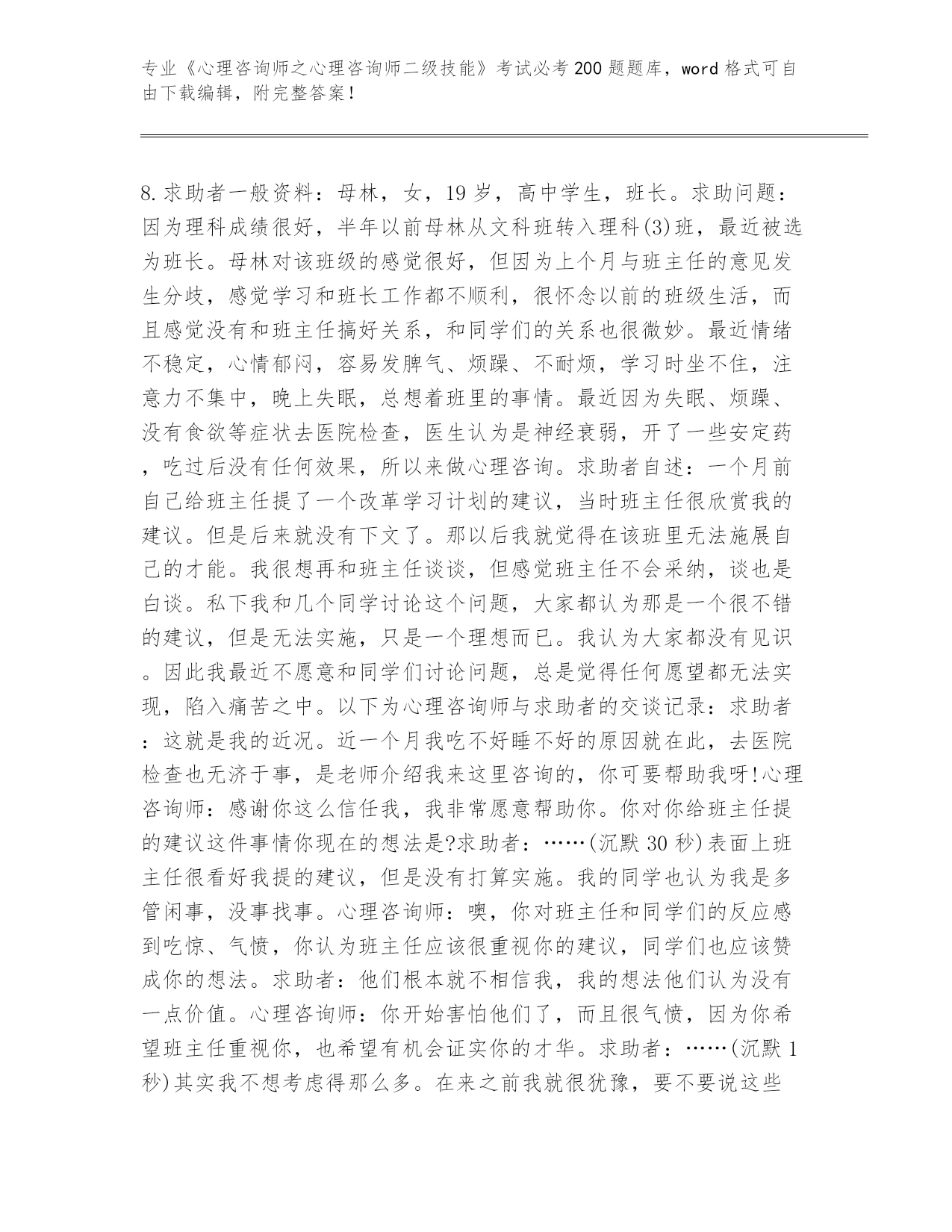 云南省《心理咨询师之心理咨询师二级技能》考试必考200题大全(网校专用)