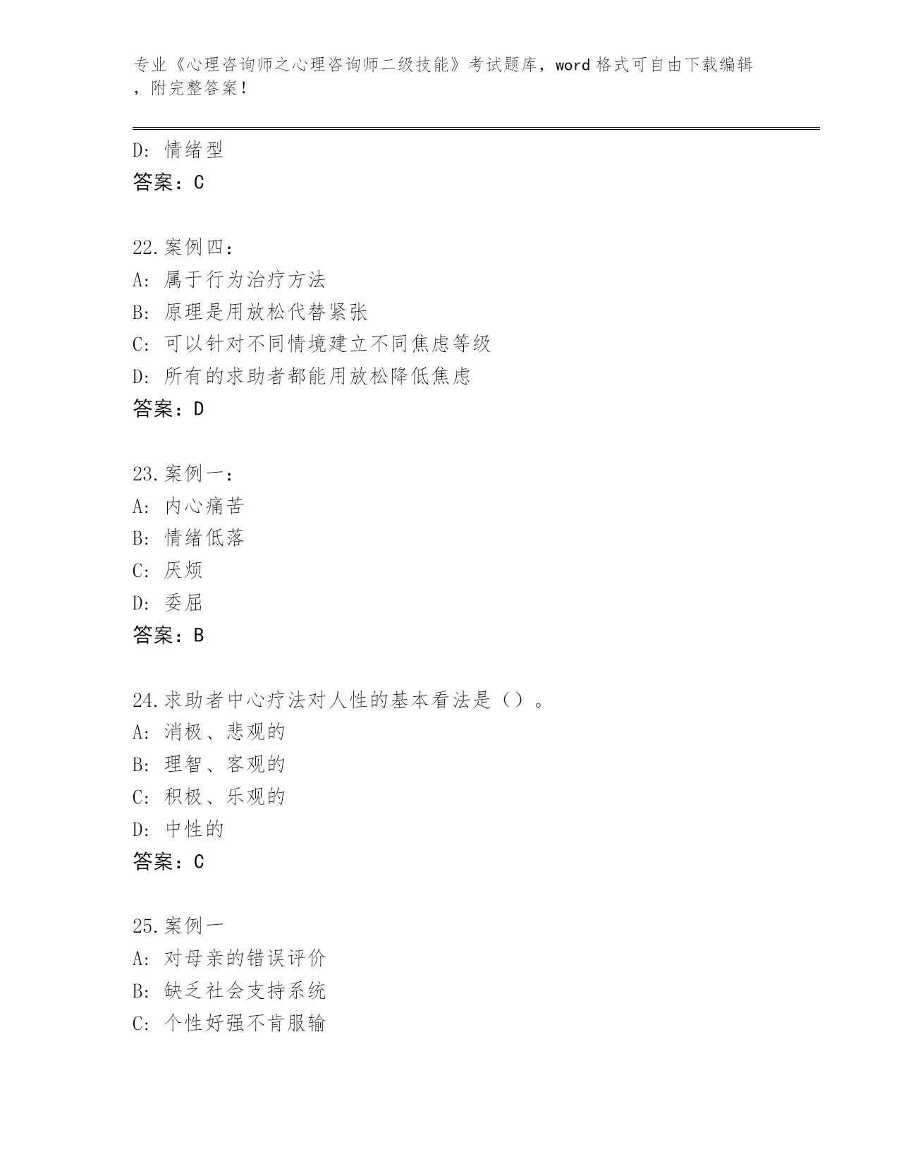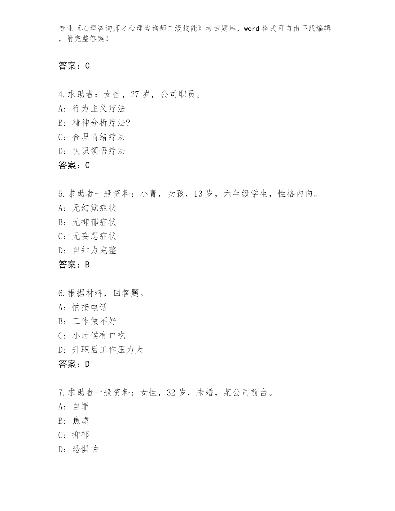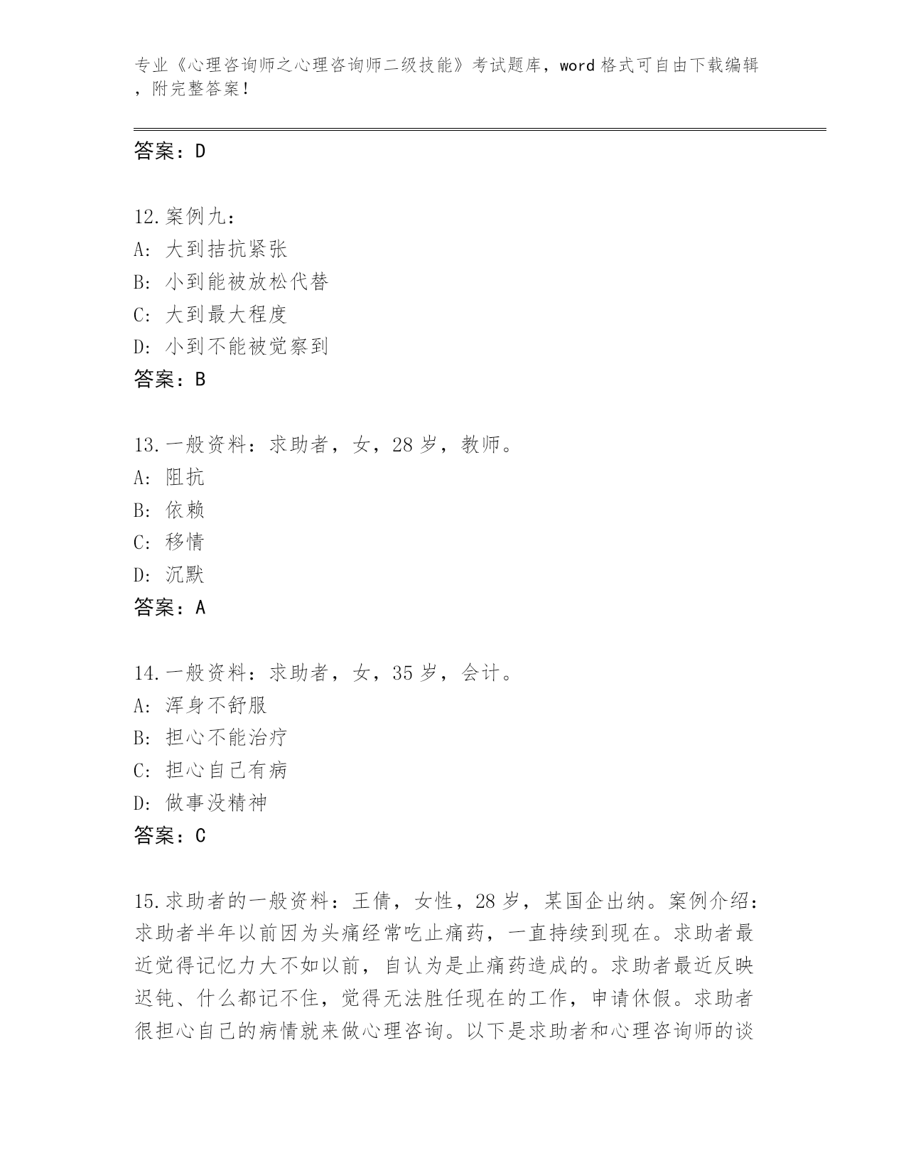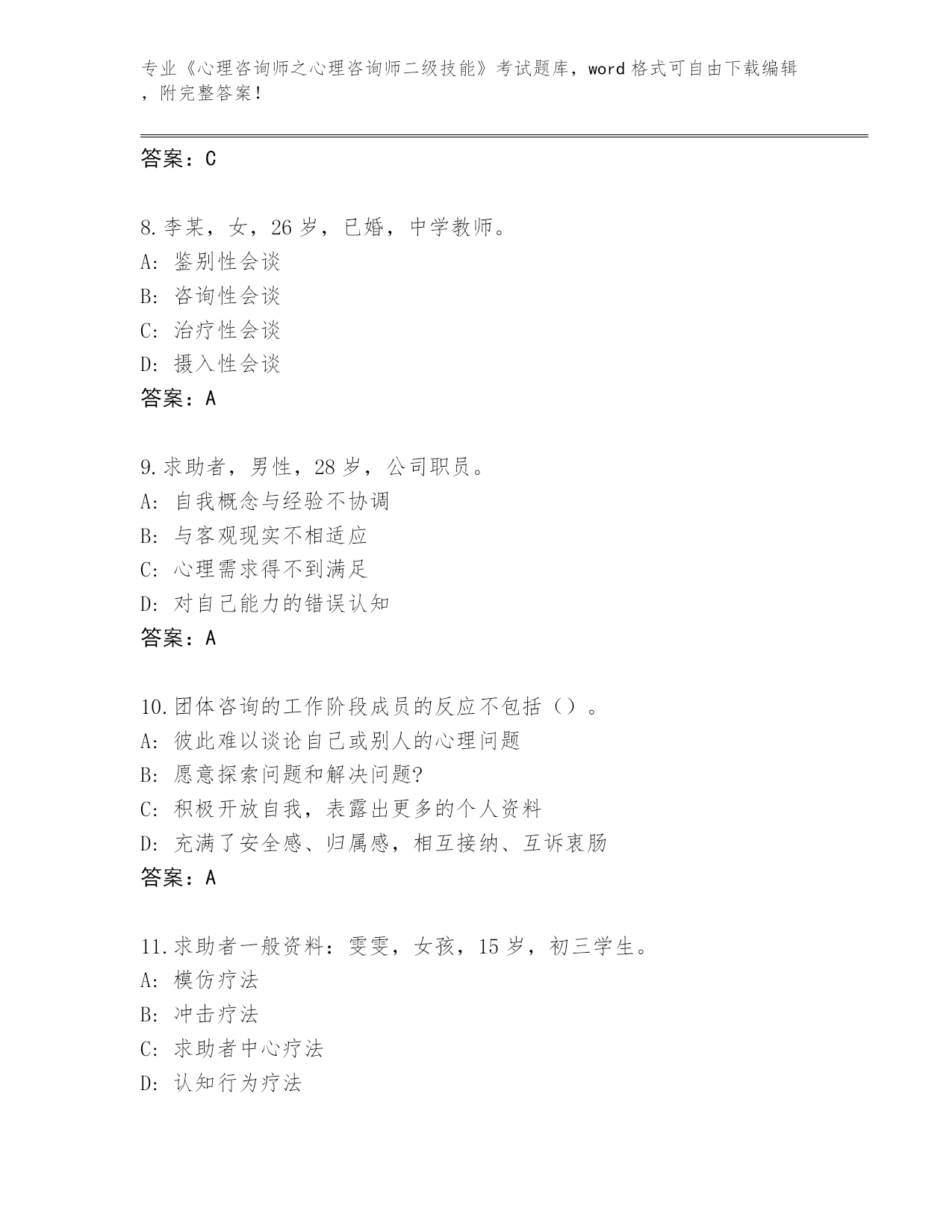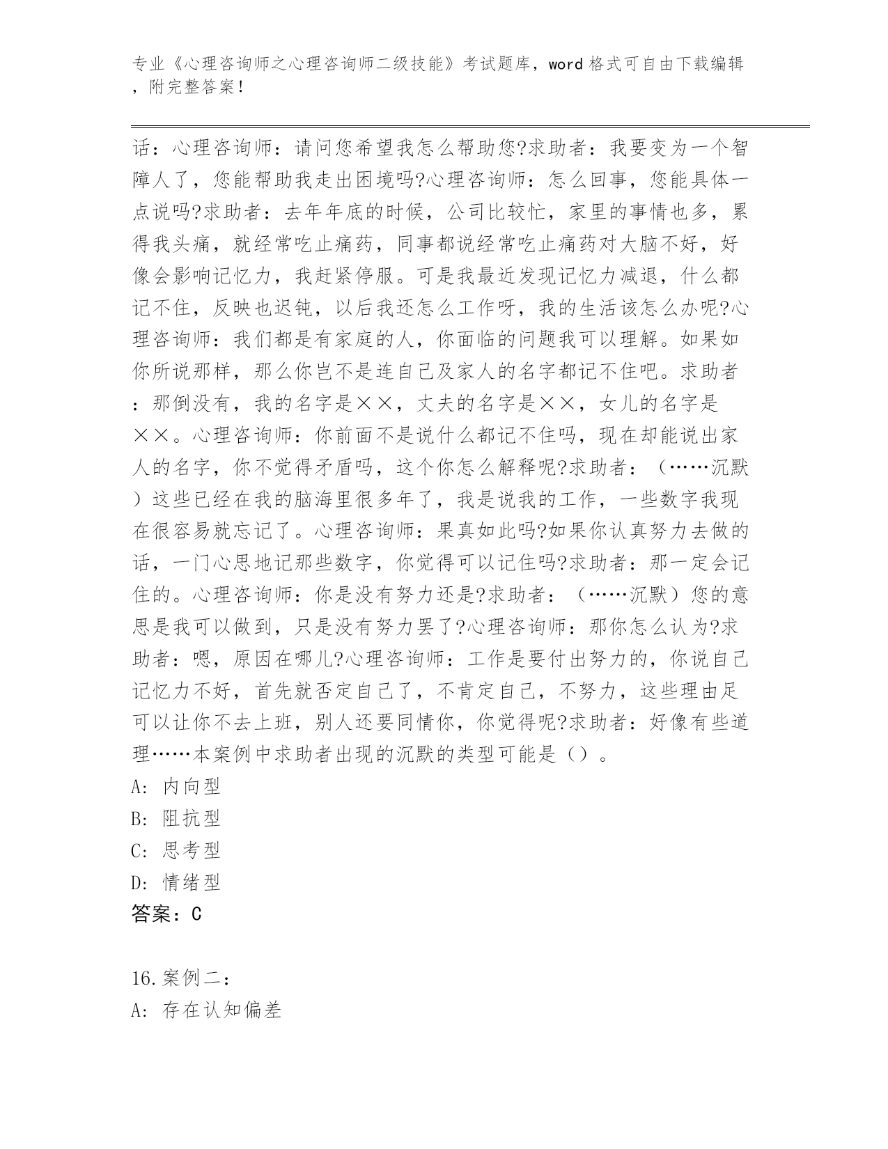 河南省马村区2024年《心理咨询师之心理咨询师二级技能》考试大全(名校卷)