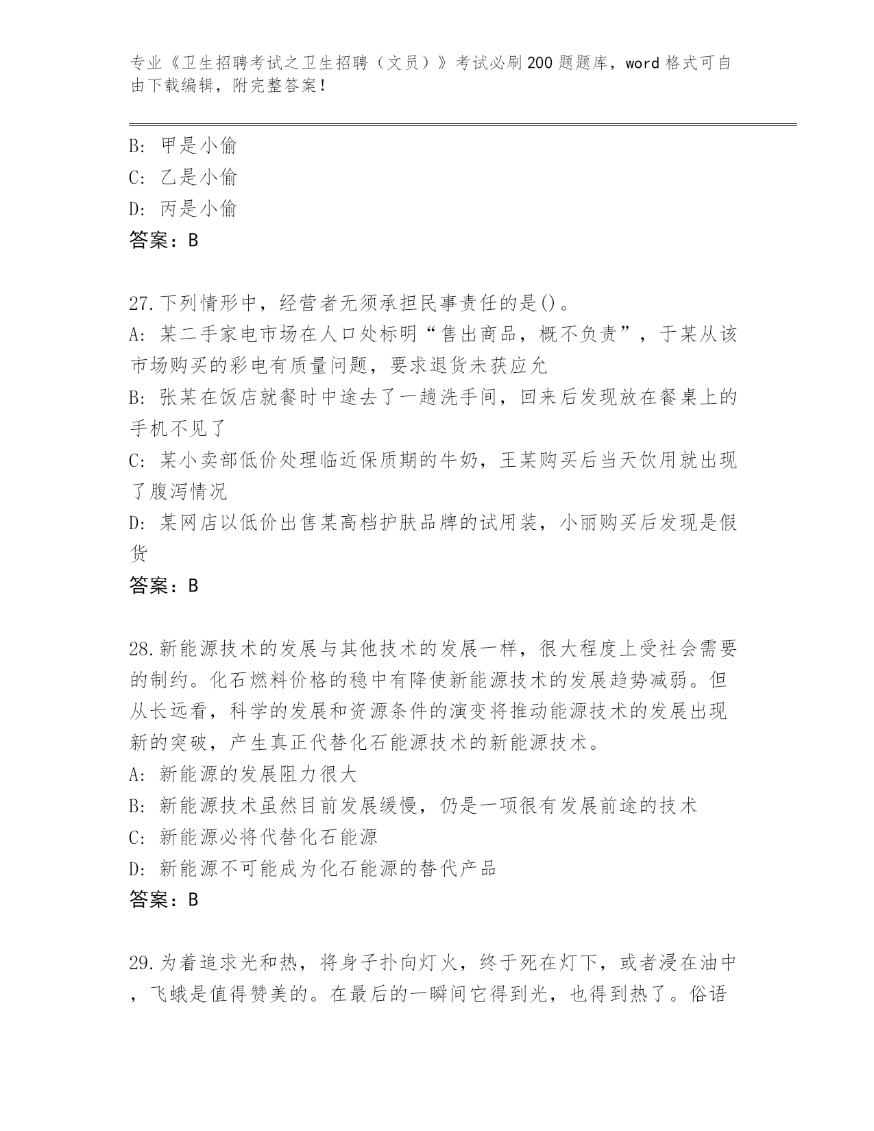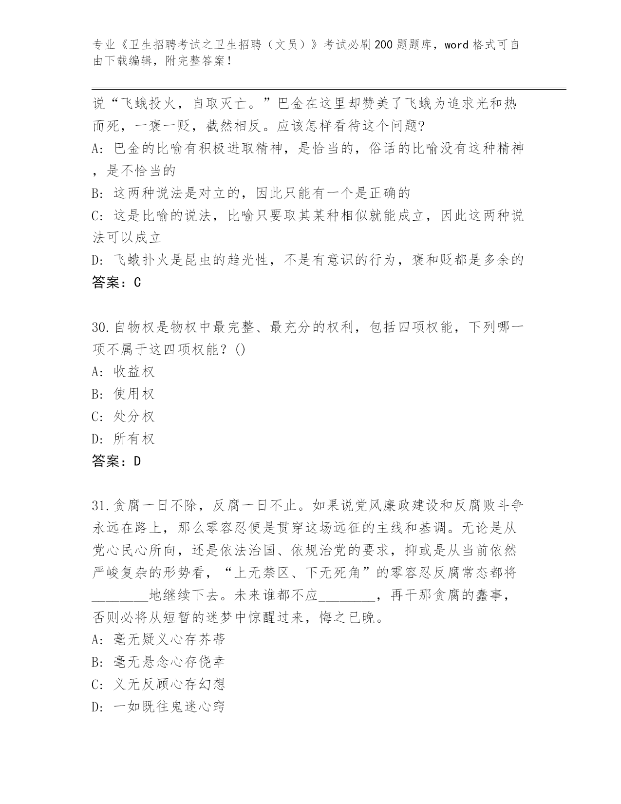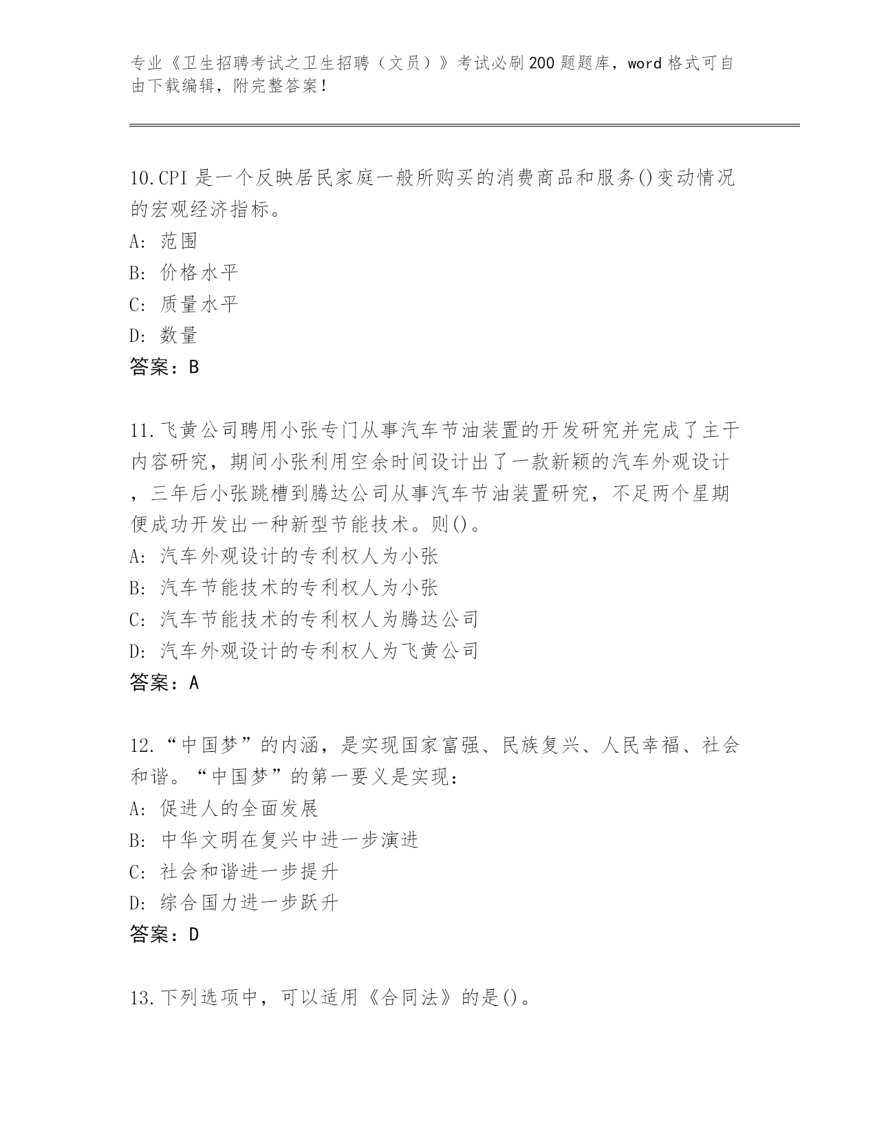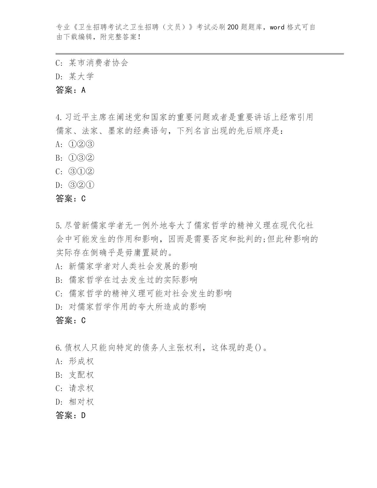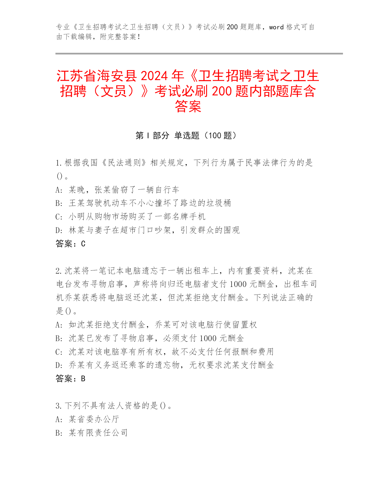 江苏省海安县2024年《卫生招聘考试之卫生招聘(文员)》考试必刷200题内部题库含答案