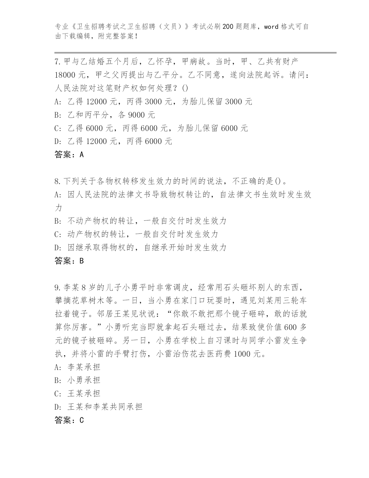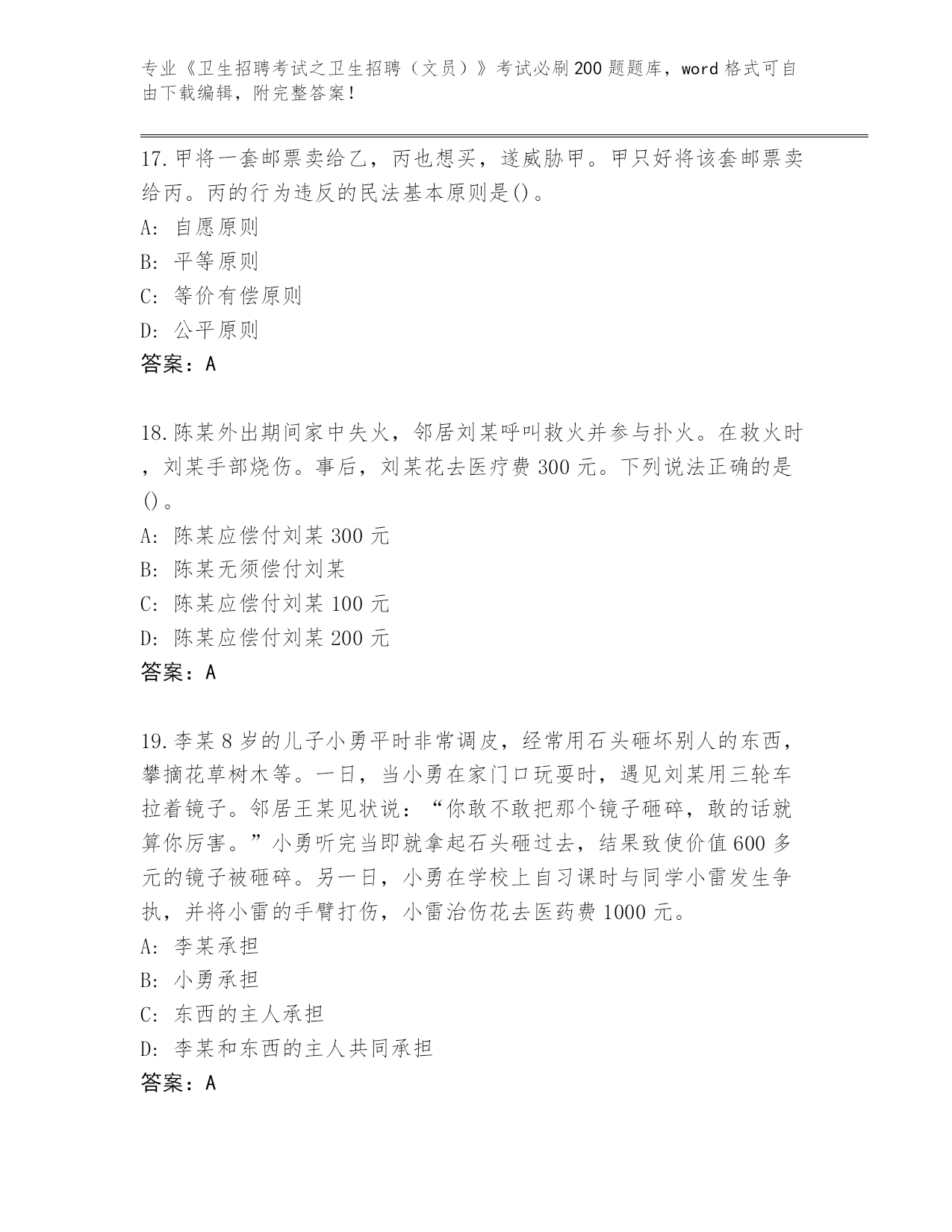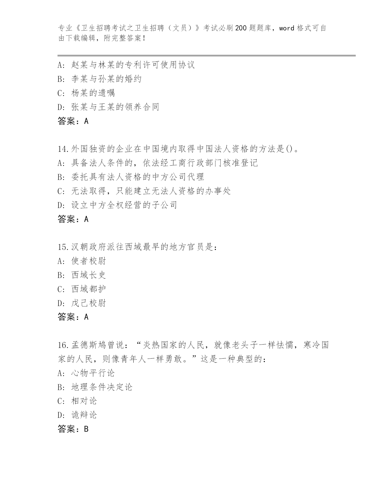 江苏省《卫生招聘考试之卫生招聘(文员)》考试必刷200题内部题库附答案(满分必刷)