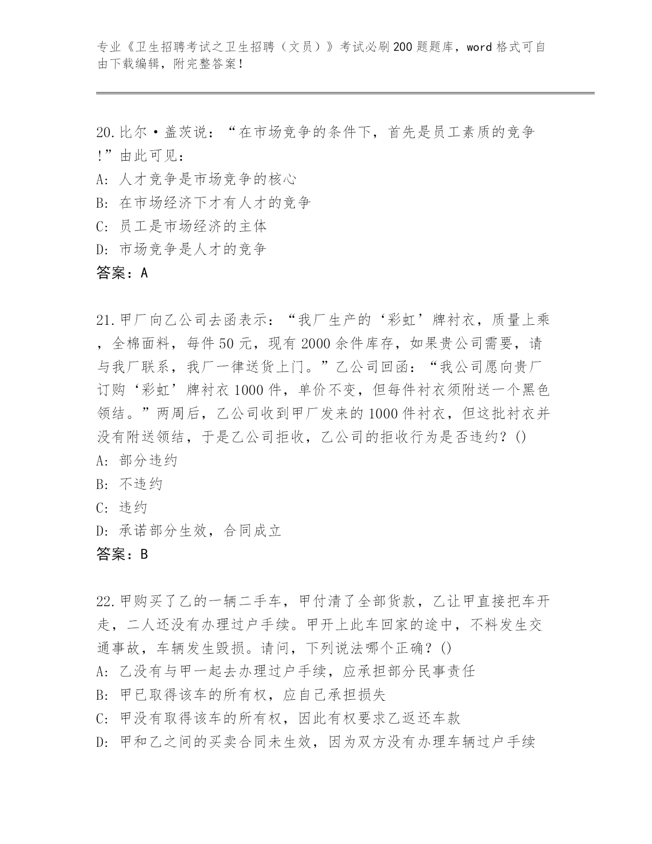 江苏省高淳区内部使用《卫生招聘考试之卫生招聘(文员)》考试必刷200题题库含答案(预热题)