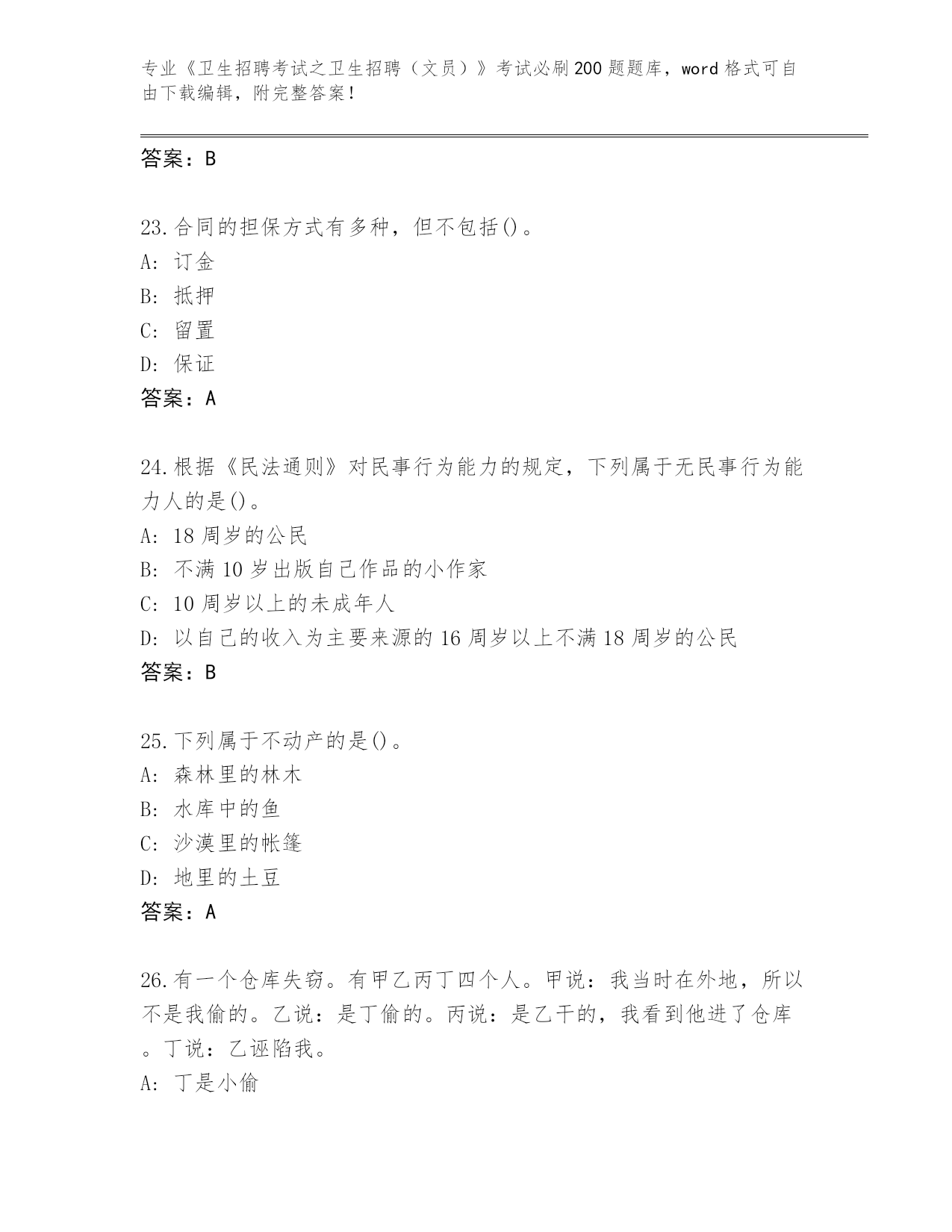 2024江苏省《卫生招聘考试之卫生招聘(文员)》考试必刷200题题库【】
