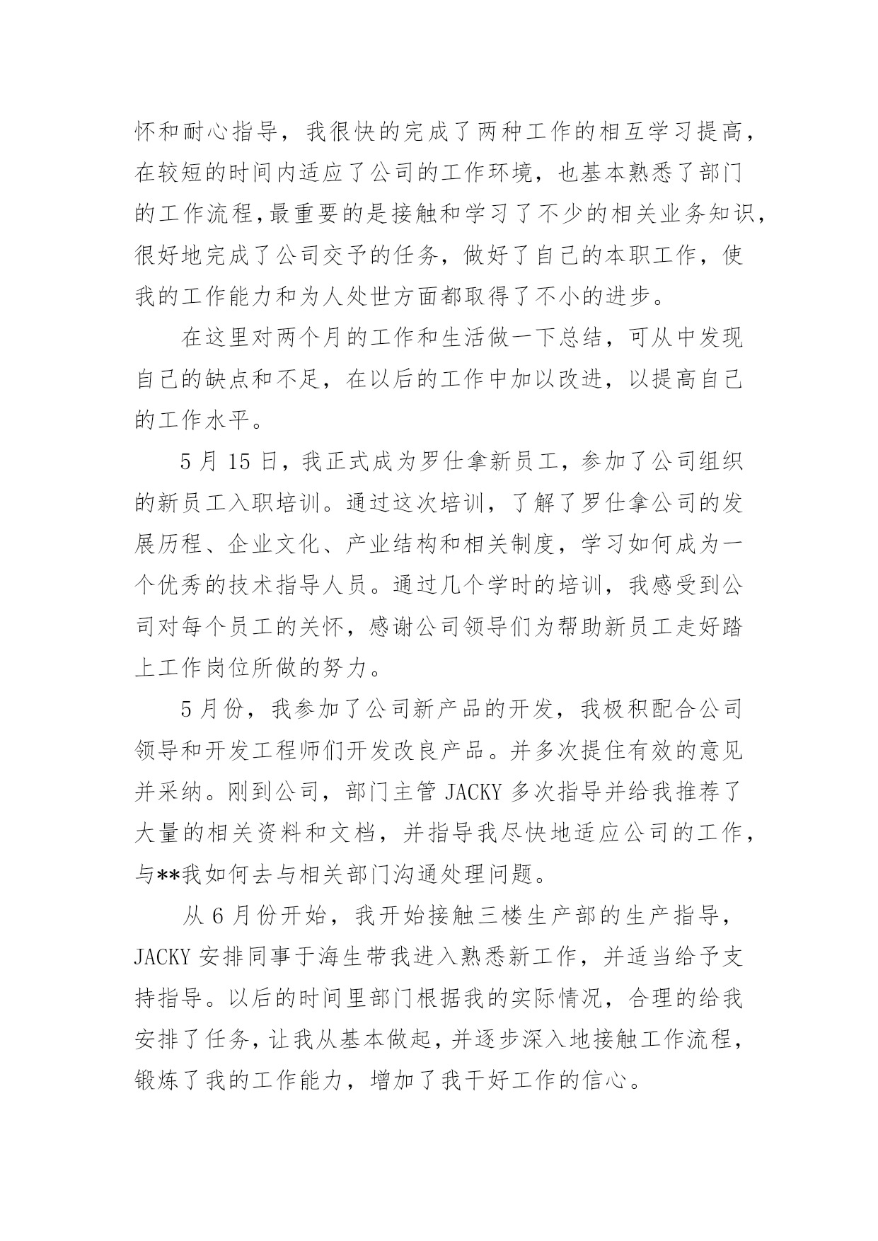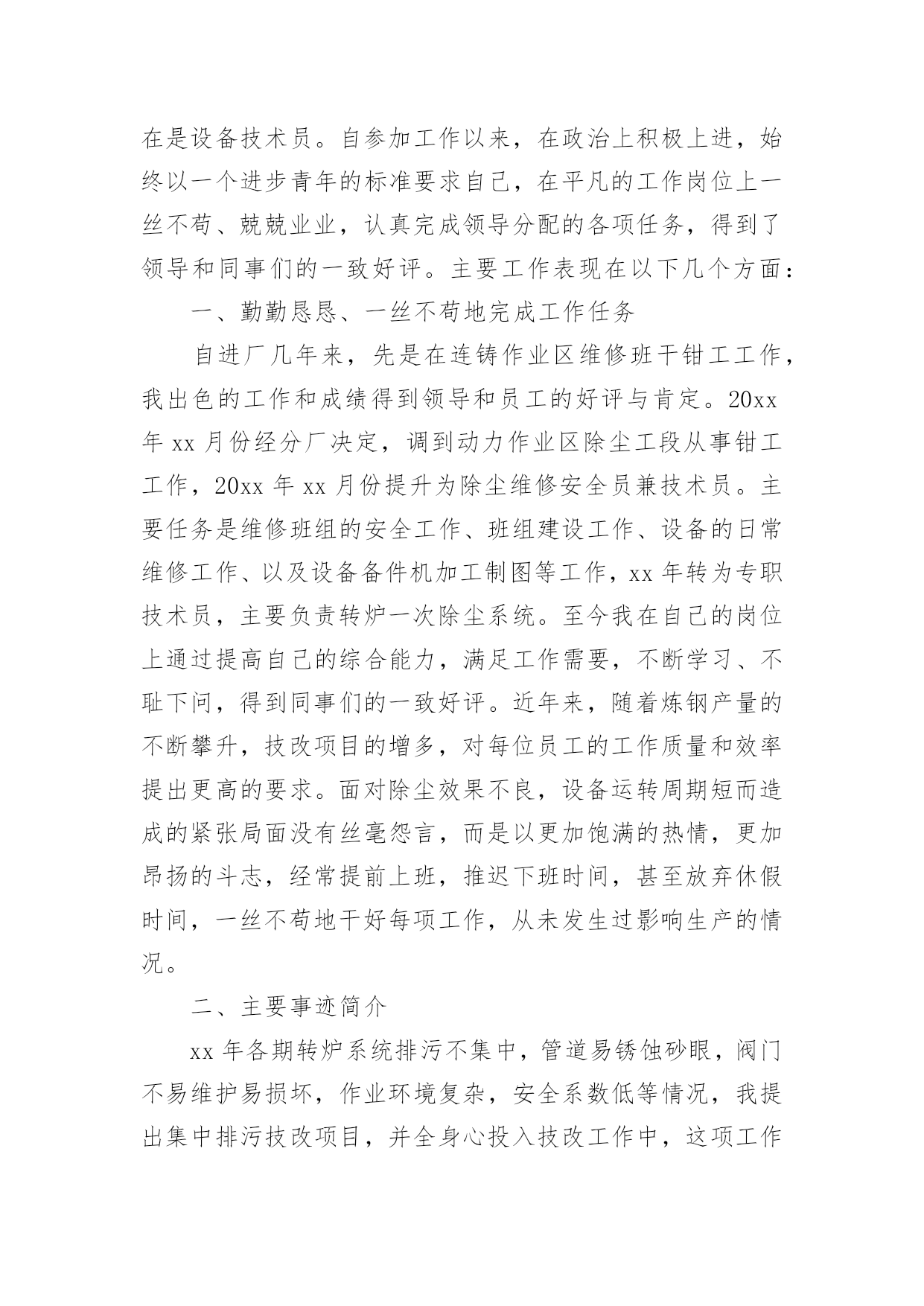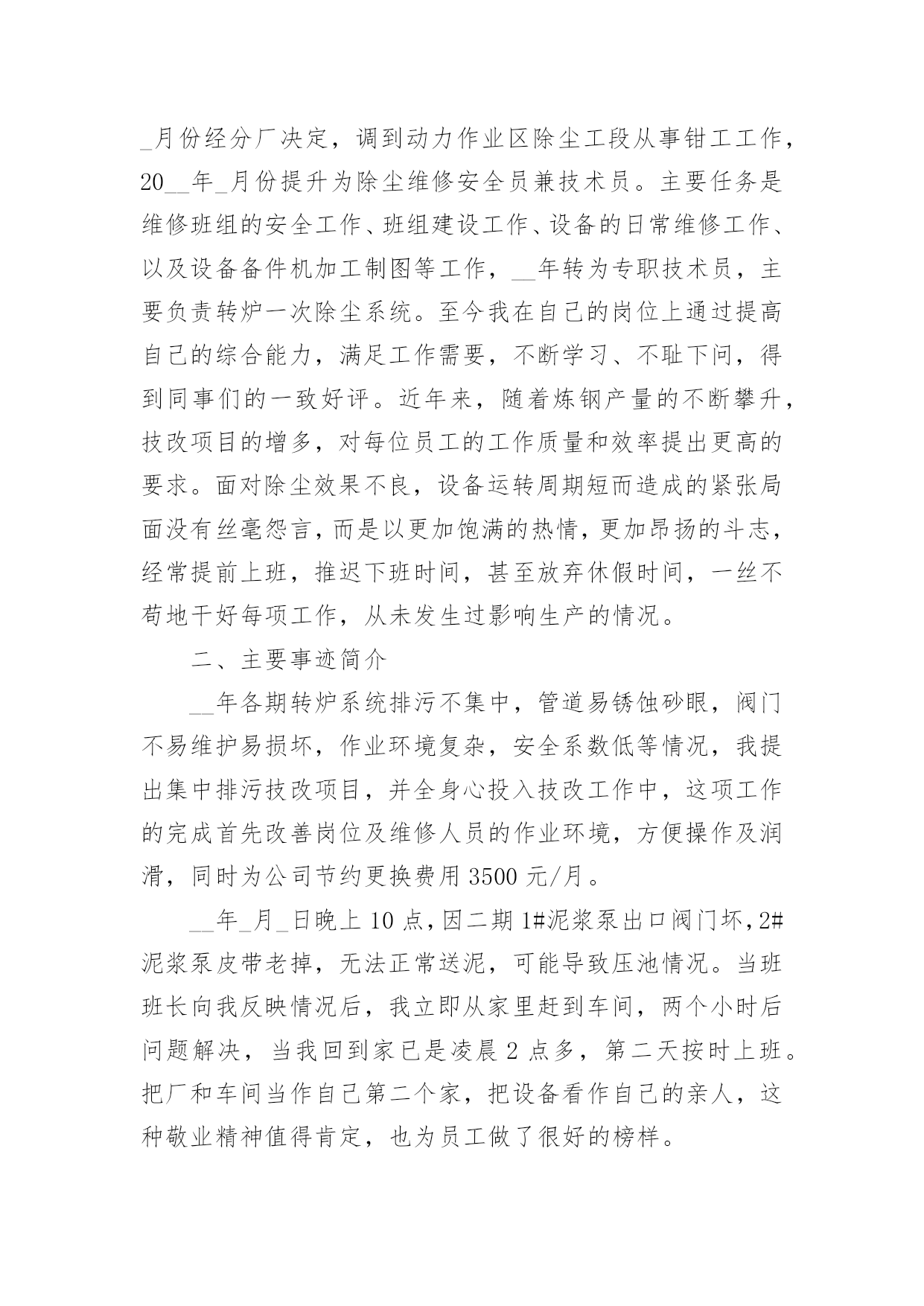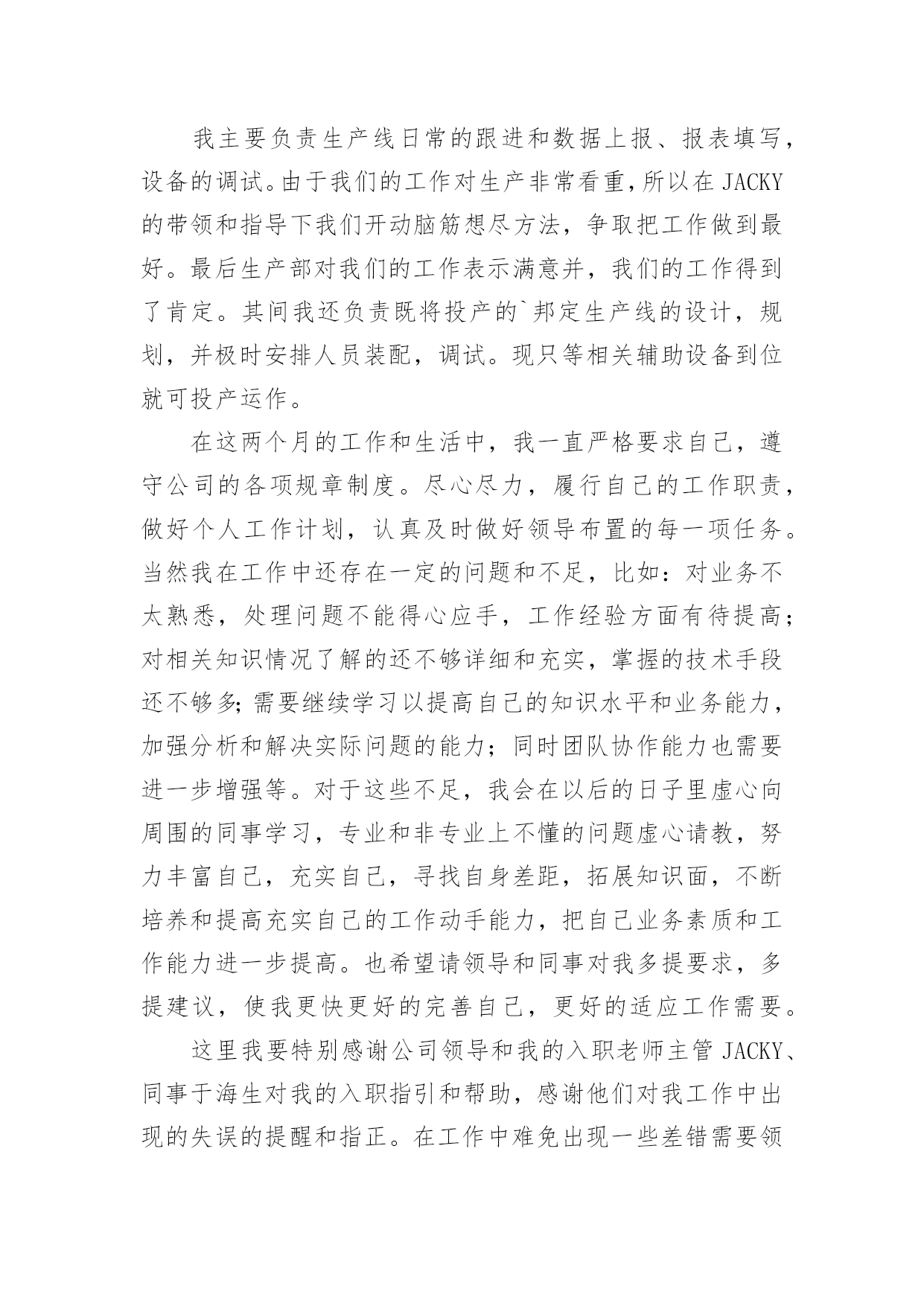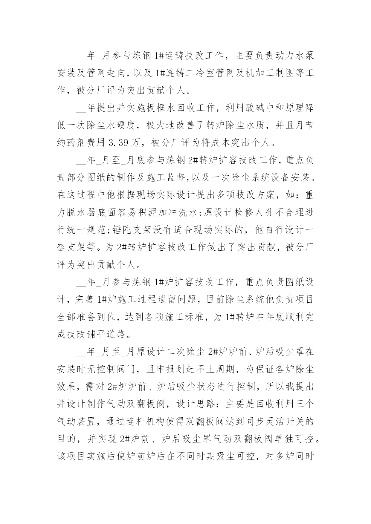机械技术员年终工作总结机械技术员年终工作总结8篇总结是对某一特定时间段内的学习和工作生活等表现情况加以回顾和分析的一种书面材料,它可使零星的、肤浅的、表面的感性认知上升到全面的、系统的、本质的理性认识上来,不如静下心来好好写写总结吧。但是总结有什么要求呢?以下是小编精心整理的机械技术员年终工作总结,仅供参考,希望能够帮助到大家。机械技术员年终工作总结120xx年即将结束。这一年是不平凡进出,对公司来说也是不平凡的一年,也是我个人专业技能进步的一年。在这一年之中作为一名技术员,在公司领导和工友们的关心和支持下,为公司做出了应有的贡献,也有许多做得不足的一面。工作总结如下:作为一名x月份进厂的员工,得到公司的领导都非常的信任我,支持我,给与我这个空间。20xx年我主要负责加工工艺及外部维修相关技术工作。包括新图纸的画图、审核、工艺、产品的难度加工,维修的一线操作、现场的技术指导,有时材料零件的准备,零部件的请购等。面对在理论和生产实践中遇到难解决的技术工作。我和全体同事以及生产工人一起共同探讨,在工作中找方法,从资料中找答案,以慎重的完成了一项又一项的任务。虽然在工作中犯了些错误,但是从这些工作实践当中,这些工作当中积累了大量的经验。对我以后的工作提供了宝贵的经验参考。在20xx年度的工作中,我紧跟公司的步伐,加强理论知识方面的学习,努力做到认识上有新提高、运用上有新收获,达到理论能指导实践、提高工作水平的目的,不断的提高自己的.技术水平。认真学习相关的管理和技术知识,按照公司领导的要求,对公司的相关的技术文件,工艺,资料的管理,设备保养文件等,并参与了车间的整理,整改工作,对车间环境因素,进行了重新完善。在平时的工作中,首先做好日常工作,我与同事既有分工又有合作,坚持经常和其他技术人员进行工作交流,因为个人能力是有限的,团队的能力才大。我们发挥了不怕苦,多动手,多试验,多讨论。从生产实践中得到了许多经验,把维修,工艺基本上完善。维修改造工作得到提高,更好地指导维修工作。降低维修成本,规范了维修项目和维修标准。一年以来,根据各维修提供的图纸及其客户提出的改造加工项目。认真做好材料的计划请购和跟催工作,较好地配合了现场维修、改造,使所需的材料能及时提供。在外协遇到困难时就及时帮助。我做机械技术员以来,便到加工现场、使用现场观察分析,发现利用现有的设备条件,于是跟员工一起分析,重新制订加工工艺,并作业指导。那些老式机床,多年没有维护保养,考虑精度也会达不到要求。在这一年里,感谢公司领导的支持理解,无论是维修过程中,还是在验收过程中,我都做到认真仔细,坚持原则,严格按照规范和要求进行。在得不到理解的情况下,坚持原则,做不懈的解释工作。在维修过程中,亲力亲为,认真负责,对每个关键工序严格把关,发现问题即立要求返工,使每个工程项目都能顺利验收。在这一年里,使我思想上都有了进步。当然成绩只代表过去,在以后的工作中努力,争取做的更好。因为技术在不断进步更新,只有通过不断地学习,脚踏实地的作风,才能作用好自己的工作,要使工程维修,技术和质检工作,还须在工作经验的积累中,逐步培养自己的预见性;不断在现场发现问题,解决问题;使自己的现场综合处理能力不断的得到锻炼和提高。机械技术员年终工作总结2从5月初到现在,我已经在公司工作两个月了。这段时间我收获了很多,对于从一个管理员到一个技术工作者来说是一个极大的转变这将是我职业生涯中具有重要意义。作为一名技术员,我现将我技术员个人工作总结如下,敬请各位领导及同事提出宝贵意见及建议。作为一个初来公司,刚开始很担心不知如何与同事共处、如何做好工作。因为我负责的主打业务公司尚未上马,其间要接触一些我所不是很专业的工作。但是这两个月以来,在公司宽松融洽的工作氛围下,经过部门领导和同事的悉心关怀和耐心指导,我很快的完成了两种工作的相互学习提高,在较短的时间内适应了公司的工作环境,也基本熟悉了部门的工作流程,最重要的是接触和学习了不少的相关业务知识,很好地完成了公司交予的任务,做好了自己的本职工作,使我的工作能力和为人处世方面都取得了不小的进步。在这里对两个月的工作和生活做一下总结,可从中发现自己的缺点和不足,在以后的工作中加以改进,以提高自己的工作水平。5月15日,我正式成为罗仕拿新员工,参加了公司组织的新员工入职培训。通过这次培训,了解了罗仕拿公司的发展历程、企业文化、产业结构和相关制度,学习如何成为一个优秀的技术指导人员。通过几个学时的培训,我感受到公司对每个员工的关怀,感谢公司领导们为帮助新员工走好踏上工作岗位所做的努力。5月份,我参加了公司新产品的开发,我极积配合公司领导和开发工程师们开发改良产品。并多次提住有效的意见并采纳。刚到公司,部门主管JACKY多次指导并给我推荐了大量的相关资料和文档,并指导我尽快