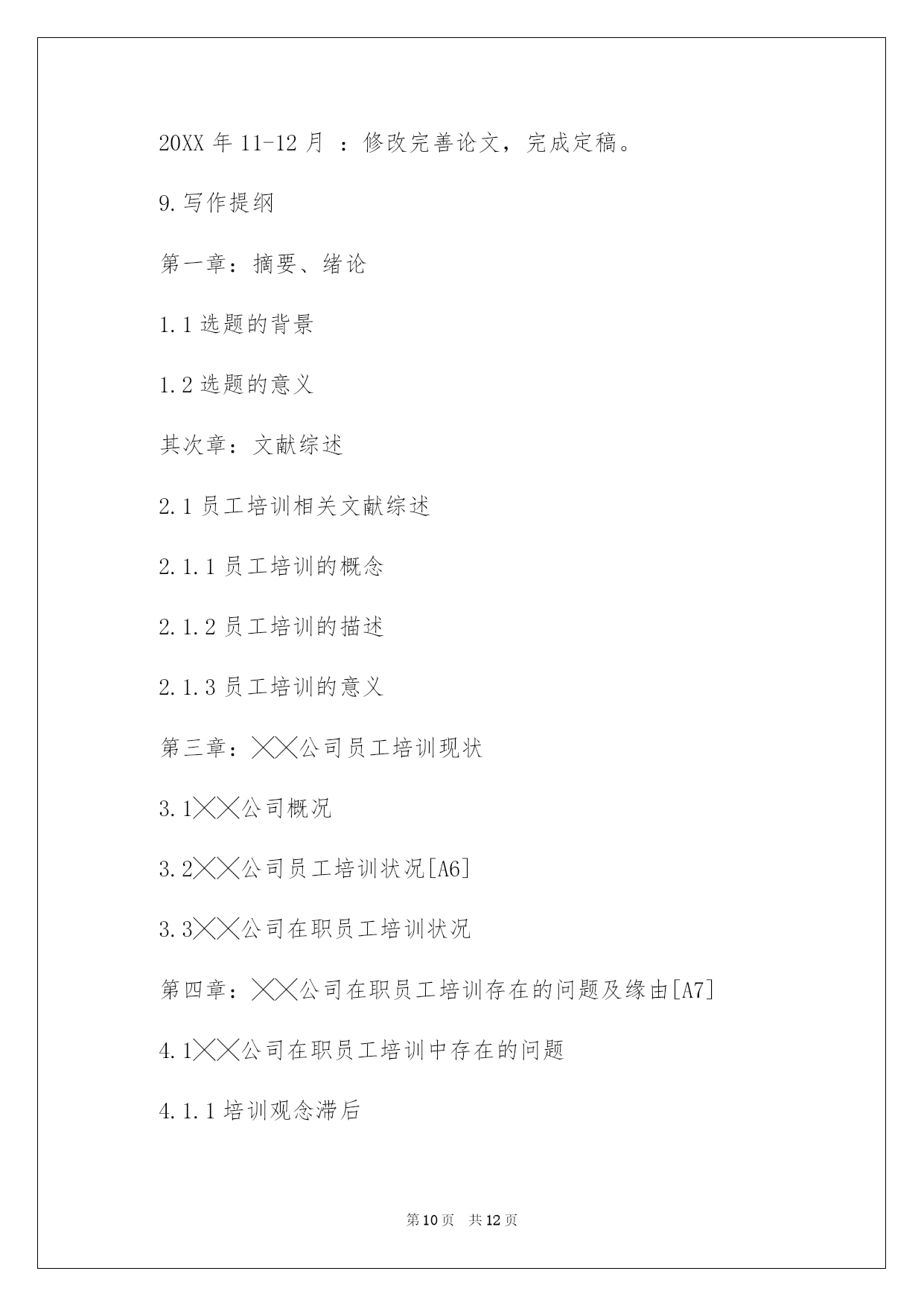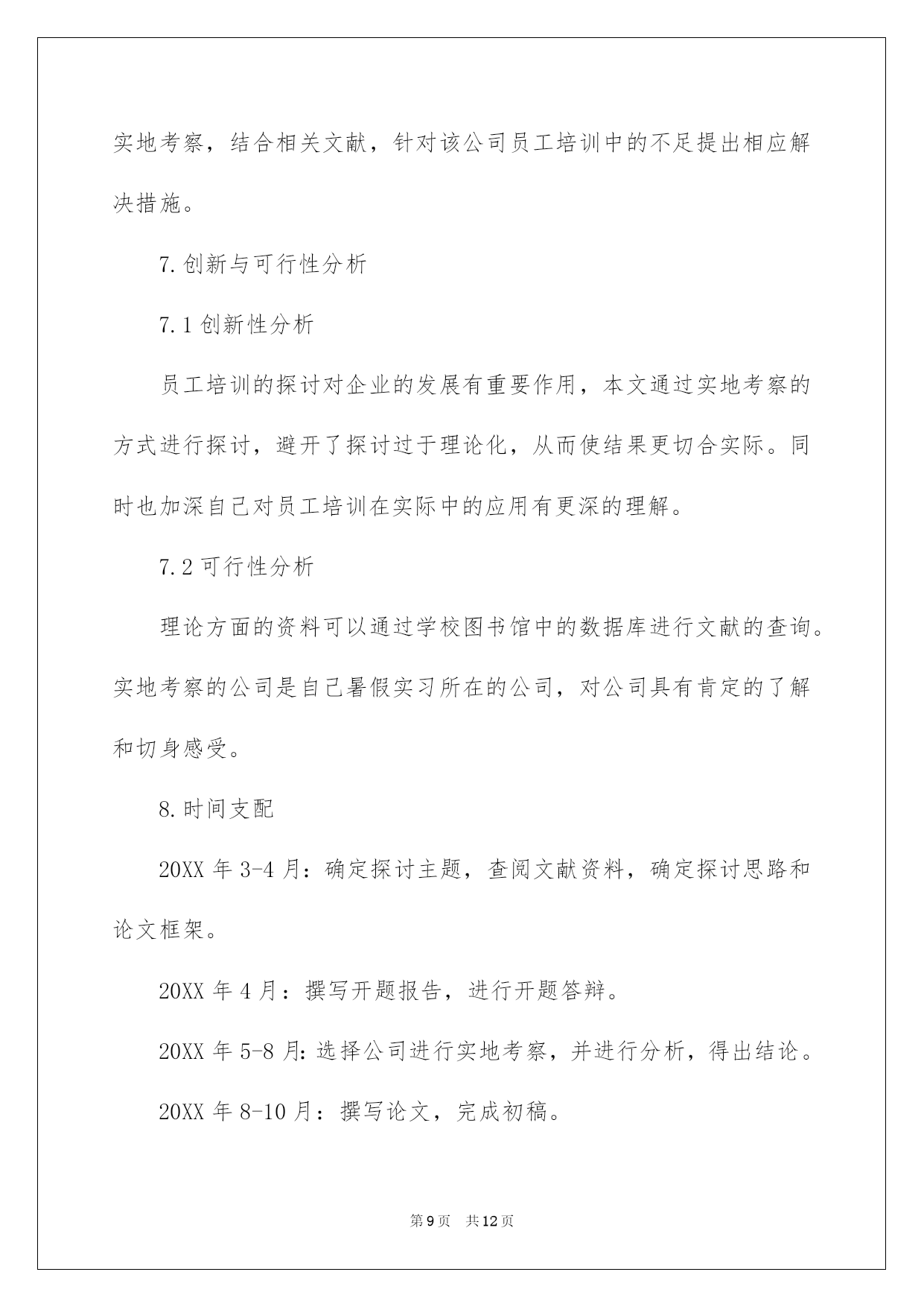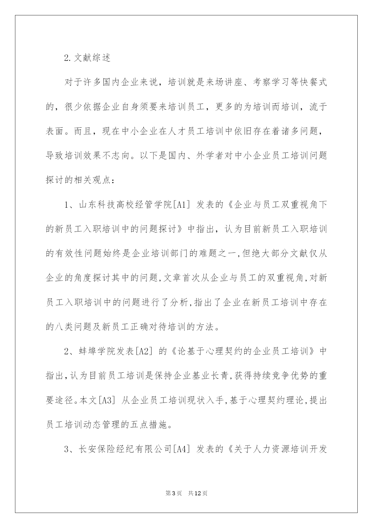 第PAGE\*Arabic\*MERGEFORMAT12页共NUMPAGES\*Arabic\*MERGEFORMAT12页第PAGE\*MERGEFORMAT12页共NUMPAGES\*MERGEFORMAT12页第PAGE\*MERGEFORMAT12页共NUMPAGES\*MERGEFORMAT12页第PAGE\*MERGEFORMAT12页共NUMPAGES\*MERGEFORMAT12页第PAGE\*MERGEFORMAT12页共NUMPAGES\*MERGEFORMAT12页第PAGE\*MERGEFORMAT12页共NUMPAGES\*MERGEFORMAT12页第PAGE\*MERGEFORMAT12页共NUMPAGES\*MERGEFORMAT12页第PAGE\*MERGEFORMAT12页共NUMPAGES\*MERGEFORMAT12页第PAGE\*MERGEFORMAT12页共NUMPAGES\*MERGEFORMAT12页第PAGE\*MERGEFORMAT12页共NUMPAGES\*MERGEFORMAT12页第PAGE\*MERGEFORMAT12页共NUMPAGES\*MERGEFORMAT12页2022员工培训与开发方向开题报告员工培训与开发方向开题报告现代培训与开发是人力资源管理中的一项重要内容,那么大家了解员工培训与开发的开题报告范文是如何的?1.选题背景及意义1.1选题背景进入二十一世纪,经济全球化给我国企业打来了巨大的挑战,随着我国加入WTO和世界经济一体化,企业从来没有象现在那样重视培训。在这种严峻的情形下,╳╳公司如何才能立足并快速占据市场?其关键在于人才,在于拥有一批忠诚、稳定的高素养服务人员和管理人员。企业员工培训,作为干脆提高经营管理者实力水平和员工技能,为企业供应新的工作思路、学问、信息、技能,增长员工才能和敬业、创新精神的根本途径和极好方式,是最为重要的人力资源开发,是比物质资本投资更重要的人力资本投资。人力资源部门作为╳╳公司的重要组成部分,是公司管理的核心和基础。从某种意义上讲,企业的管理主要是通过对人的管理来实现的。因此,人力资源部的工作是╳╳公司能否取得胜利的关键。下面是本论文网站的我搜集的公司员工培训探讨开题报告1.2选题意义员工入职培训,是企业培训工作的一个重要组成部分,是沟通企业与新员工的一座桥梁。员工通过入职培训,能驾驭到任职所需的基本技能,能更快的融入企业文化中,能相识到自己是否真的适合该公司、该岗位,能增加员工对企业的归属感和主子翁责任感;而企业也可通过员工入职培训,来确保新员工进入公司后,能真正的为企业做事,为企业创效益,同时,也可以让企业对员工有进一步的了解,能真正做到用其所长,避其所短,真正达到双赢,促进企业与员工、管理层与员工层的双向沟通,增加企业向心力和凝合力,塑造优秀的企业文化;同时,顺应实事的培训可以使企业更好的适应市场改变从而增加竞争优势,培育企业的后备力气,保持企业永继经营的生命力。松下曾有一句培训名言:“培训是要付出代价的,但没有培训所付出的代价却远远大于要培训所付出的代价!新员工的培训是最好做的,也是最难做的。”从中我们可以看出培训的重要性,特殊是员工入职培训的重要性,所以分析其现状,并提出改进措施有其现实意义。2.文献综述对于许多国内企业来说,培训就是来场讲座、考察学习等快餐式的,很少依据企业自身须要来培训员工,更多的为培训而培训,流于表面。而且,现在中小企业在人才员工培训中依旧存在着诸多问题,导致培训效果不志向。以下是国内、外学者对中小企业员工培训问题探讨的相关观点:1、山东科技高校经管学院[A1]发表的《企业与员工双重视角下的新员工入职培训中的问题探讨》中指出,认为目前新员工入职培训的有效性问题始终是企业培训部门的难题之一,但绝大部分文献仅从企业的角度探讨其中的问题,文章首次从企业与员工的双重视角,对新员工入职培训中的问题进行了分析,指出了企业在新员工培训中存在的八类问题及新员工正确对待培训的方法。2、蚌埠学院发表[A2]的《论基于心理契约的企业员工培训》中指出,认为目前员工培训是保持企业基业长青,获得持续竞争优势的重要途径。本文[A3]从企业员工培训现状入手,基于心理契约理论,提出员工培训动态管理的五点措施。3、长安保险经纪有限公司[A4]发表的《关于人力资源培训开发管理的探讨》中指出,认为目前在当前的社会经济发展水平下,一个企业若要立足,必不行少的一个要素就是须要受过良好训练,且阅历丰富的人才,而现实的状况确是企业的大部分职位都被平凡之才占有。因此,企业若想发展,很