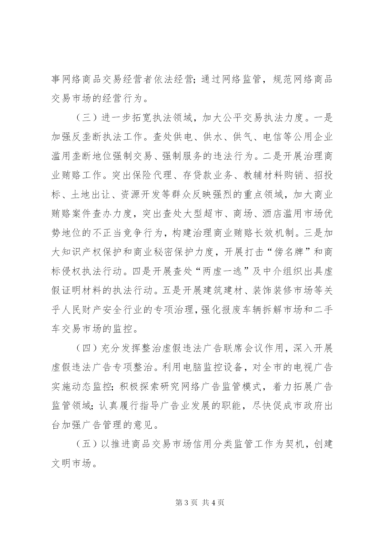 第PAGE\*Arabic\*MERGEFORMAT4页共NUMPAGES\*MERGEFORMAT4页工商单位工作安排年,我局工商行政管理工作将以学习实践科学发展观为指导,全面落实十七届五中全会精神,紧紧围绕市“争创中国百强县、争做全区县域经济排头兵”的奋斗目标,努力促进地方经济平稳较快发展和加快经济发展方式转变,在服务、监管和执法等各个方面创新理念,改进方法,提高水平,以崭新的面貌做好“十二五”规划的开局之年的各项工作。一、以支持地方经济发展为重点,不断加大服务力度,全面提升服务发展的层次和效果(一)强力推行12315“五进”工作,促进社会和谐发展。科学整合12315网络,实现维权服务网络的全覆盖,以保护社区居民、农村村民、学校学生等弱势群体消费权益为重点,突出抓好消费维权教育“进校园、进社区、进农村、进超市、进企业”工作,以全新的面貌迎接全国消费维权“五进”工作现场会的召开。(二)建立健全服务制度,为促进地方经济的发展出谋划策。一是建立“工商顾问制度”。向企业提出有针对性、可操作性的政策建议。二是进一步完善市场主体登记发布制度。为推进经济结构调整和增长方式转变搞好服务。三是进一步发挥工商联络员作用。拓宽“绿色通道”,对企业进行行政指导,帮助解决企业在组建和发展过程中遇到的问题。(三)制定具体措施,为促进地方经济的发展创造条件。一是继续细化我局制定的42条措施,围绕推进民营经济发展和招商引资工作搞好服务。二是关注社会就业问题。做到培养一家,发展一家,壮大一家,形成“数质并举”的民营经济发展导向。三是大力支持市工业园区建设、招商引资项目和新农村建设。(四)认真实施商标战略,支持企业做大做强。一是大力推进“品牌宁夏”建设。以全市6大特色产业集群为重点,加快产业集群自主品牌建设,促进特色产业的快速发展。二是开展“商标强企”活动。帮助企业建立品牌培育库,形成重点商标企业品牌帮扶机制。三是稳步推进全市注册商标总量持续增长。力争到年底,全市注册商标申请量同比增长25%,证明商标、驰、着名商标认定取得新的进展。(五)推进“红盾护农”工程,支持社会主义新农村建设。一是继续推进“红盾护农”。探索实施农资经营户分级、分类监管制度。二继续推进“经纪活农”。不断提升农村经纪人的经纪业务水平和能力,使其健康发展。三是继续推进“合同助农”。规范涉农合同管理,调解涉农合同纠纷,查处涉农合同欺诈行为。二、以营造规范有序的市场环境为目标,切实加强市场监管,着力保障全市经济平稳较快发展(二)认真开展网络交易及有关服务行为监管工作。通过调研排查,建立起网络交易市场监管机制;通过行政指导,引导从事网络商品交易经营者依法经营;通过网络监管,规范网络商品交易市场的经营行为。(三)进一步拓宽执法领域,加大公平交易执法力度。一是加强反垄断执法工作。查处供电、供水、供气、电信等公用企业滥用垄断地位强制交易、强制服务的违法行为。二是开展治理商业贿赂工作。突出保险代理、存贷款业务、教辅材料购销、招投标、土地出让、资源开发等群众反映强烈的重点领域,加大商业贿赂案件查办力度,突出查处大型超市、商场、酒店滥用市场优势地位的不正当竞争行为,构建治理商业贿赂长效机制。三是加大知识产权保护和商业秘密保护力度,开展打击“傍名牌”和商标侵权执法行动。四是开展查处“两虚一逃”及中介组织出具虚假证明材料的执法行动。五是开展建筑建材、装饰装修市场等关乎人民财产安全行业的专项治理,强化报废车辆拆解市场和二手车交易市场的监控。(四)充分发挥整治虚假违法广告联席会议作用,深入开展虚假违法广告专项整治。利用电脑监控设备,对全市的电视广告实施动态监控;积极探索研究网络广告监管模式,着力拓展广告监管领域;认真履行指导广告业发展的职能,尽快促成市政府出台加强广告管理的意见。(五)以推进商品交易市场信用分类监管工作为契机,创建文明市场。三、以“三个过硬”为目标,强化培训提高,提升队伍素质一是进一步加强党风廉政建设工作。以行风政风评议为抓手,深入开展效能建设和作风建设。进一步加强廉政教育。二是进一步提高党建工作水平。进一步加强政治思想教育工作,深入开展“两承诺三评议”活动,深化创先争优活动。三是进一步改进干部教育培训工作。严格落实“逢训必考”制度,切实改进培训方法,着力完善学习激励机制。四是进一步提升行政执法水平。全面推行行政指导,积极开展网上案件核审,加强制度建设,完善执法责任制。四、狠抓规章制度建设,严格督查考核落实,确保目标任务按时完成一是全力以赴抓督查。建立健全局、科、所三级工作督查制度。二是全力以赴抓考核。认真落实绩效考核办法,建立健全激励约束机制。三是全力以赴抓班子。充分发挥好“班长”和榜样作用。四是全力以赴抓队伍。进一步完善市场区域巡查责任制,将监管任务真正落实到人。