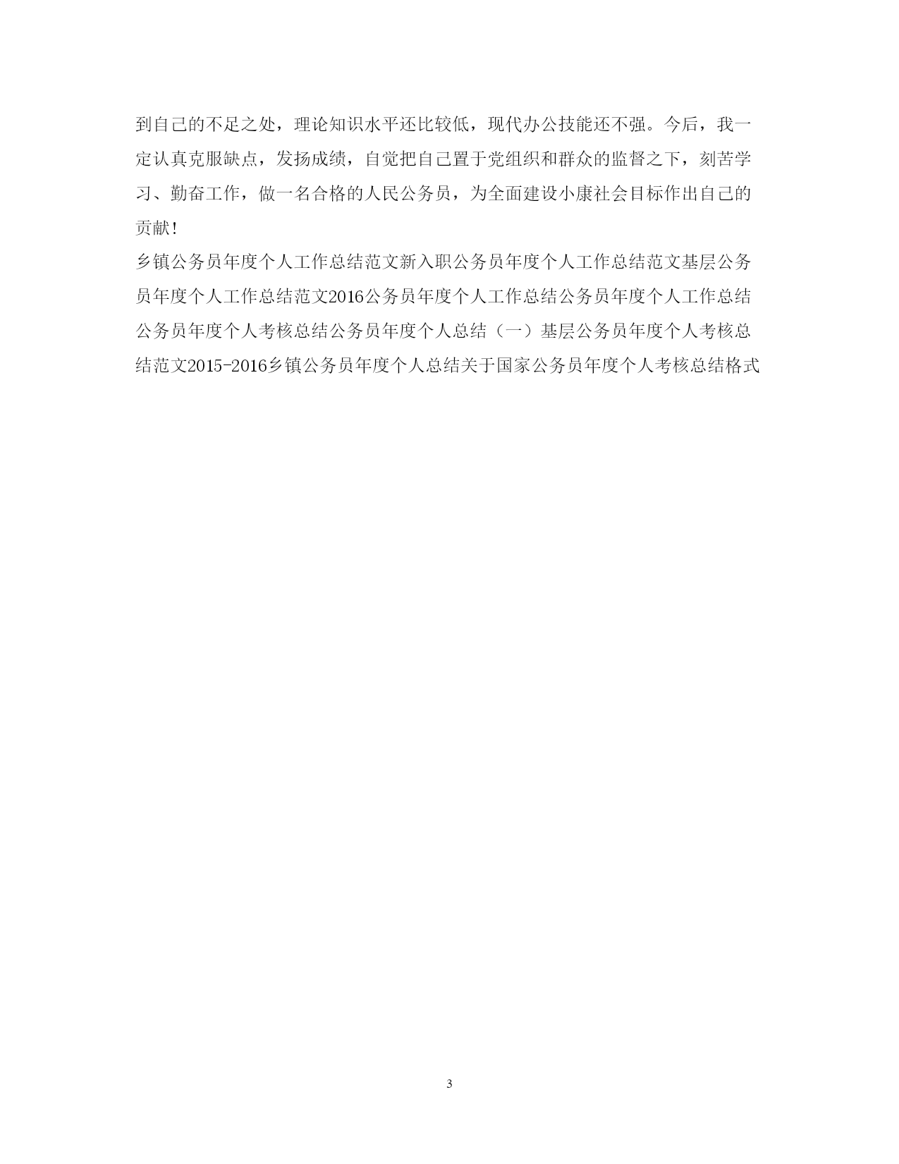 此资料由网络收集而来,如有侵权请告知上传者立即删除。资料共分享,我们负责传递知识。PAGEPAGE320XX年公务员年度个人工作总结格式一、严于律已,自觉加强党性锻炼,党性修养和政治思想觉悟进一步提高一年来,我始终坚持运用马克思列宁主义的立场、观点和方法论,运用辩证唯物主义与历史唯物主义去分析和观察事物,明辨是非,坚持真理,坚持正确的世界观、人生观、价值观,用正确的世界观、人生观、价值观指导自己的学习、工作和生活实践,在思想上积极构筑抵御资产阶级民主和自由化、拜金主义、自由主义等一切腐朽思想侵蚀的坚固防线。热爱祖国,热爱中国共产党,热爱社会主义,拥护中国共产党的领导,拥护改革开放,坚信社会主义最终必然战胜资本主义,对社会主义充满必胜的信心。认真贯彻执行党的路线、方针、政策,为加快社会主义建设事业认真做好本职工作。工作积极主动,勤奋努力,不畏艰难,尽职尽责,在平凡的工作岗位上作出力所能及的贡献。二、强化理论和业务学习,不断提高自身综合素质我重视加强理论和业务知识学习,在工作中,坚持一边工作一边学习,不断提高自身综合素质水平。一是认真学习“三个代表”重要思想,深刻领会“三个代表”重要思想的科学内涵,增强自己实践“三个代表”重要思想的自觉性和坚定性;认真学习党的十六大报告及十六届三中、四中全会精神,自觉坚持以党的十六大为指导,为进一步加快完善社会主义市场经济体制,全面建设小康社会作出自己的努力。二是认真学习工作业务知识,重点学习公文写作及公文处理和电脑知识。在学习方法上做到在重点中找重点,抓住重点,并结合自己在公文写作及公文处理、电脑知识方面存在哪些不足之处,有针对性地进行学习,不断提高自己的办公室业务工作能力。三是认真学习法律知识,结合自己工作实际特点,利用闲余时间,选择性地开展学习,学习了《中华人民共和国森林法》、《森林防火条例》、《中华人民共和国土地管理法》、《广西壮族自治区土地山林水利权属纠纷调解处理条例》、《反分裂国家法范文网》,通过学习,进一步增强法制意识和法制观念。三、努力工作,按时完成工作任务一年来,我始终坚持严格要求自己,勤奋努力,时刻牢记党全心全意为人民服务的宗旨,努力实践“三个代表”重要思想,在自己平凡而普通的工作岗位上,努力做好本职工作。在具体工作中,我努力做好服务工作,当好参谋助手:一是认真收集各项信息资料,全面、准确地了解和掌握各方面工作的开展情况,分析工作存在的主要问题,总结工作经验,及时向领导汇报,让领导尽量能全面、准确地了解和掌握最近工作的实际情况,为解决问题作出科学的、正确的决策。二是领导交办的每一项工作,分清轻重缓急,科学安排时间,按时、按质、按量完成任务。三是在接待来访群众的工作中,坚持按照工作要求,热情接待来访群众、认真听取来访群众反映的问题,提出的要求、建议。同时,对群众要求解决但一时又解决不了的问题认真解释,耐心做好群众的思想工作,让群众相信政府。在同志们的关心、支持和帮助下,各项服务工作均取得了圆满完成任务的好成绩,得到领导和群众肯定。回顾一年来的工作,我在思想上、学习上、工作上取得了新的进步,但我也认识到自己的不足之处,理论知识水平还比较低,现代办公技能还不强。今后,我一定认真克服缺点,发扬成绩,自觉把自己置于党组织和群众的监督之下,刻苦学习、勤奋工作,做一名合格的人民公务员,为全面建设小康社会目标作出自己的贡献!乡镇公务员年度个人工作总结范文新入职公务员年度个人工作总结范文基层公务员年度个人工作总结范文2016公务员年度个人工作总结公务员年度个人工作总结公务员年度个人考核总结公务员年度个人总结(一)基层公务员年度个人考核总结范文2015-2016乡镇公务员年度个人总结关于国家公务员年度个人考核总结格式