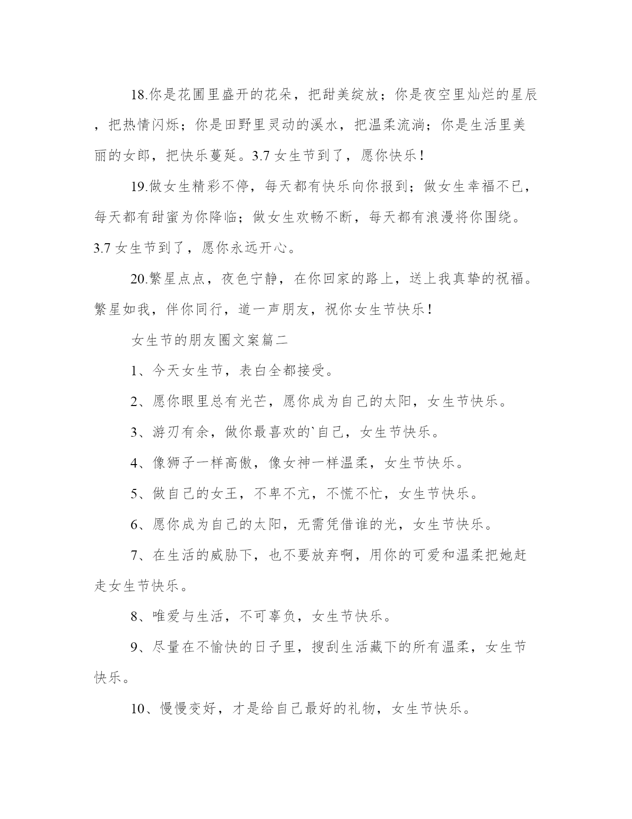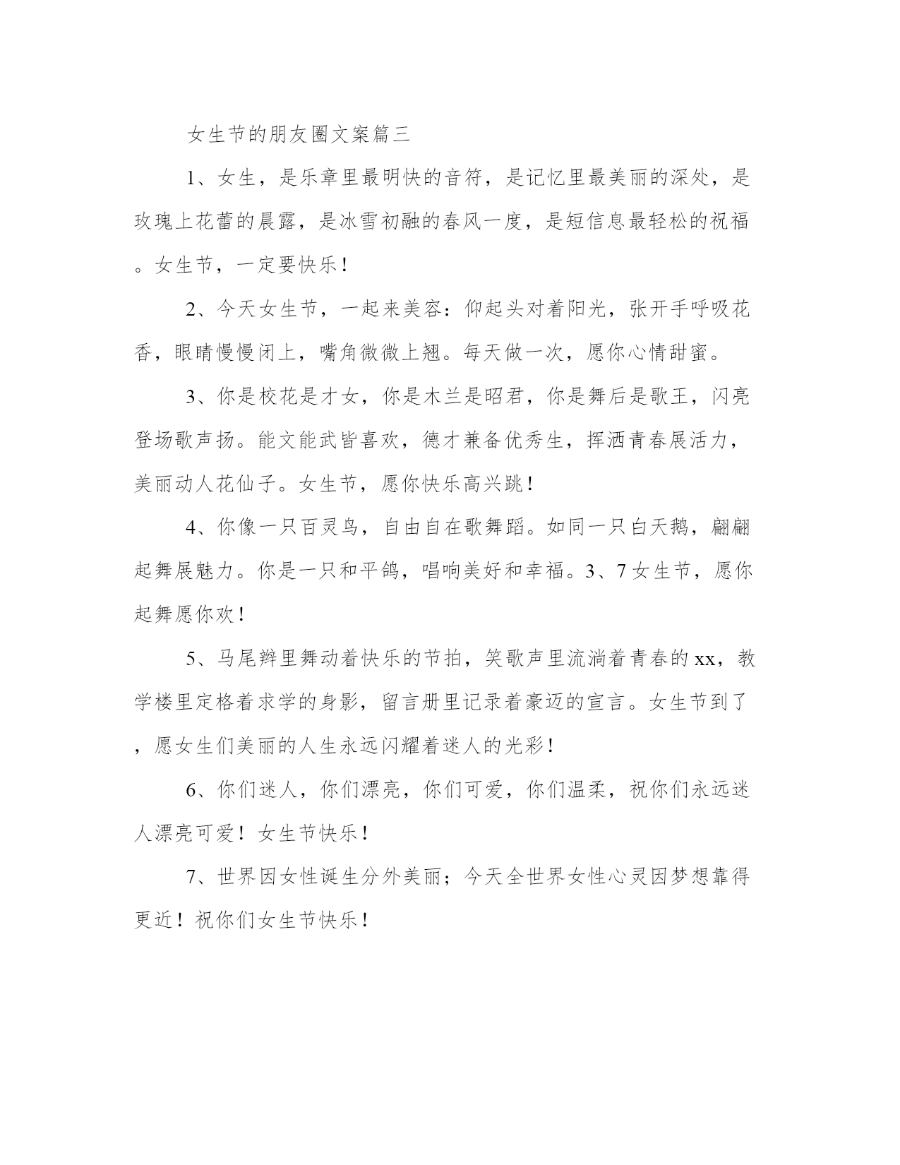 最新女生节的朋友圈文案朋友圈女生节文案(优秀13篇).docx