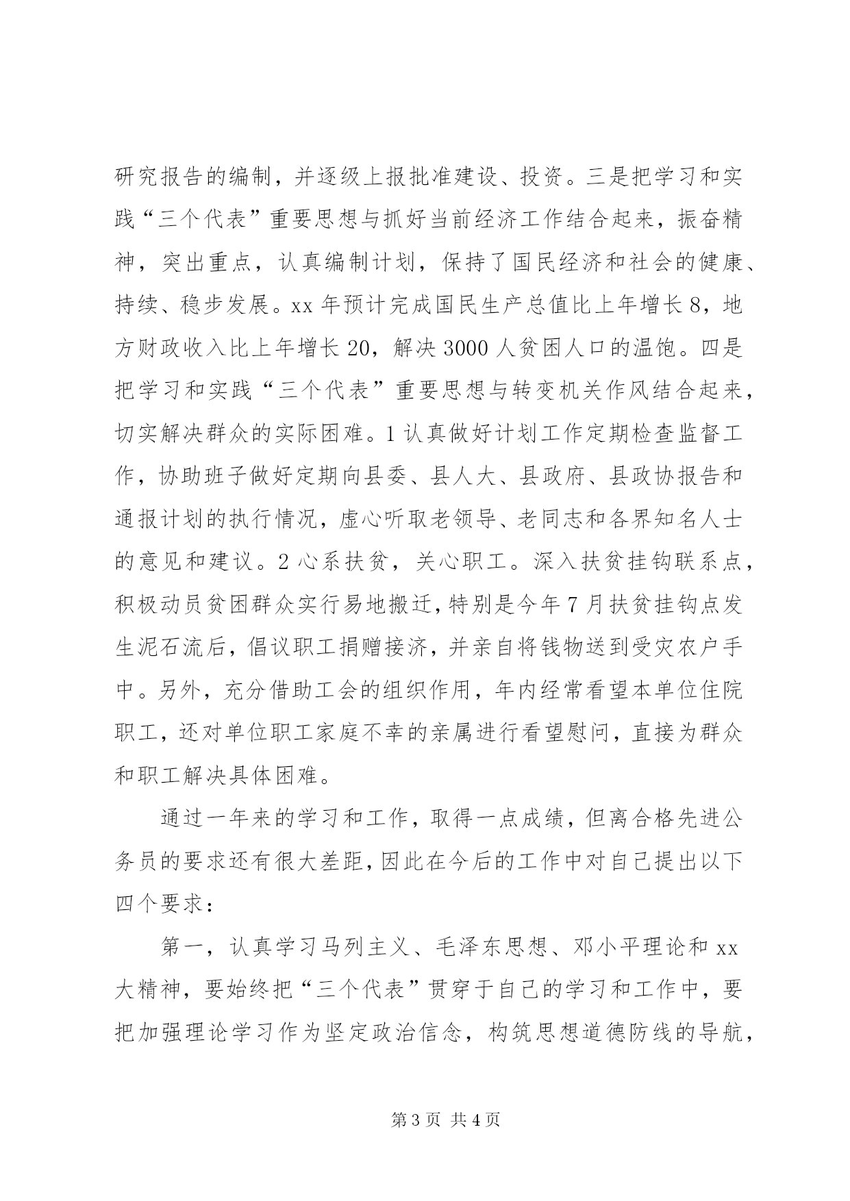 第PAGE\*Arabic\*MERGEFORMAT4页共NUMPAGES\*MERGEFORMAT4页公务员XX年的年终工作总结范文回顾一年来自己所走过的历程,我作为一名在副科级岗位上的国家公务员,始终能够按“三个代表”的要求,兢兢业业,忠于职守,自觉履行一名国家公务员的职责。在思想政治方面,坚定树立起自己的政治理想信念,坚定建设中国特色社会主义,全面推进脱贫致富,逐步建设小康社会的信心,不断加强自身修养,努力改造自己的主观世界,树立正确的世界观、人生观和价值观,坚定自己的立场,忠于党和人民的事业,敬岗爱业,按照“三个代表”重要思想的要求,始终坚持不放松学习,正确处理工作和学习的关系,认真学习马列主义、毛泽东思想和邓小平理论,特别是深入学习******同志“三个代表”重要思想,努力掌握和深刻理解它的科学内涵、内在联系和伟大意义。最近,又深入学习党的xx大精神,围绕报告的主题、灵魂和精髓开展学习,并坚持理论联系实际的学习,努力用科学的理论指导自己的工作,深入思考和研究泸水经济、社会发展的战略。在廉洁自律方面,我认真执行和严格遵守党纪国法和廉洁从政的各项规定,自觉抵制各种不正之风,做到在生活上廉洁俭朴,在经济上公私分明,在工作上秉公办事,严格约束自己,切实管好自己的家人和身边的工作人员。在管好自己和亲属的同时,我积极参加班子建设和机关廉政建设,不私驾公车,不占用公物,不走后门,不计较个人得失,并配合班子,领导办公室建立和完成各种规章制度,保证了机关工作的有较有序、超前的进行。在工作实践方面,我始终牢固树立全心全意为人民服务的宗旨,正确对待手中的权力,不跑官要官,任劳任怨,扎实工作。通过“三个代表”重要思想学习教育活动后,自己在学习活动中也做出了自己今后努力的方向,一年来,自己根据制定的努力方向严格要求自己,在不断学习和探索实践“三个代表”重要思想的过程中,在工作上从以下几个方面狠下功夫:一是把学习和实践“三个代表”重要思想与进一步解放思想,更新观念结合起来,本资料权属文秘资源网查看文秘资源网资料并努力落实在工作中。按照县委的统一部署下,1—4月份驻xx乡开展乡村“三个代表”重要思想学习教育活动指导工作,在乡党委的统一领导下,一方面对全乡的“三学”工作进行监督指导,使全乡的“三学”工作按照预期的目标圆满完成;另一方面,结合自己业务的实际,协助乡党委、政府开展全乡今后经济、社会发展研讨,并在“三学”指导期间,建议性地指导完成了“xx乡村级扶贫规划”,亲自完成了《xx加工厂可行性研究报告》,其间还帮助协调解决了10万元的乡村公路修复资金。二是把实践“三个代表”重要思想和抓好长远发展结合起来,适度超前当好参谋。协助省市计委开展好xx机场、xx电站的前期工作。完成了xx年易地搬迁扶贫、贫困乡镇扶贫开发建设、以工代赈项目等项目建设的可行性研究报告的编制,并逐级上报批准建设、投资。三是把学习和实践“三个代表”重要思想与抓好当前经济工作结合起来,振奋精神,突出重点,认真编制计划,保持了国民经济和社会的健康、持续、稳步发展。xx年预计完成国民生产总值比上年增长8,地方财政收入比上年增长20,解决3000人贫困人口的温饱。四是把学习和实践“三个代表”重要思想与转变机关作风结合起来,切实解决群众的实际困难。1认真做好计划工作定期检查监督工作,协助班子做好定期向县委、县人大、县政府、县政协报告和通报计划的执行情况,虚心听取老领导、老同志和各界知名人士的意见和建议。2心系扶贫,关心职工。深入扶贫挂钩联系点,积极动员贫困群众实行易地搬迁,特别是今年7月扶贫挂钩点发生泥石流后,倡议职工捐赠接济,并亲自将钱物送到受灾农户手中。另外,充分借助工会的组织作用,年内经常看望本单位住院职工,还对单位职工家庭不幸的亲属进行看望慰问,直接为群众和职工解决具体困难。通过一年来的学习和工作,取得一点成绩,但离合格先进公务员的要求还有很大差距,因此在今后的工作中对自己提出以下四个要求:第一,认真学习马列主义、毛泽东思想、邓小平理论和xx大精神,要始终把“三个代表”贯穿于自己的学习和工作中,要把加强理论学习作为坚定政治信念,构筑思想道德防线的导航,牢固树立正确的世界观、人生观和价值观。第二、要从讲政治的高度,从实践“三个代表”重要思想的高度,充分认识反腐倡廉的重要性、长期性、艰巨性和复杂性,以强烈的政治责任感和工作紧迫感,采取扎实有效的措施,推进党风廉政建设和反腐败斗争的深入开展。第三、进一步严格要求自己,坚持正确的政治立场、政治方向和政治观点,严守党纪国法,在政治上、思想上、行动上与党中央保持高度的一致,管好自己的亲属和身边的工作人员,加强教育,严格要求。第四、进一步推动机关工作作风的转变,密切与人民群众之间的联系,切实把人民群众的切身利益实现好、发展