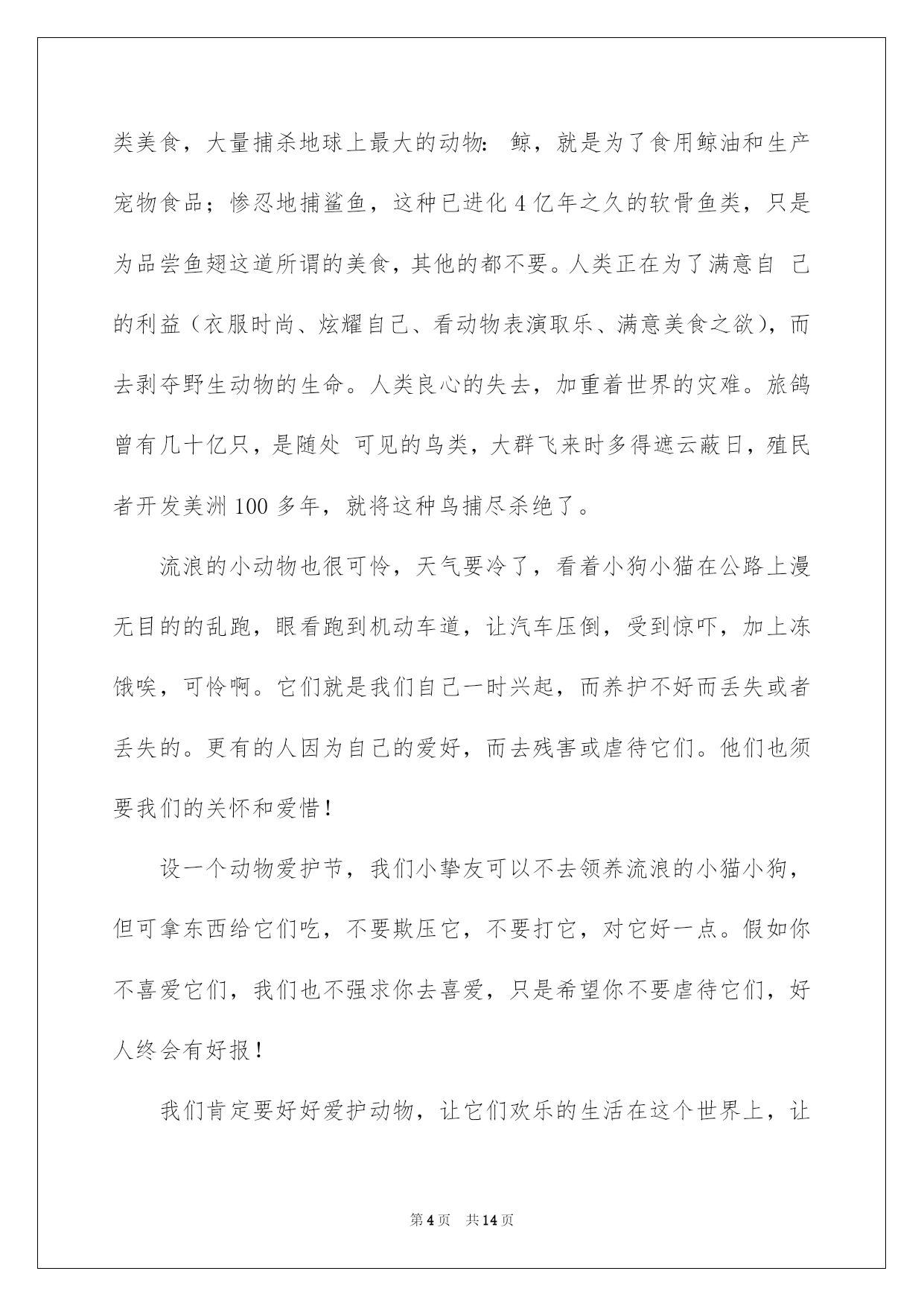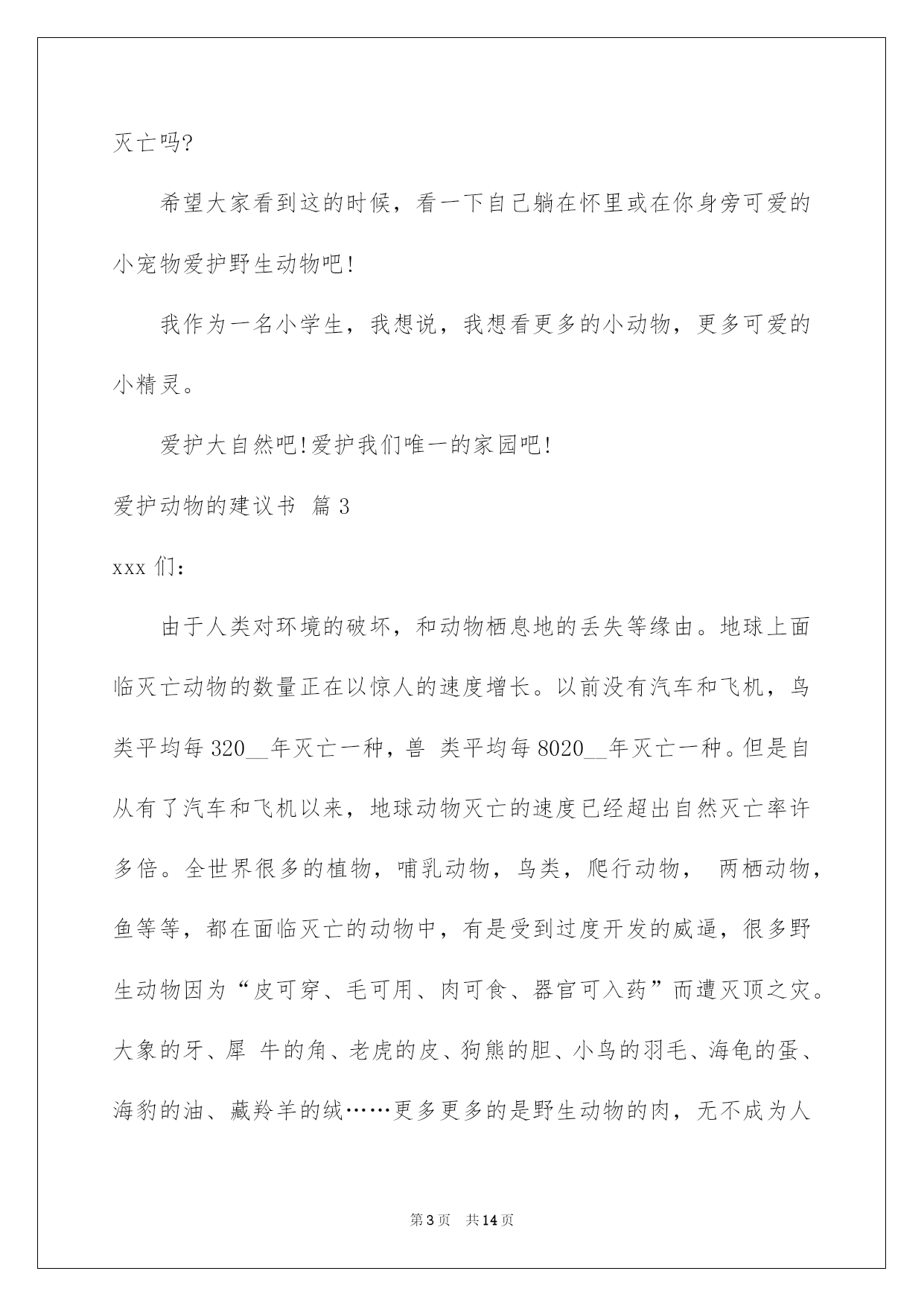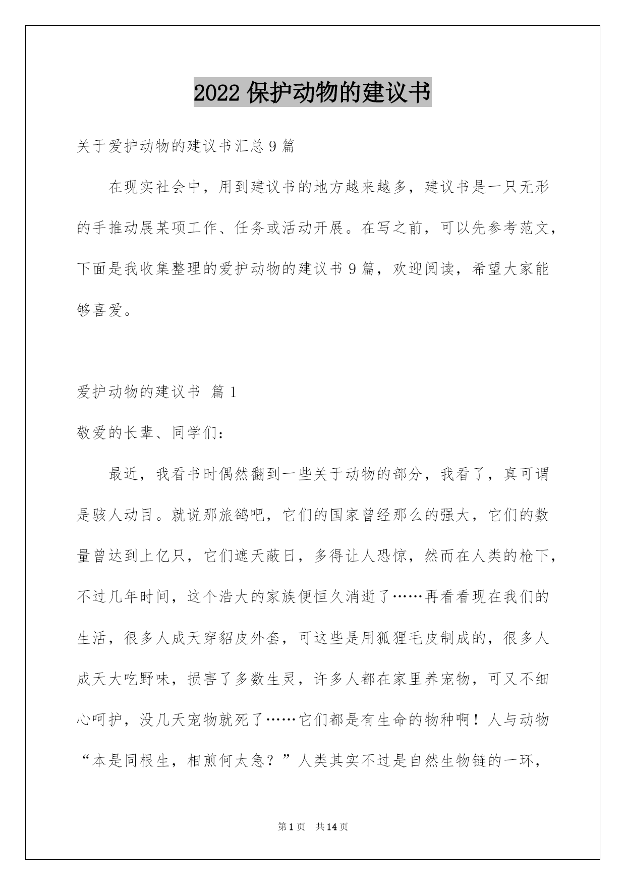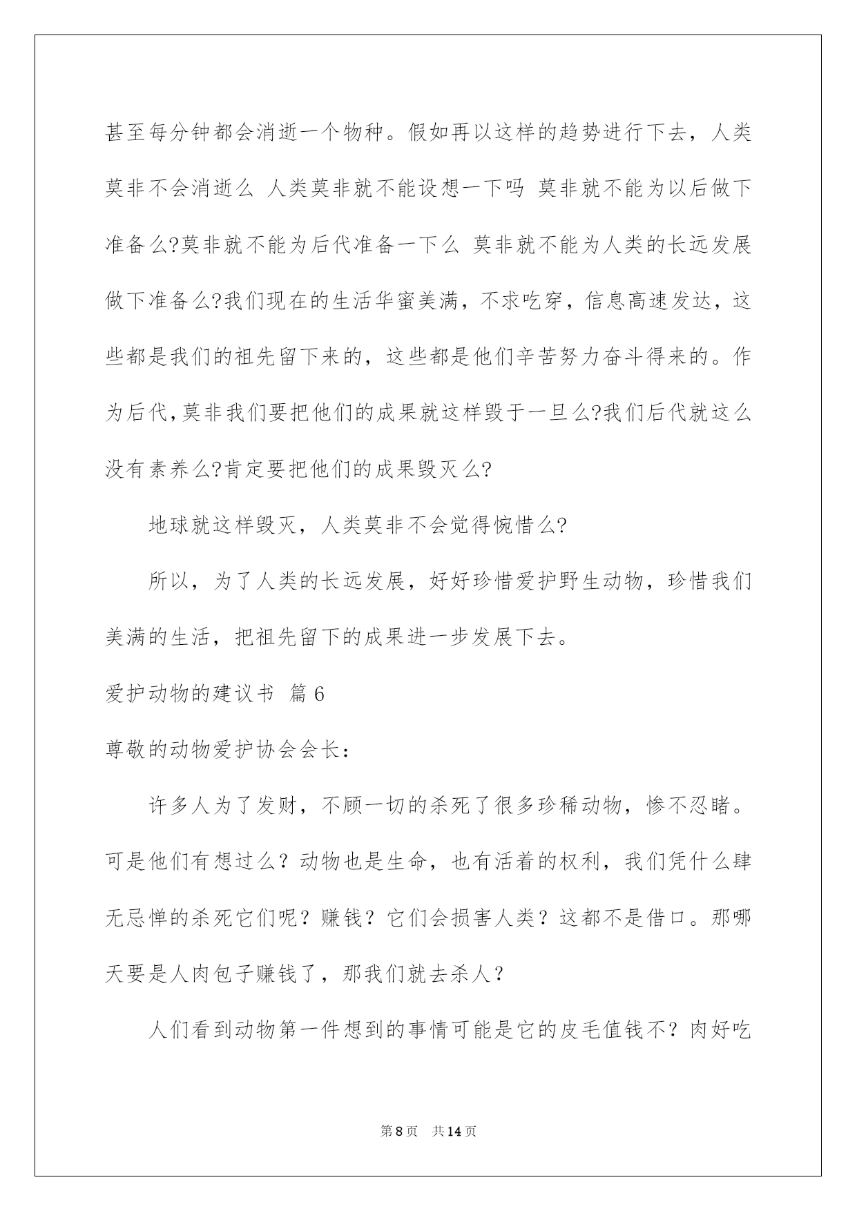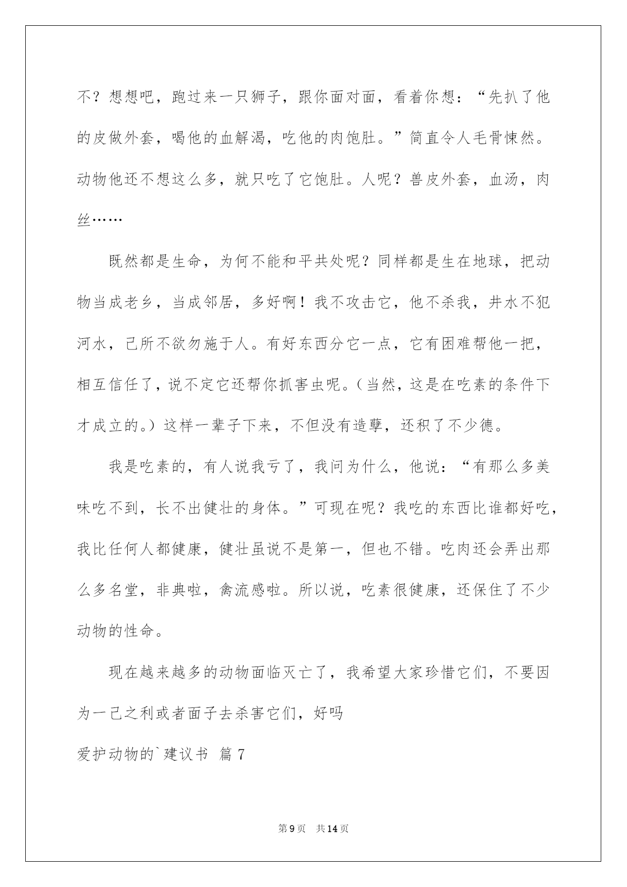 第PAGE\*Arabic\*MERGEFORMAT14页共NUMPAGES\*Arabic\*MERGEFORMAT14页第PAGE\*MERGEFORMAT14页共NUMPAGES\*MERGEFORMAT14页第PAGE\*MERGEFORMAT14页共NUMPAGES\*MERGEFORMAT14页第PAGE\*MERGEFORMAT14页共NUMPAGES\*MERGEFORMAT14页第PAGE\*MERGEFORMAT14页共NUMPAGES\*MERGEFORMAT14页第PAGE\*MERGEFORMAT14页共NUMPAGES\*MERGEFORMAT14页第PAGE\*MERGEFORMAT14页共NUMPAGES\*MERGEFORMAT14页第PAGE\*MERGEFORMAT14页共NUMPAGES\*MERGEFORMAT14页第PAGE\*MERGEFORMAT14页共NUMPAGES\*MERGEFORMAT14页第PAGE\*MERGEFORMAT14页共NUMPAGES\*MERGEFORMAT14页第PAGE\*MERGEFORMAT14页共NUMPAGES\*MERGEFORMAT14页2022保护动物的建议书关于爱护动物的建议书汇总9篇在现实社会中,用到建议书的地方越来越多,建议书是一只无形的手推动展某项工作、任务或活动开展。在写之前,可以先参考范文,下面是我收集整理的爱护动物的建议书9篇,欢迎阅读,希望大家能够喜爱。爱护动物的建议书篇1敬爱的长辈、同学们:最近,我看书时偶然翻到一些关于动物的部分,我看了,真可谓是骇人动目。就说那旅鹆吧,它们的国家曾经那么的强大,它们的数量曾达到上亿只,它们遮天蔽日,多得让人恐惊,然而在人类的枪下,不过几年时间,这个浩大的家族便恒久消逝了……再看看现在我们的生活,很多人成天穿貂皮外套,可这些是用狐狸毛皮制成的,很多人成天大吃野味,损害了多数生灵,许多人都在家里养宠物,可又不细心呵护,没几天宠物就死了……它们都是有生命的物种啊!人与动物“本是同根生,相煎何太急?”人类其实不过是自然生物链的一环,动物们才是构成它的主环,人们对动物的残杀使生态平衡遭到破坏。很久以前,撒哈拉沙漠是个大草原,但人类破坏了生态平衡,以致撒哈拉沙漠最终变成沙漠。生物链破坏不得,一环断,全链断,万物也将受到毁灭性地打击。因此,我希望大家能权衡利弊,不要去做无谓的杀生,克制自己,多去爱护动物,与动物和平共处,并将宠物放生,向更多的人宣扬爱护动物,向他们陈说利害关系,让他们也一起加入爱护动物的行动里来。人类总是一样事物消逝才懂得它的价值。总是事实给了我们当头一棒后,才知道自己错了,但愿这次人们能选择正确的方向。假如我们人类再不停止罪恶损害,那自然之母便会来惩处她的子女了。爱护动物的建议书篇2在百度上搜寻灭亡动物的名单的时候,我吓了一跳,映入眼帘的是一幕惊人的画面,在灭亡动物里光兽类就至少有50多种可爱的小动物。看一看这些可爱的小动物吧!莫非在数百年后,家里的小猫小狗小鱼小虾小兔子难到就会有渡渡鸟、白鳍豚一样的命运吗?莫非现在在饭桌上常见的猪、牛、羊就会灭亡吗?希望大家看到这的时候,看一下自己躺在怀里或在你身旁可爱的小宠物爱护野生动物吧!我作为一名小学生,我想说,我想看更多的小动物,更多可爱的小精灵。爱护大自然吧!爱护我们唯一的家园吧!爱护动物的建议书篇3xxx们:由于人类对环境的破坏,和动物栖息地的丢失等缘由。地球上面临灭亡动物的数量正在以惊人的速度增长。以前没有汽车和飞机,鸟类平均每320__年灭亡一种,兽类平均每8020__年灭亡一种。但是自从有了汽车和飞机以来,地球动物灭亡的速度已经超出自然灭亡率许多倍。全世界很多的植物,哺乳动物,鸟类,爬行动物,两栖动物,鱼等等,都在面临灭亡的动物中,有是受到过度开发的威逼,很多野生动物因为“皮可穿、毛可用、肉可食、器官可入药”而遭灭顶之灾。大象的牙、犀牛的角、老虎的皮、狗熊的胆、小鸟的羽毛、海龟的蛋、海豹的油、藏羚羊的绒……更多更多的是野生动物的肉,无不成为人类美食,大量捕杀地球上最大的动物:鲸,就是为了食用鲸油和生产宠物食品;惨忍地捕鲨鱼,这种已进化4亿年之久的软骨鱼类,只是为品尝鱼翅这道所谓的美食,其他的都不要。人类正在为了满意自己的利益(衣服时尚、炫耀自己、看动物表演取乐、满意美食之欲),而去剥夺野生动物的生命。人类良心的失去,加重着世界的灾难。旅鸽曾有几十亿只,是随处可见的鸟类,大群飞来时多得遮云蔽日,殖民者开发美洲100多年,就将这种鸟捕尽杀绝了。流浪的小动物也很可怜,天气要冷