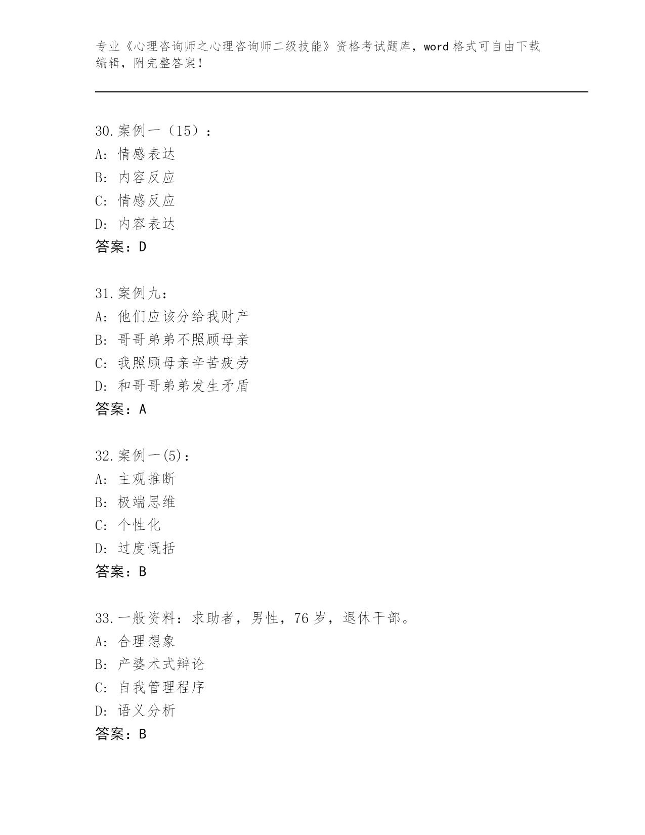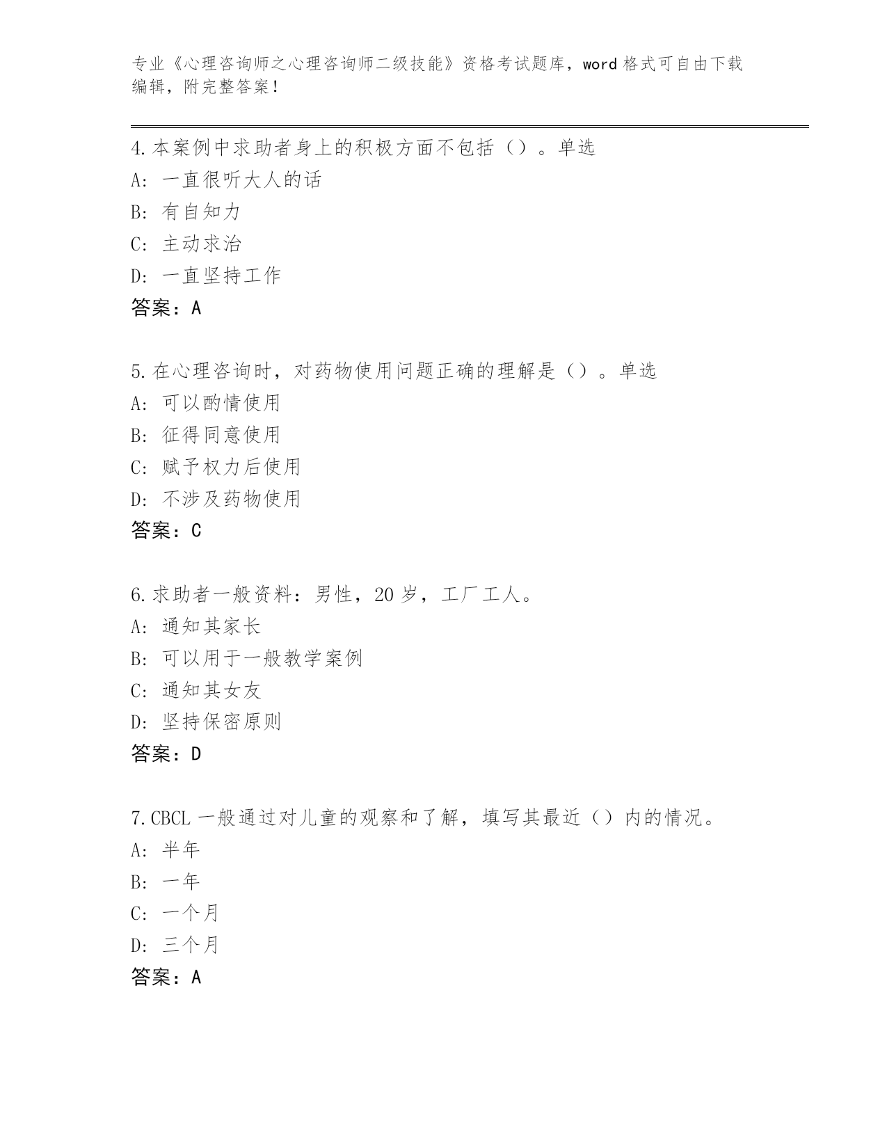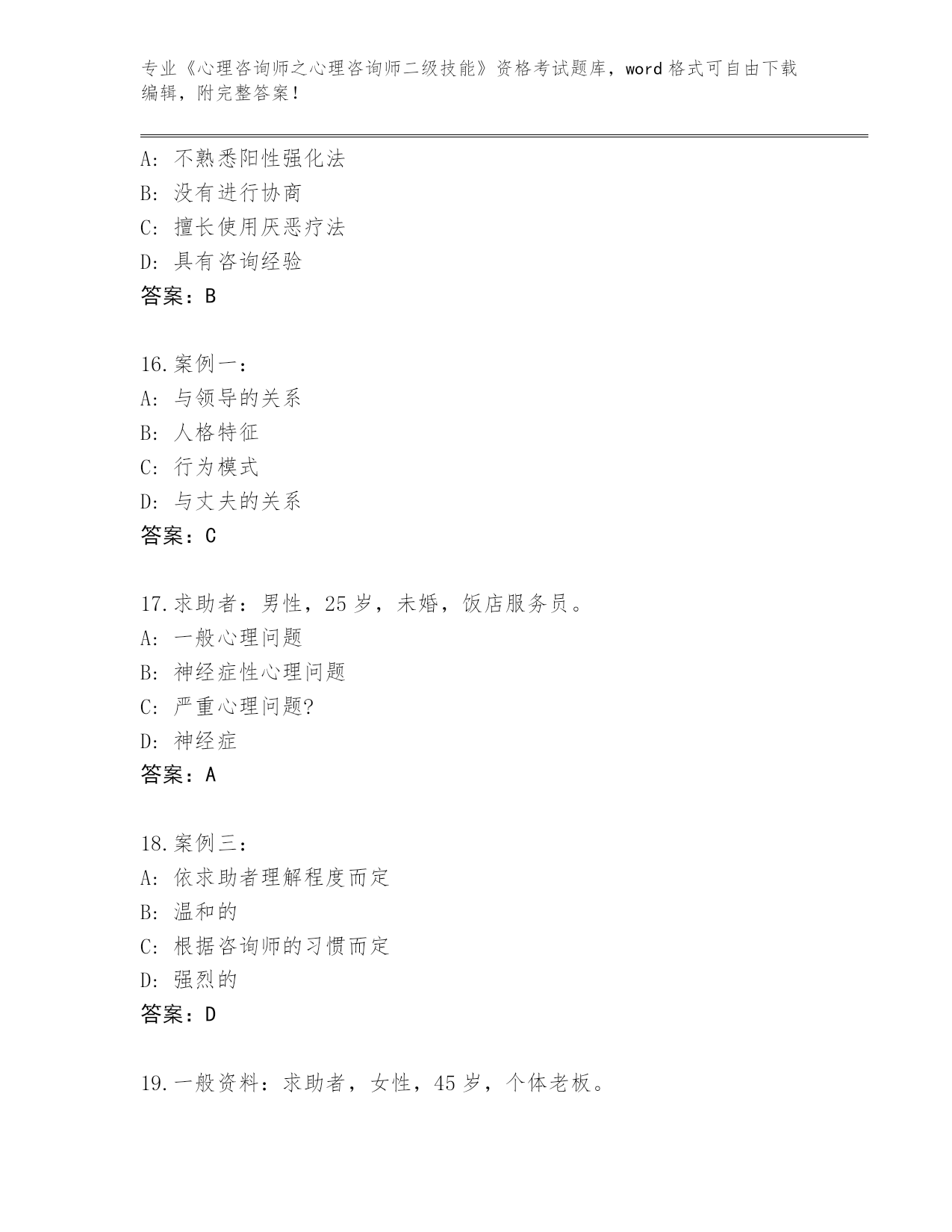 2024年安徽省《心理咨询师之心理咨询师二级技能》资格考试必背200题真题带答案(能力提升)