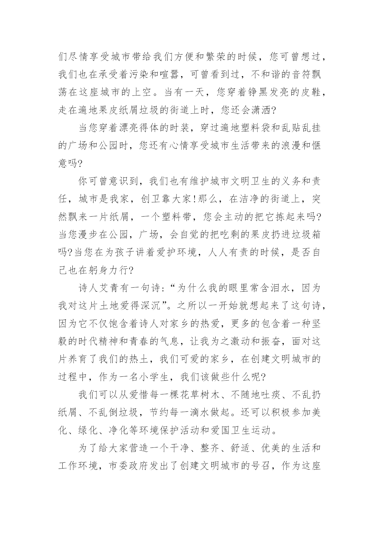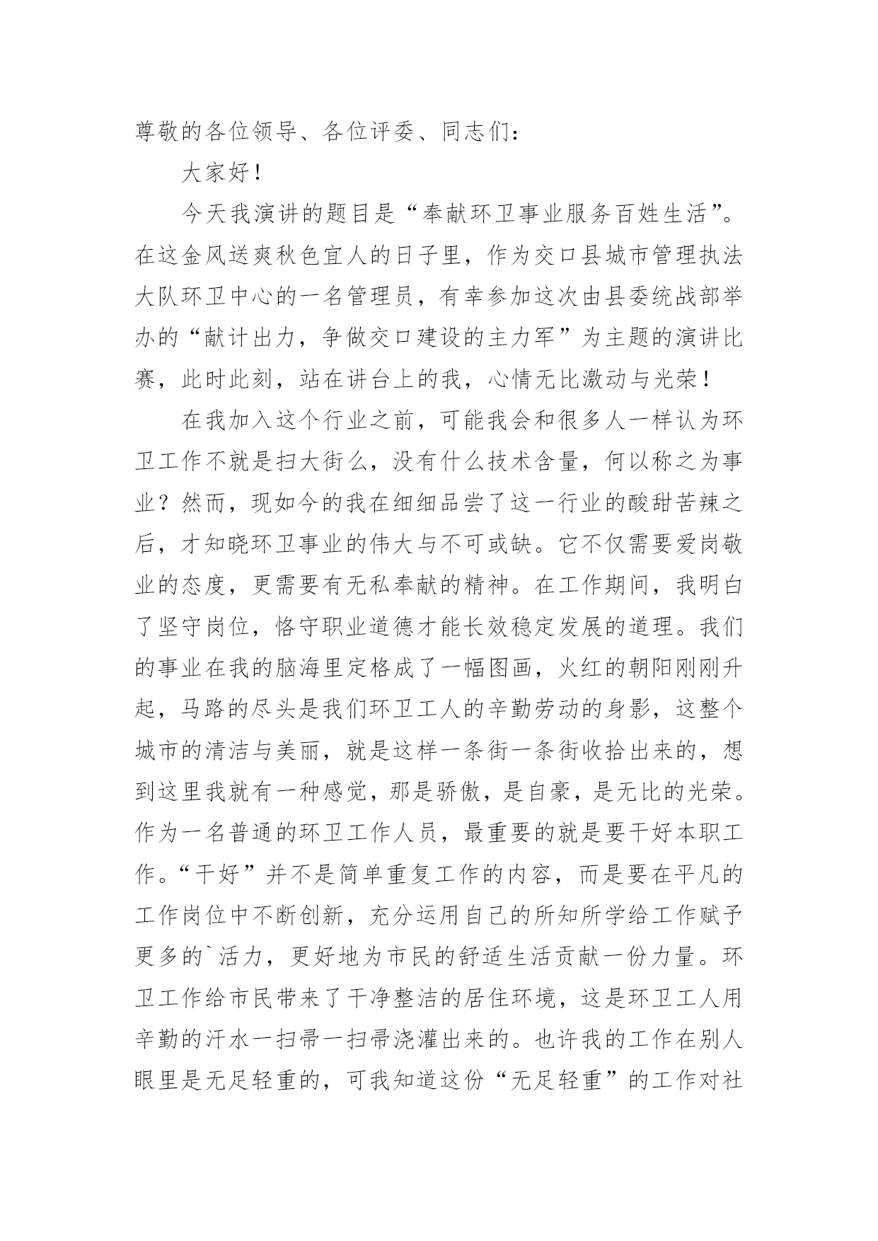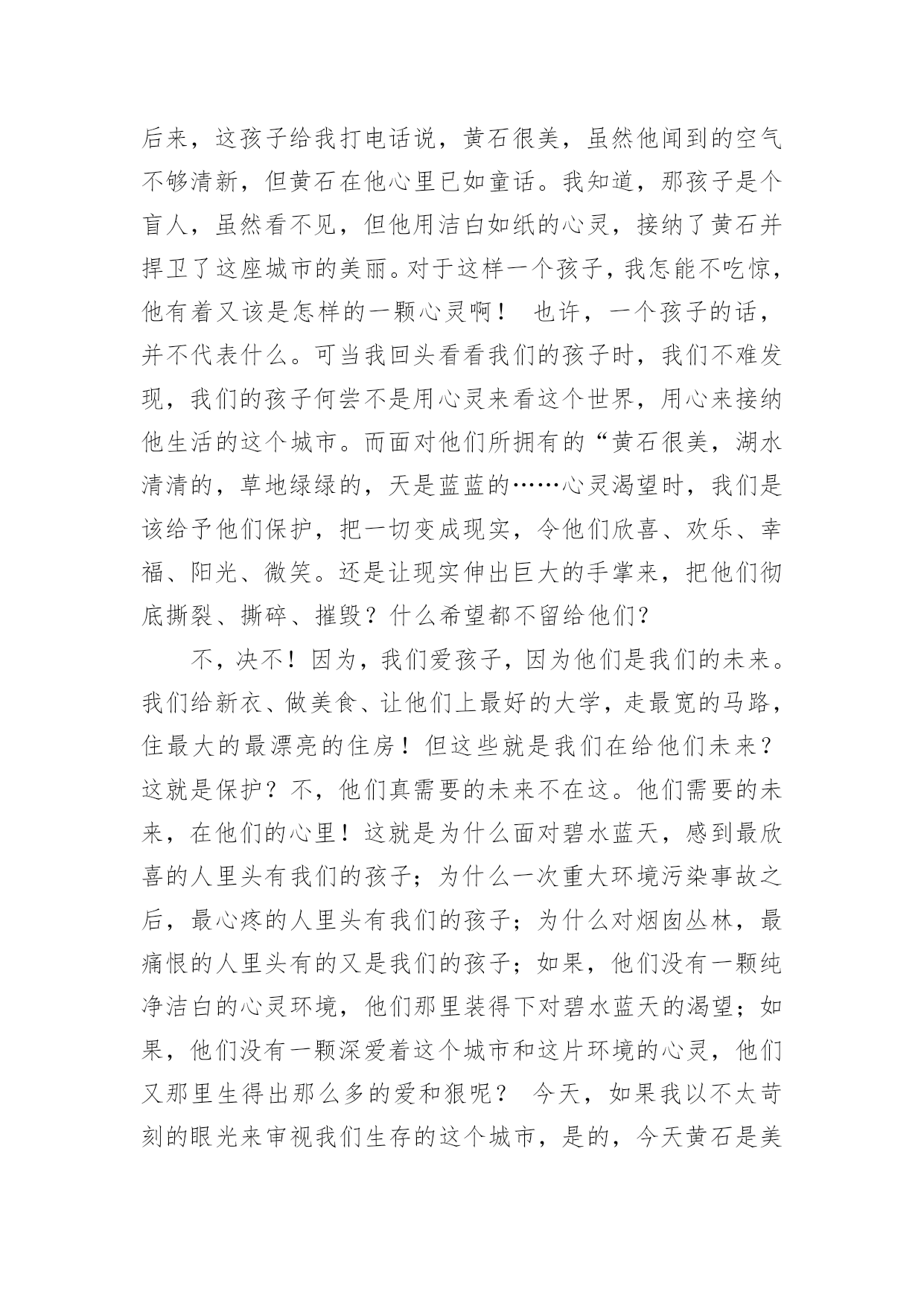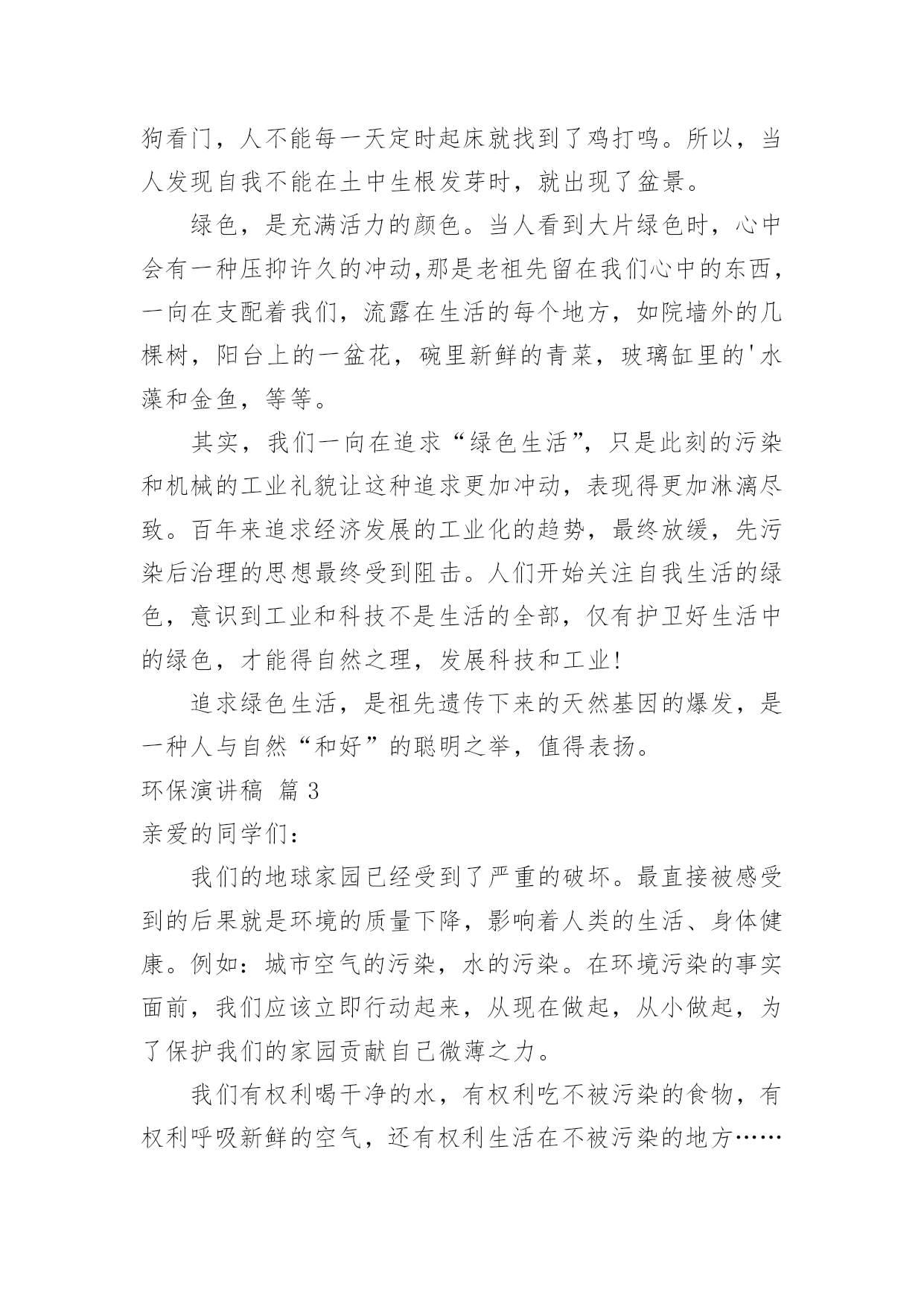 环保演讲稿【精选】环保演讲稿模板汇总8篇演讲稿具有观点鲜明,内容具有鼓动性的特点。在社会一步步向前发展的今天,需要使用演讲稿的事情愈发增多,你写演讲稿时总是没有新意?下面是小编整理的环保演讲稿10篇,供大家参考借鉴,希望可以帮助到有需要的朋友。环保演讲稿篇1老师们、同学们:放眼看去,只有凹凸不平的土地,大面积的树木被砍伐,成为人们生活上的木制品。人们为了自己的利益,使成群的动物流离失所,不得不漂泊他方。这不是一个错误的幻想,这是一个血腥的事实。曾经,世界上有大量的动植物灭绝了,有许多动植物濒临灭绝,这是为什么呢?这都是因为人类砍伐树木,破坏生态环境,这是根本原因。土地资源作为三大地质资源(矿产资源、水资源和土地资源)之一,是人类生产活动中最基本的资源和劳动对象。人类土地利用程度反映了人类文明的发展,但也直接破坏了土地资源,主要表现为不合理的开垦引起的水土流失、土地沙漠化、土地次生盐碱化和土壤污染,其中特别严重是的水土流失,这是当今世界面临的一个严重的危机。据估计,世界可耕地表土流失量每年约为230亿吨。有人认为酸雨是一场无声的危机,是历史上对我们造成的最严重的环境威胁,是一个看不见的敌人,这并非危言耸听。随着工业化和能源消耗的增加,酸性排放也在增加,它们进入空气,通过一系列过程形成酸雨。虽然自古就有赤潮,但随着工农业生产的迅速发展,水污染日益严重,赤潮也日益严重。自1933年第一次报告以来,截至1994年,我国发生了194次大规模红潮,其中60年代以前只有4次,90年代以后有157次。石油污染对水质和水生生物危害极大,浮在水面上的油可以迅速扩散,形成一层油膜,阻止水接触空气,减少水中的.溶解氧。石油含有多环芳烃致癌物质,经水生生物富集后对人体健康产生伤害。二氧化硫主要由燃烧煤炭、燃料油和其他含硫物质产生,其次是火山爆发和森林火灾等。二氧化硫对人体结膜和上呼吸道粘膜有强烈的刺激作用,可损伤呼吸器管,可引起支气管炎、肺炎,甚至肺水肿导致呼吸麻痹。短期暴露于二氧化硫浓度为0.5mg/m3的空气中,老年人或慢性患者死亡率增加;浓度超过0.25mg/m3,可使呼吸系统疾病患者病情加重。长期暴露于0.1毫克/立方米的空气中会加重呼吸道症状。此外,二氧化硫容易对金属材料、建筑及建筑、棉纺、皮革和纸制品造成腐蚀、剥落、褪色等破坏。它还能使植物的叶子变黄,甚至死亡。同学们,保护环境是我们每个人的责任,让我们从现在做起,从自身做起,从点滴小事做起,切实保护我们的地球家园!环保演讲稿篇2尊敬的老师,亲爱的同学:大家下午好:此刻,人们最终明白,躺在草地上睡觉远比在公交车上打盹舒服,而烟囱里冒出的黑烟遮挡出的阴影也没有大树下的阴凉凉爽。绿色,才是生活的本色。人,只是自然界的一种动物。人的祖先是猿猴,那是生活在森林里的动物,身边到处都是绿色,吃树叶,住树杈,进化到此刻的人时,自然还保留着对绿色原始热爱的基因。在我看来,此刻人追求绿色生活,更像是返祖现象,在高楼林立的城里住久了,想到森林里住几天,所以,许多人热衷于野营、野炊便顺理成章了。人在吃腻了大鱼大肉之后,发现蔬菜竟是那样可口,于是人真的像动物一样,追求各种鲜嫩的蔬果。更有越来越多的人开始生吃食物,由生菜到生肉,就像祖先那样茹毛饮血,生撕活拽。动物的本性在人类身上一览无遗,人似乎又过上了原始生活,叫上群居的哥们,去找鲜果,去觅生肉……找个开阔的地方挖个坑,把自我埋进去,吃点水,然后直愣愣站上半天,可能只会腰酸、背疼和脚麻,人不是植物,不明白植物在土中的自在和满足,只明白自我在土中疼痛难忍。所以,人还是应当回到房子里,种几盆花,在院子里或阳台上留一些草。我们不能生活在土里,就让它们替我们生活在土里。人总是聪明的,自我做不到的事总会让别的东西替我们做。人耕不动地就找到了牛,人夜里得休息就找到了狗看门,人不能每一天定时起床就找到了鸡打鸣。所以,当人发现自我不能在土中生根发芽时,就出现了盆景。绿色,是充满活力的颜色。当人看到大片绿色时,心中会有一种压抑许久的冲动,那是老祖先留在我们心中的东西,一向在支配着我们,流露在生活的每个地方,如院墙外的几棵树,阳台上的一盆花,碗里新鲜的青菜,玻璃缸里的'水藻和金鱼,等等。其实,我们一向在追求“绿色生活”,只是此刻的污染和机械的工业礼貌让这种追求更加冲动,表现得更加淋漓尽致。百年来追求经济发展的工业化的趋势,最终放缓,先污染后治理的思想最终受到阻击。人们开始关注自我生活的绿色,意识到工业和科技不是生活的全部,仅有护卫好生活中的绿色,才能得自然之理,发展科技和工业!追求绿色生活,是祖先遗传下来的天然基因的爆发,是一种人与自然“和好”的聪明之举,值得表扬。环保演讲稿篇3亲爱的同学们:我们的地球家园已经受到了严重的破坏。最直接被感受到的后果就是环境的质量下降,影响着人类的生