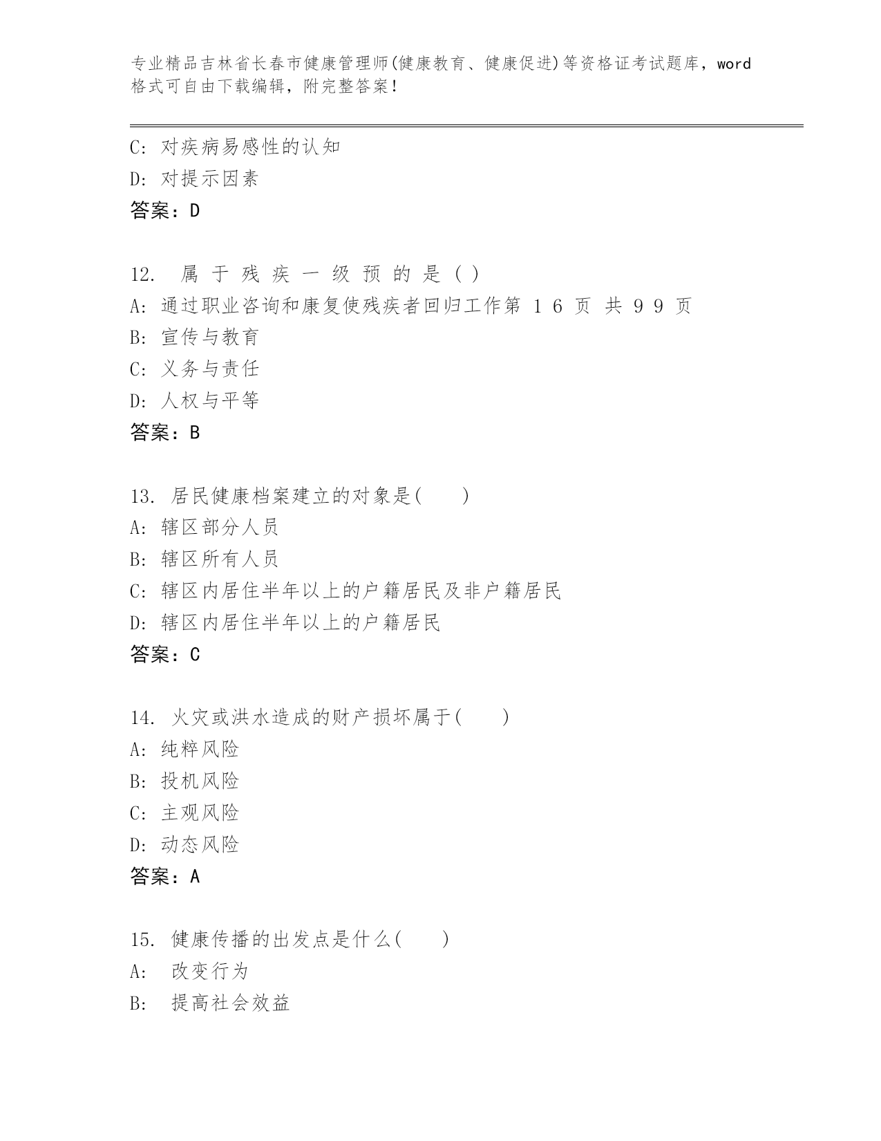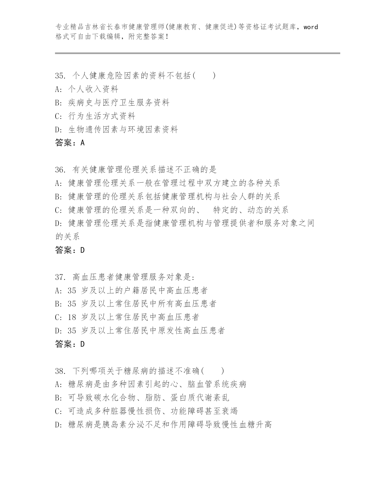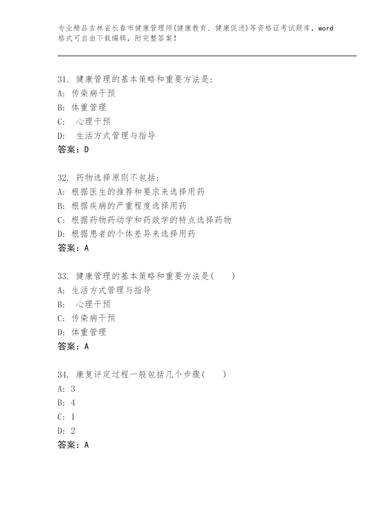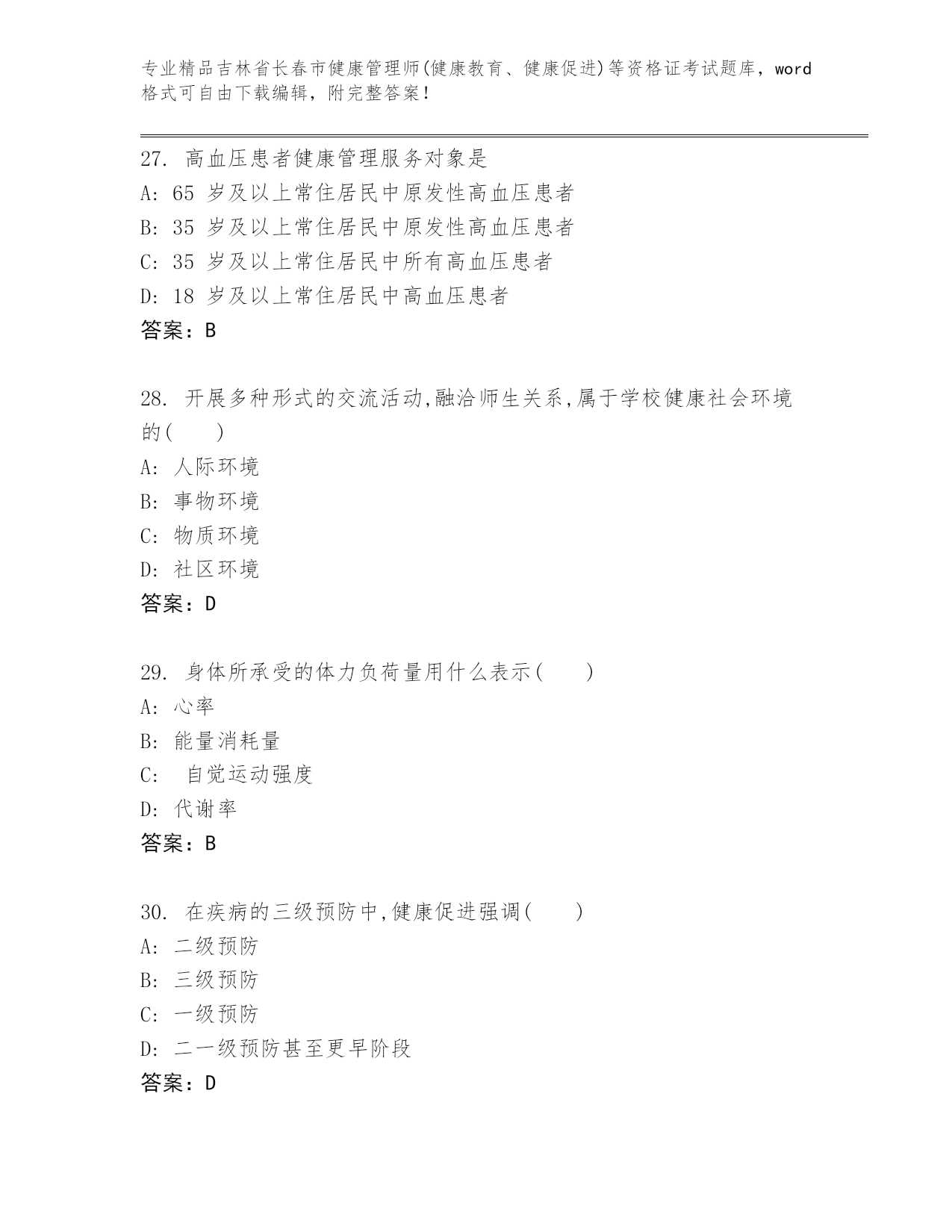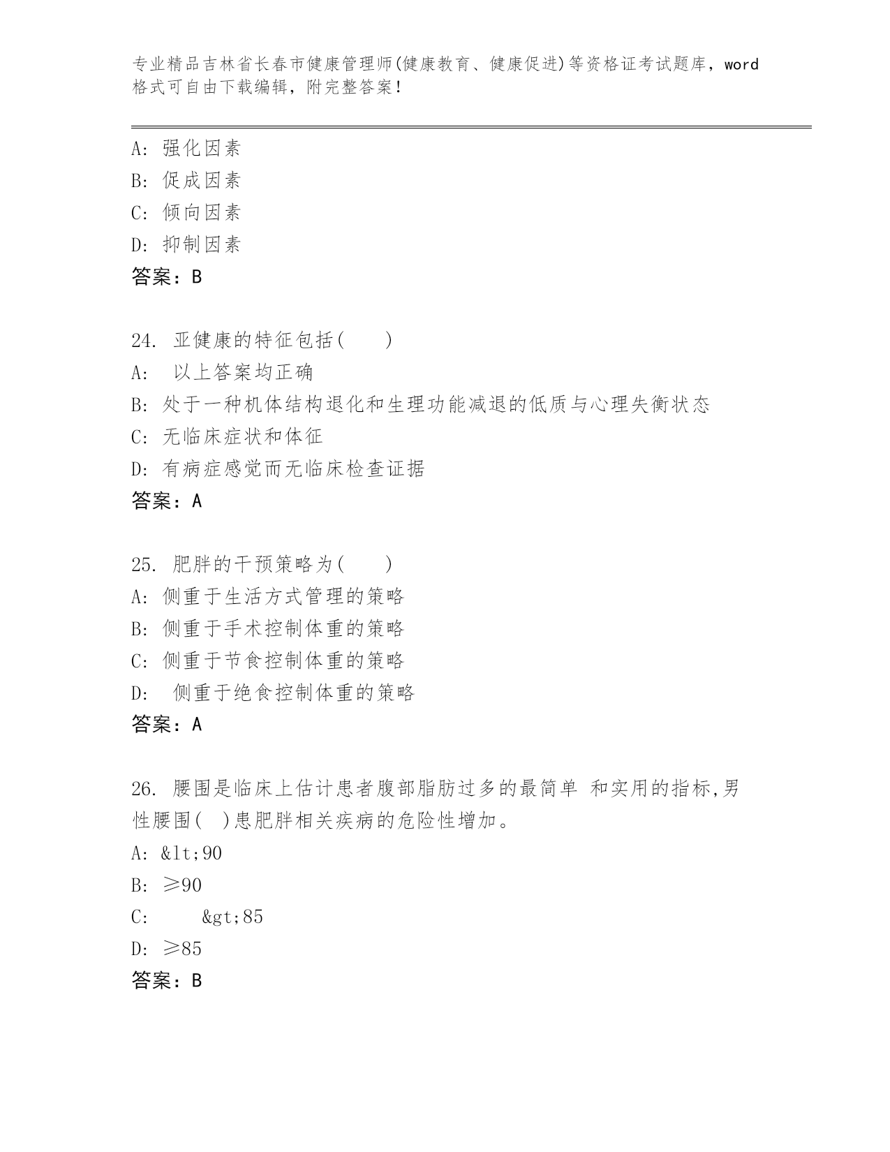 精心整理吉林省长春市健康管理师(健康教育、健康促进)等资格证考试通用题库(培优A卷)