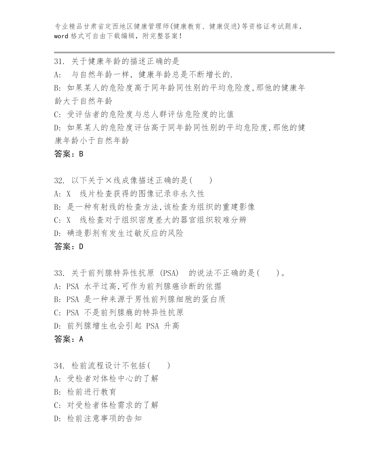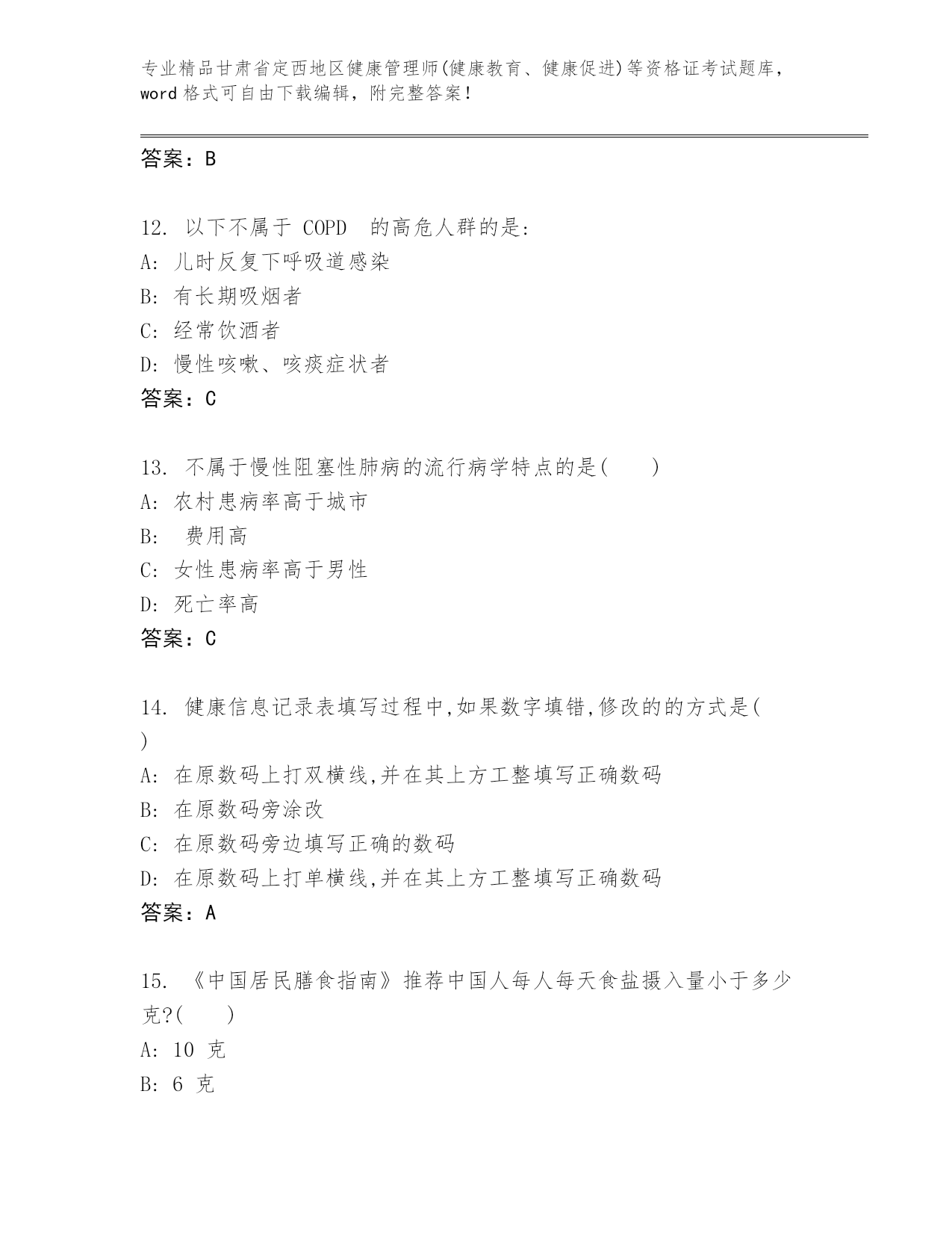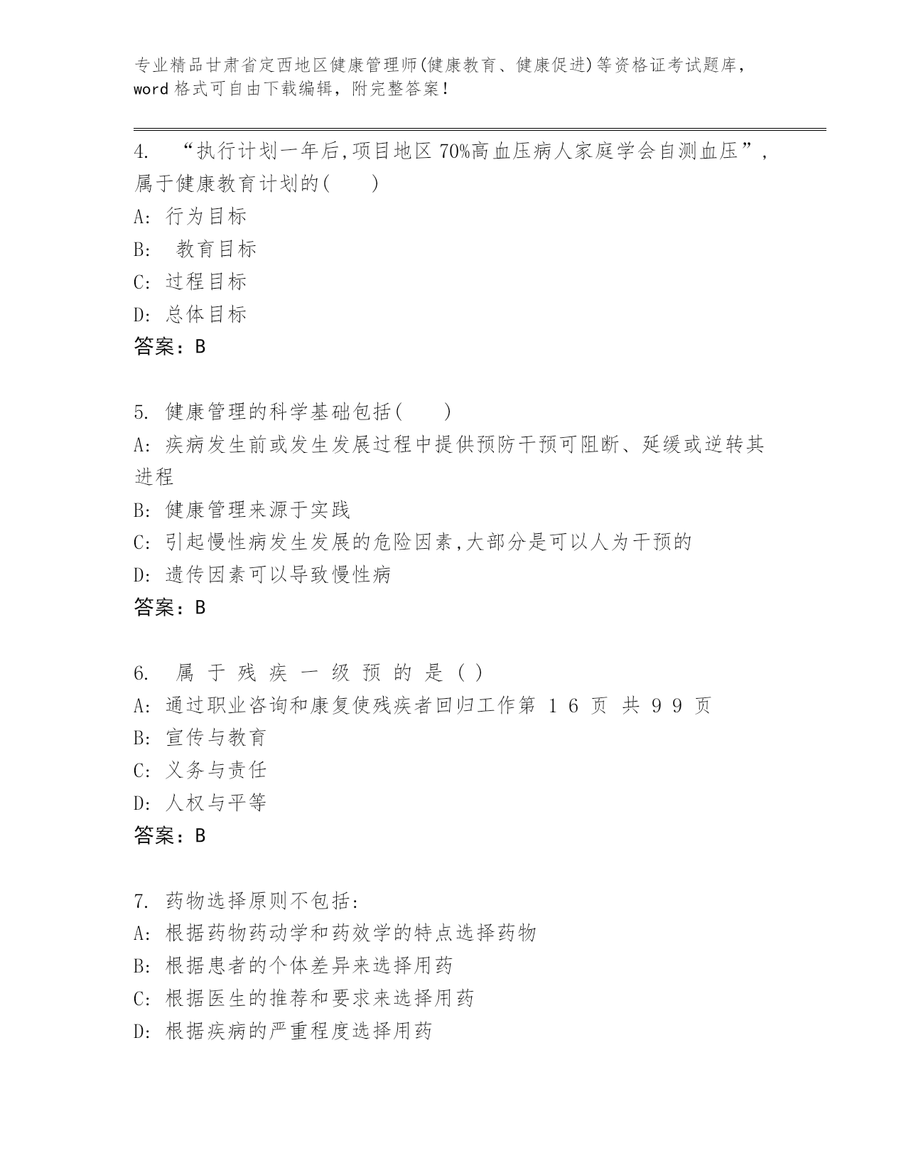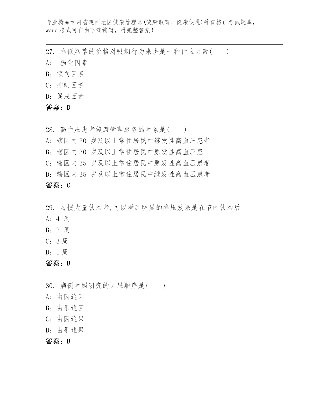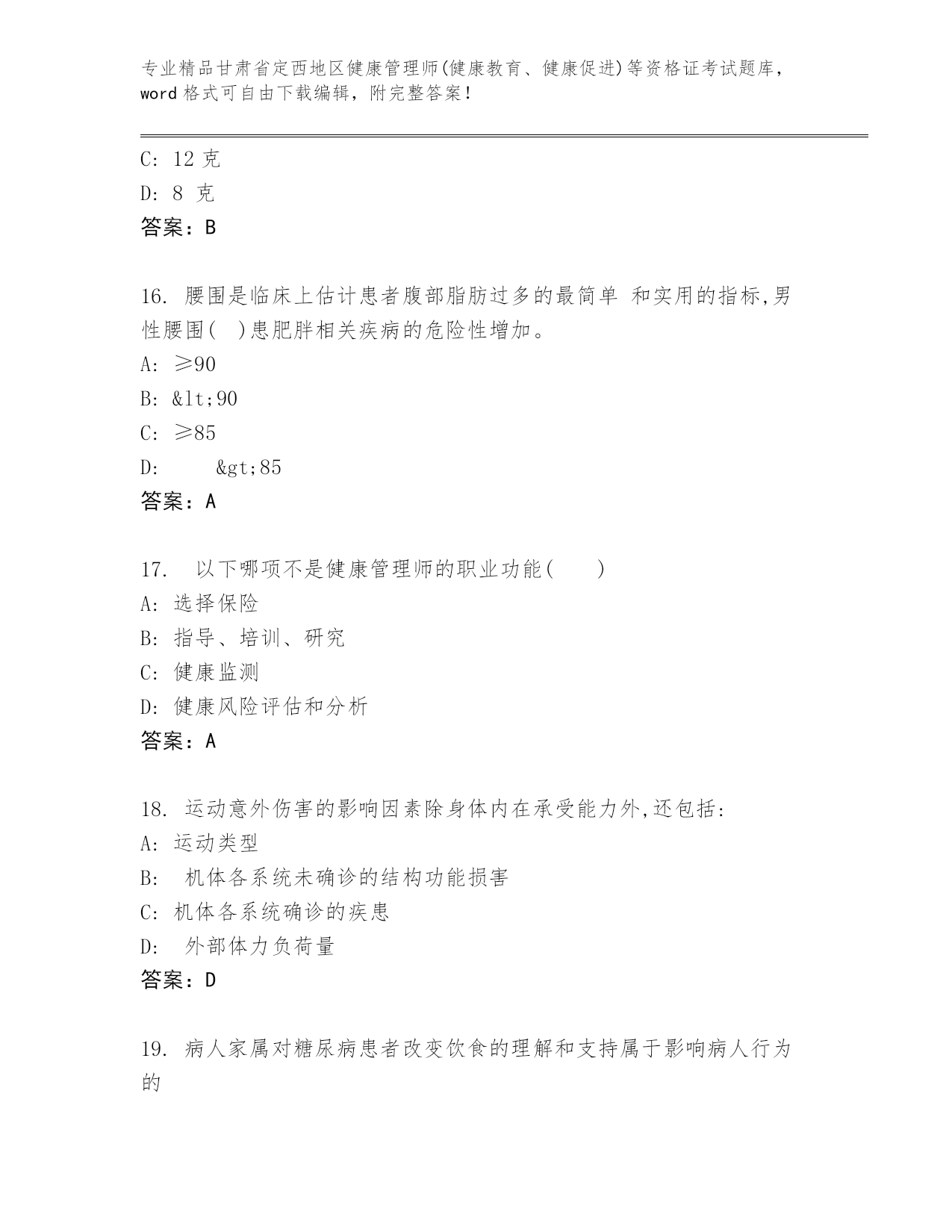 优选甘肃省定西地区健康管理师(健康教育、健康促进)等资格证考试真题精品含答案