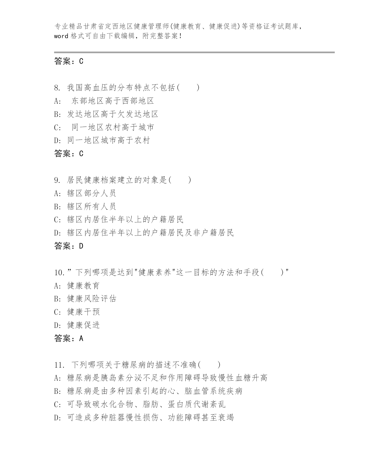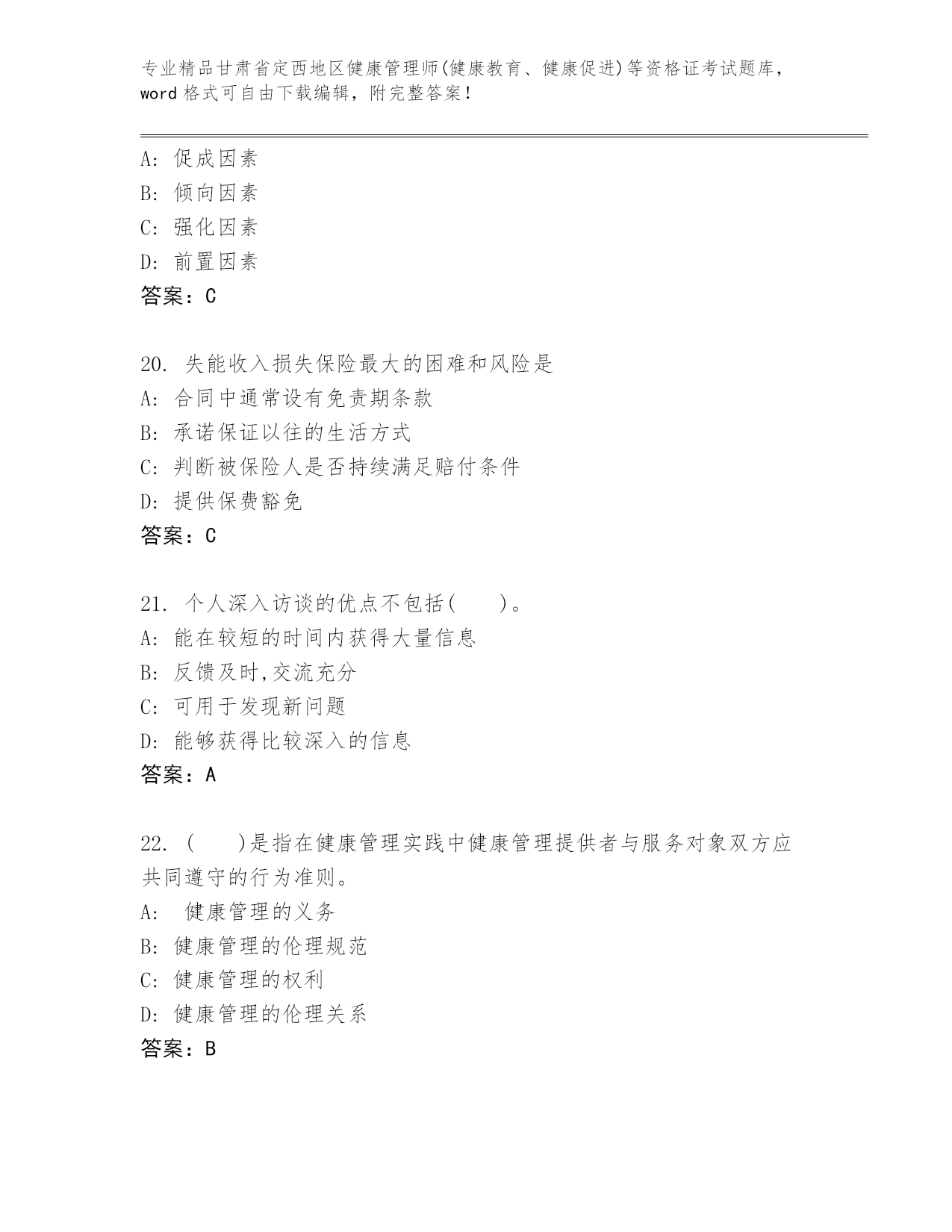 优选甘肃省定西地区健康管理师(健康教育、健康促进)等资格证考试真题精品含答案.docx