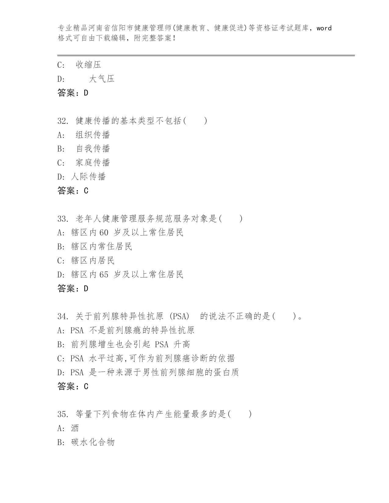 2024年河南省信阳市健康管理师(健康教育、健康促进)等资格证考试带答案(巩固).docx