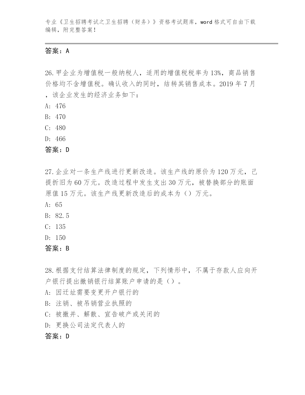 湖南省古丈县整理《卫生招聘考试之卫生招聘(财务)》资格考试完整题库答案