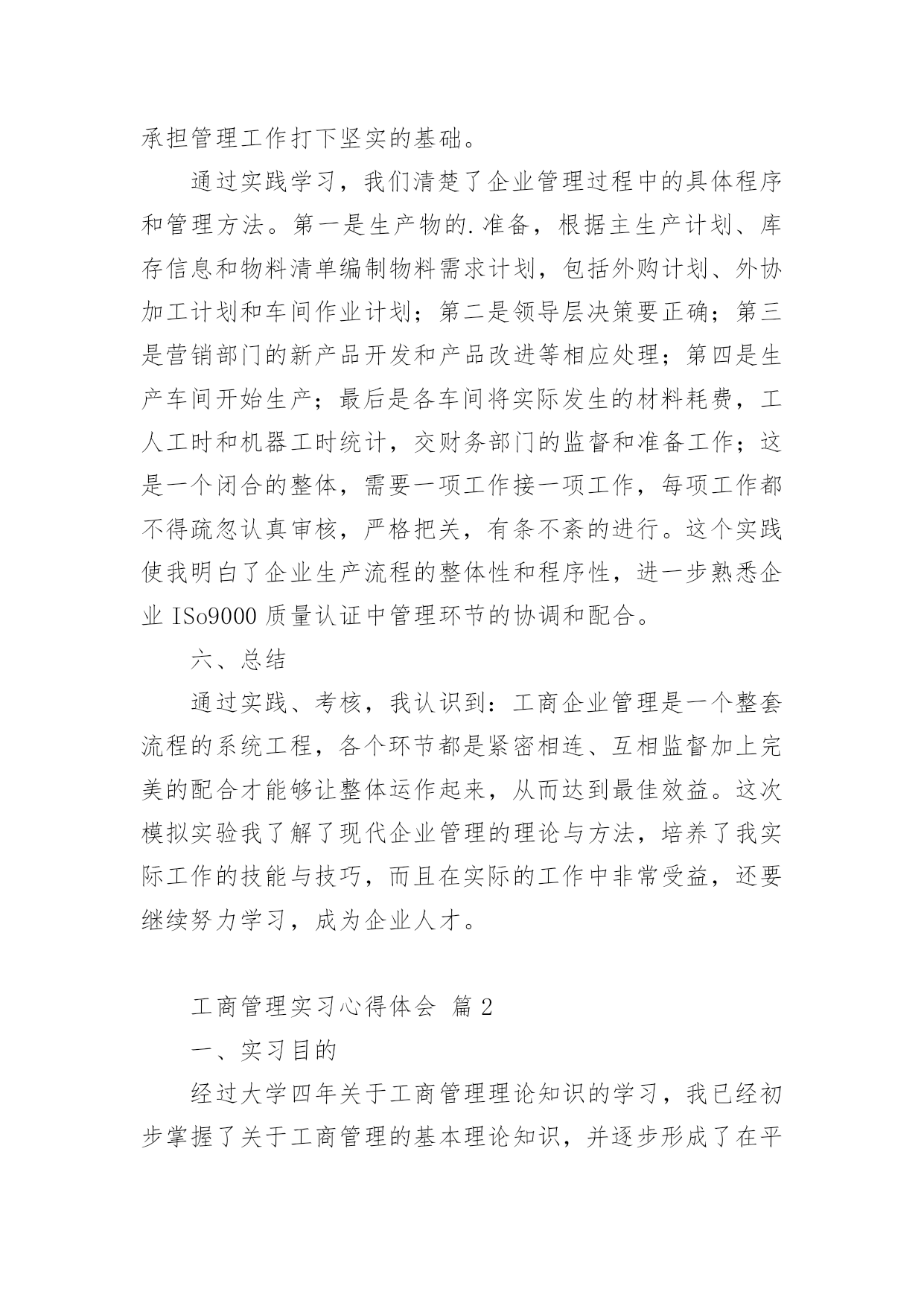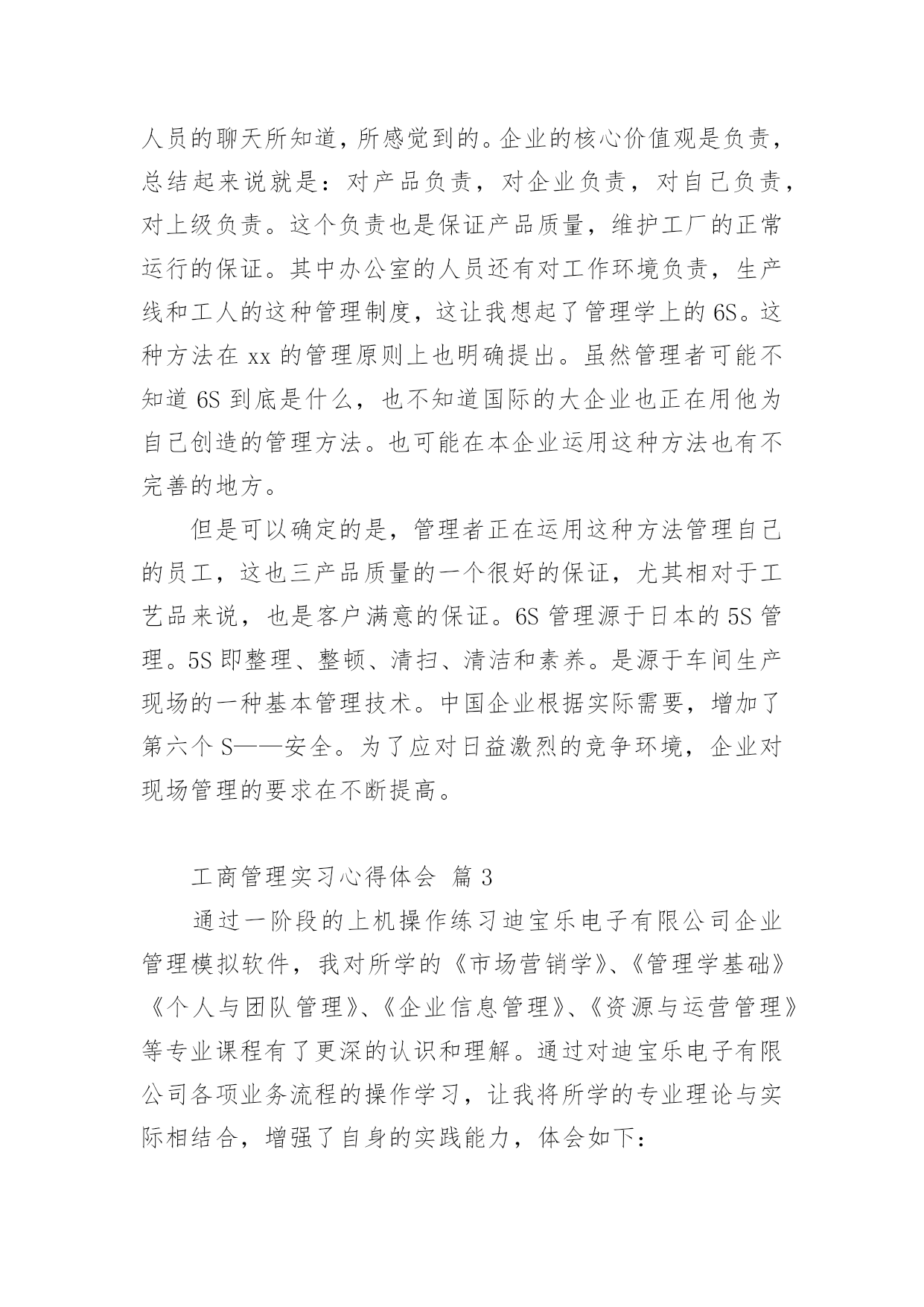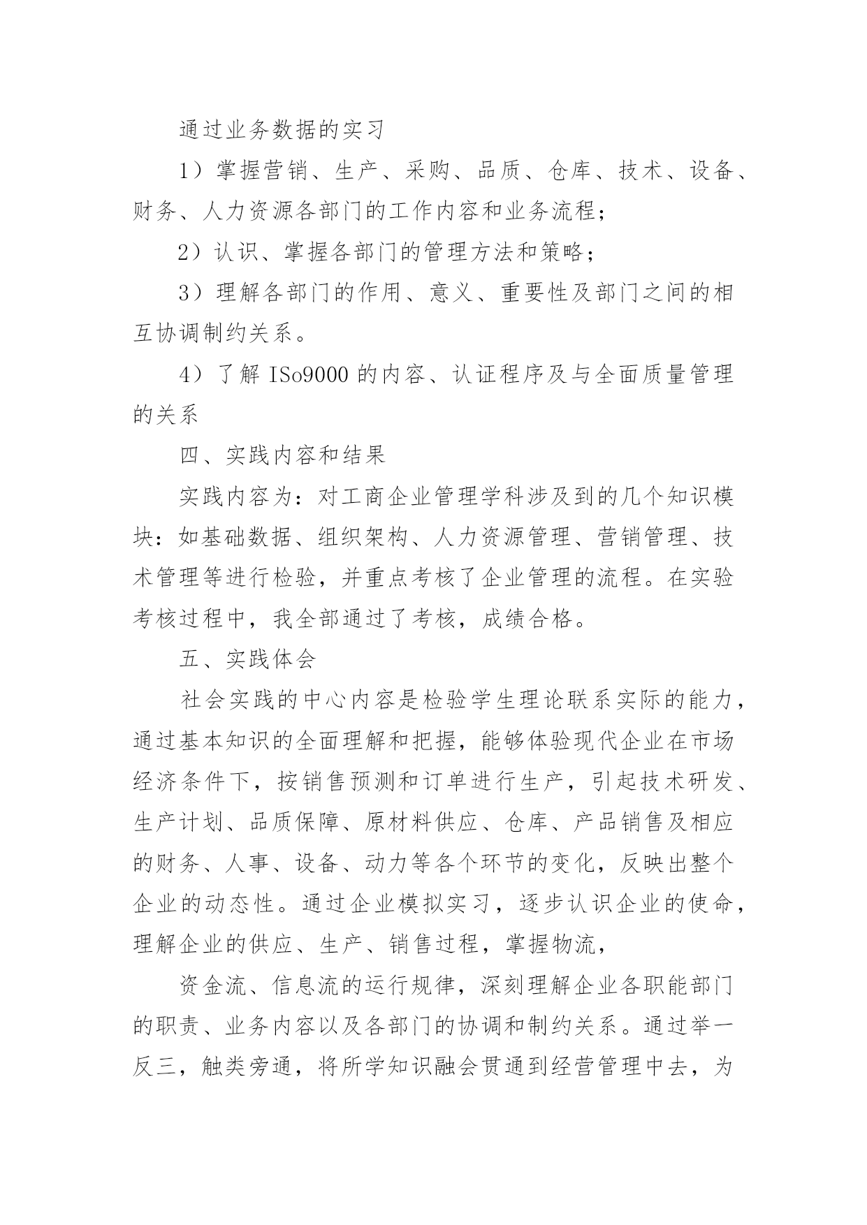 工商管理实习心得体会有了一些收获以后,通常就可以写一篇心得体会将其记下来,这么做能够提升我们的书面表达能力。那么心得体会该怎么写?想必这让大家都很苦恼吧,以下是小编为大家收集的工商管理实习心得体会,仅供参考,希望能够帮助到大家。工商管理实习心得体会篇1我参加了学校组织的工商管理专业企业管理模拟实验,通过实验,我对模拟实践中企业营销技术、采购、生产、质量、仓库、财务、人事等各个环节的实际操作有了较好的认识。一、实践时间20xx年x月18—19日上午8:30—————下午16:00二、实践地点北京电大市供销总社分校工商管理专业企业管理模拟实验室三、实践要求通过基础数据的实习1)掌握基础数据的来源以及相关获取的手段、方法;2)理解基础数据的作用、意义、重要性;3)了解基础数据与业务管理之间的关系,基础数据的表现形式以及录入方式。通过业务数据的实习1)掌握营销、生产、采购、品质、仓库、技术、设备、财务、人力资源各部门的工作内容和业务流程;2)认识、掌握各部门的管理方法和策略;3)理解各部门的作用、意义、重要性及部门之间的相互协调制约关系。4)了解ISo9000的内容、认证程序及与全面质量管理的关系四、实践内容和结果实践内容为:对工商企业管理学科涉及到的几个知识模块:如基础数据、组织架构、人力资源管理、营销管理、技术管理等进行检验,并重点考核了企业管理的流程。在实验考核过程中,我全部通过了考核,成绩合格。五、实践体会社会实践的中心内容是检验学生理论联系实际的能力,通过基本知识的全面理解和把握,能够体验现代企业在市场经济条件下,按销售预测和订单进行生产,引起技术研发、生产计划、品质保障、原材料供应、仓库、产品销售及相应的财务、人事、设备、动力等各个环节的变化,反映出整个企业的动态性。通过企业模拟实习,逐步认识企业的使命,理解企业的供应、生产、销售过程,掌握物流,资金流、信息流的运行规律,深刻理解企业各职能部门的职责、业务内容以及各部门的协调和制约关系。通过举一反三,触类旁通,将所学知识融会贯通到经营管理中去,为承担管理工作打下坚实的基础。通过实践学习,我们清楚了企业管理过程中的具体程序和管理方法。第一是生产物的.准备,根据主生产计划、库存信息和物料清单编制物料需求计划,包括外购计划、外协加工计划和车间作业计划;第二是领导层决策要正确;第三是营销部门的新产品开发和产品改进等相应处理;第四是生产车间开始生产;最后是各车间将实际发生的材料耗费,工人工时和机器工时统计,交财务部门的监督和准备工作;这是一个闭合的整体,需要一项工作接一项工作,每项工作都不得疏忽认真审核,严格把关,有条不紊的进行。这个实践使我明白了企业生产流程的整体性和程序性,进一步熟悉企业ISo9000质量认证中管理环节的协调和配合。六、总结通过实践、考核,我认识到:工商企业管理是一个整套流程的系统工程,各个环节都是紧密相连、互相监督加上完美的配合才能够让整体运作起来,从而达到最佳效益。这次模拟实验我了解了现代企业管理的理论与方法,培养了我实际工作的技能与技巧,而且在实际的工作中非常受益,还要继续努力学习,成为企业人才。工商管理实习心得体会篇2一、实习目的经过大学四年关于工商管理理论知识的学习,我已经初步掌握了关于工商管理的基本理论知识,并逐步形成了在平常生活中有意识的应用所学知识解决平时所碰到的生活问题。对专业知识的全面了解,使得我意识到工商管理专业的特点,优势以及劣势。也全面的了解到在社会主义市场经济的形势下,以各企业要获得良好的发展所要具备的基本素质。不过这所有一切的感触和认识,都仅仅停留在理论认识的表面上,如果要从实际生活中探寻真理,把握规律,就不可避免的要从实践中获得经验,掌握一些基于理论又高于理论的实践应用,使自己的知识更上一层楼。所以今年的xx月xx日开始,我就开始了在xx县xx厂的实习经历。回顾实习生活,感触是很深的,收获是丰硕的。二、实习相关xx厂地处xx县,在实习期间,我采用了看、问、做等方式。分别在生产一线,公司人事部,财务部,市场部,以及经理办公室进行过短暂的近一个月的毕业实习。三、实习经历1、背景。我所实习的xx县xx厂是xx的一家小型的工艺品厂,主要生产仿真类工艺品、装饰品、工艺礼品、树脂类工艺品等小商品。产品选料精良,造型新颖独特,形象华美玲珑剔透,颇有特色,具有较高的欣赏价值。由于地处沿海。其产品很大部分为出口产品。这家外向型独资民营企业,创建于xx年,总厂占地面积xx平方米,建筑面积xx多平方米,拥有资产xx万元,年生产能力xx万元,年创汇xx余万美元,创税xx余万元人民币,全厂拥有职工xx余人,其中管理人员和技术人员占据xx%。xx厂下设两个分厂,多家代理商遍布全国各地。xx厂虽然是一家小型的工厂。但工厂充分利用地方资源优势和现有的.技术实力