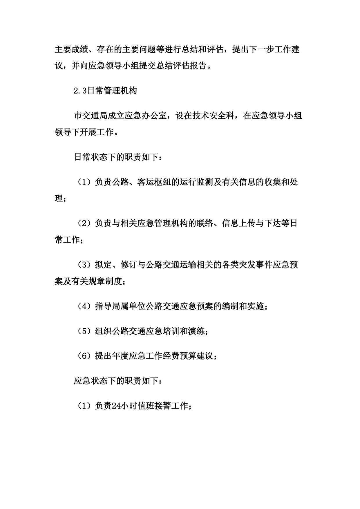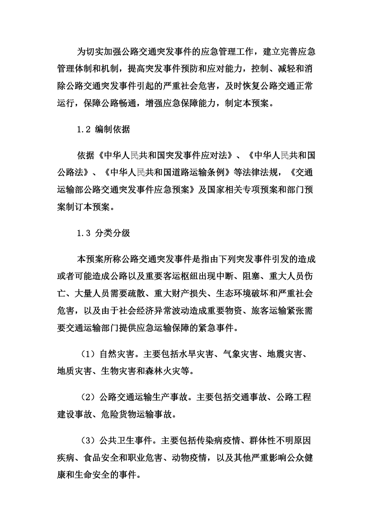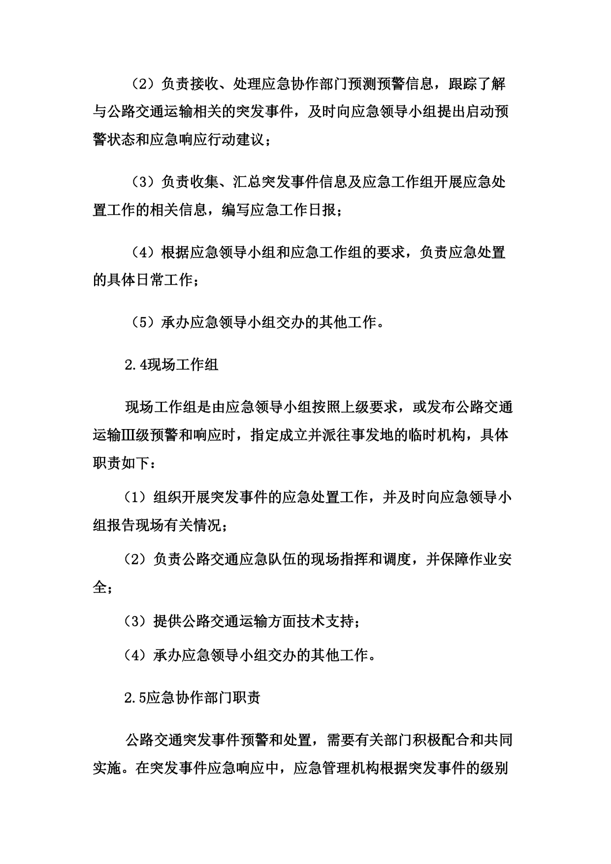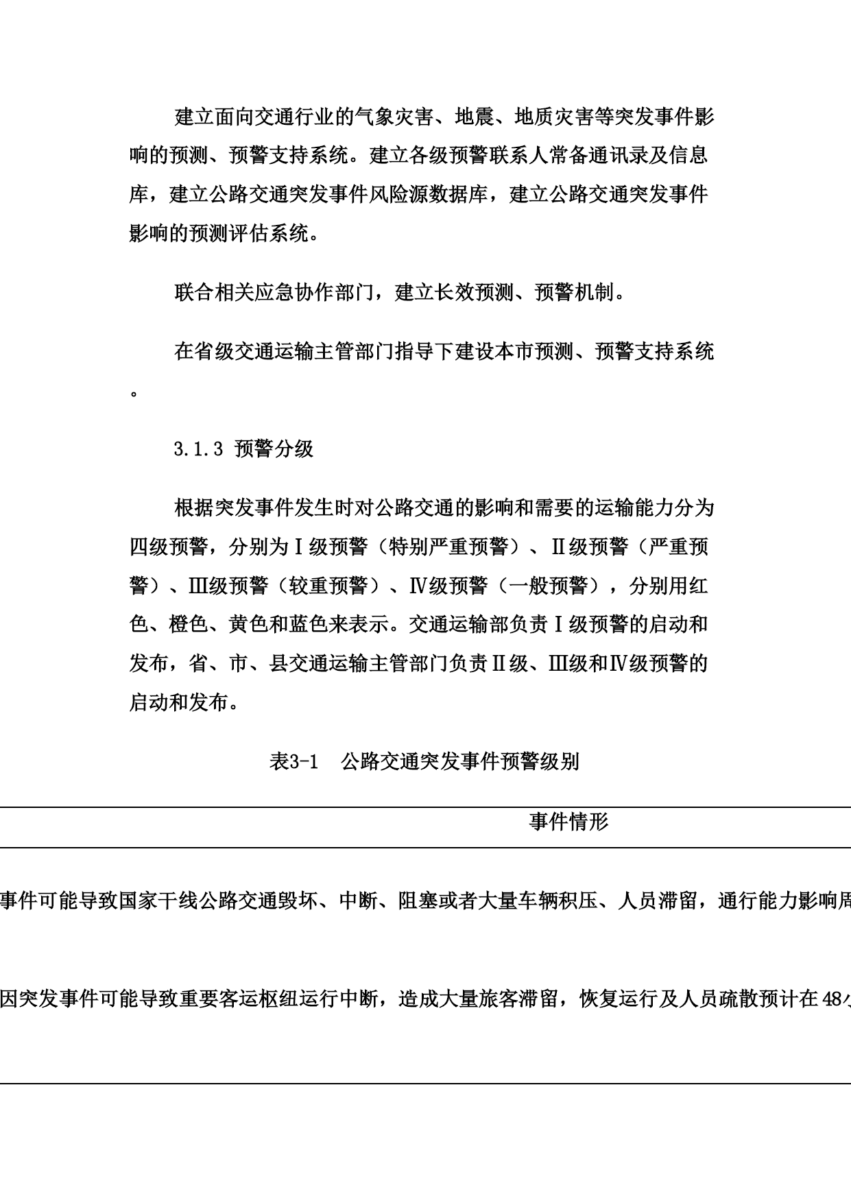 关于印发《洛阳市交通局公路交通突发事件应急预案》的通知各县(市、区)交通局,局属有关单位:根据中华人民共和国交通运输部《公路交通突发事件应急预案》(交公路发〔2009〕226号)和上级的要求,市交通局制订了《洛阳市交通局公路交通突发事件应急预案》,现印发给你们,请遵照执行。附件:《洛阳市交通局公路交通突发事件应急预案》洛阳市交通局二○○九年十二月二十日洛阳市交通局公路交通突发事件应急预案1、总则1.1编制目的为切实加强公路交通突发事件的应急管理工作,建立完善应急管理体制和机制,提高突发事件预防和应对能力,控制、减轻和消除公路交通突发事件引起的严重社会危害,及时恢复公路交通正常运行,保障公路畅通,增强应急保障能力,制定本预案。1.2编制依据依据《中华人民共和国突发事件应对法》、《中华人民共和国公路法》、《中华人民共和国道路运输条例》等法律法规,《交通运输部公路交通突发事件应急预案》及国家相关专项预案和部门预案制订本预案。1.3分类分级本预案所称公路交通突发事件是指由下列突发事件引发的造成或者可能造成公路以及重要客运枢纽出现中断、阻塞、重大人员伤亡、大量人员需要疏散、重大财产损失、生态环境破坏和严重社会危害,以及由于社会经济异常波动造成重要物资、旅客运输紧张需要交通运输部门提供应急运输保障的紧急事件。(1)自然灾害。主要包括水旱灾害、气象灾害、地震灾害、地质灾害、生物灾害和森林火灾等。(2)公路交通运输生产事故。主要包括交通事故、公路工程建设事故、危险货物运输事故。(3)公共卫生事件。主要包括传染病疫情、群体性不明原因疾病、食品安全和职业危害、动物疫情,以及其他严重影响公众健康和生命安全的事件。(4)社会安全事件。主要包括恐怖袭击事件、经济安全事件和涉外突发事件。各类公路交通突发事件按照其性质、严重程度、可控性和影响范围等因素,一般分为四级:Ⅰ级(特别重大)、Ⅱ级(重大)、Ⅲ级(较大)和Ⅳ级(一般)。1.4适用范围本预案适用于洛阳市行政区域内Ⅲ级(较大)和Ⅳ级(一般)公路交通突发事件的应对工作,以及需要由交通局提供公路交通运输保障的其它紧急事件。1.5工作原则以人为本、平急结合,统一领导、分级负责,属地管理、联动协调,部门协作、资源共享。1.6应急预案体系公路交通突发事件应急预案体系包括:(1)公路交通突发事件应急预案。(2)公路交通突发事件应急专项预案。主要涉及公路气象灾害、水灾与地质灾害、地震灾害、重点物资运输、危险货物运输、重点交通枢纽的人员疏散、施工安全、特大桥梁安全事故、特长隧道安全事故、公共卫生事件、社会安全事件等方面。(3)县级公路交通突发事件应急预案。由县级交通运输主管部门制订并公布实施,报上级交通运输主管部门备案。(4)公路交通运输企业突发事件预案。由各公路交通运输企业组织制订并实施。2、应急组织体系市级公路交通应急管理机构包括应急领导小组、应急工作组、日常管理机构、现场工作组等。2.1应急领导小组公路交通突发事件应急工作领导小组(以下简称“应急领导小组”)是Ⅲ级公路交通突发事件的指挥机构,成员如下:组长:赵震市交通局局长副组长:扈玉华市交通局副局长曹忠良市交通局副局长张志新市交通局副局长朱尤珍市交通局副局长吴少荣市交通局副局长孙安卿市交通局副局长公路管理局局长李同献洛阳市农村公路管理处处长刘宏伟市交通局纪检组长樊立杰洛阳市道路运输管理局局长成员:郑世仿局技术安全科科长姚国钰局办公室主任李万杰局运输管理科科长赵忠敏局公路管理科科长阚杰局机关服务中心主任职责如下:(1)决定启动和终止Ⅲ级公路交通突发事件预警状态和应急响应行动;(2)负责统一领导Ⅲ级公路交通突发事件的应急处置工作,发布指挥调度命令,并督促检查执行情况;(3)根据上级要求,或根据应急处置需要,指定成立现场工作组,并派往突发事件现场开展应急处置工作;(4)根据需要,会同有关部门,制定应对突发事件的联合行动方案,并监督实施;(5)当突发事件由市政府统一指挥时,应急领导小组按照市政府的指令,执行相应的应急行动;(6)其他相关重大事项。2.2应急工作组应急工作组在应急领导小组决定启动Ⅲ级公路交通突发事件预警状态和应急响应行动时自动成立,由交通局组建,在应急领导小组统一领导下具体承担应急处置工作。应急工作组一般分为五个应急工作小组:(1)综合协调小组:由办公室主任任组长,负责组织协调工作。(2)公路抢通小组:由公路局局长任组长,负责组织公路抢修及保通工作。(3)运输保障小组:由道路运输管理局局长任组长,负责组织、协调人员、物资的应急运输保障工作。(4)恢复重建小组:由分管计划、公路的副局长任组长,负责公路受灾情况统计,组织灾后