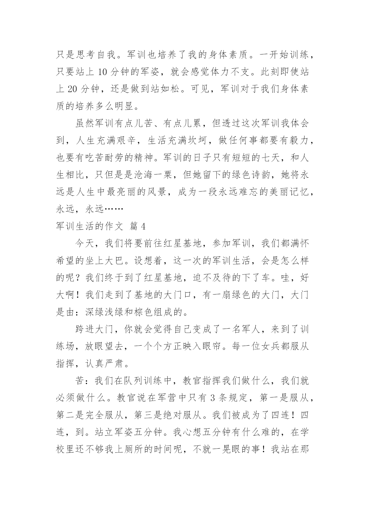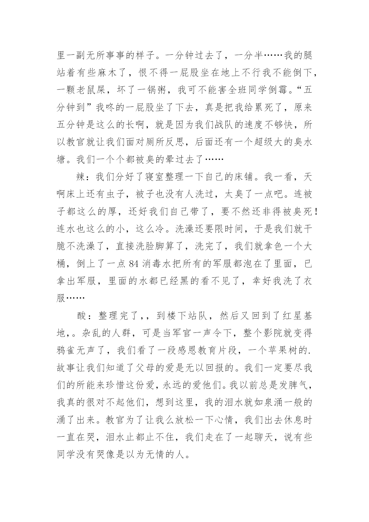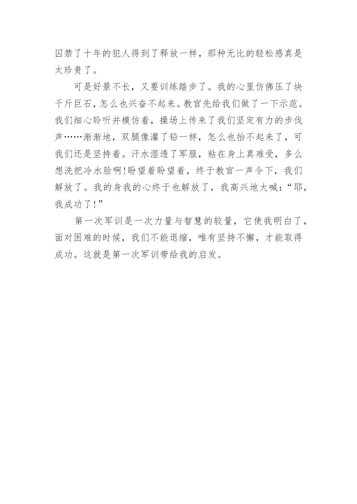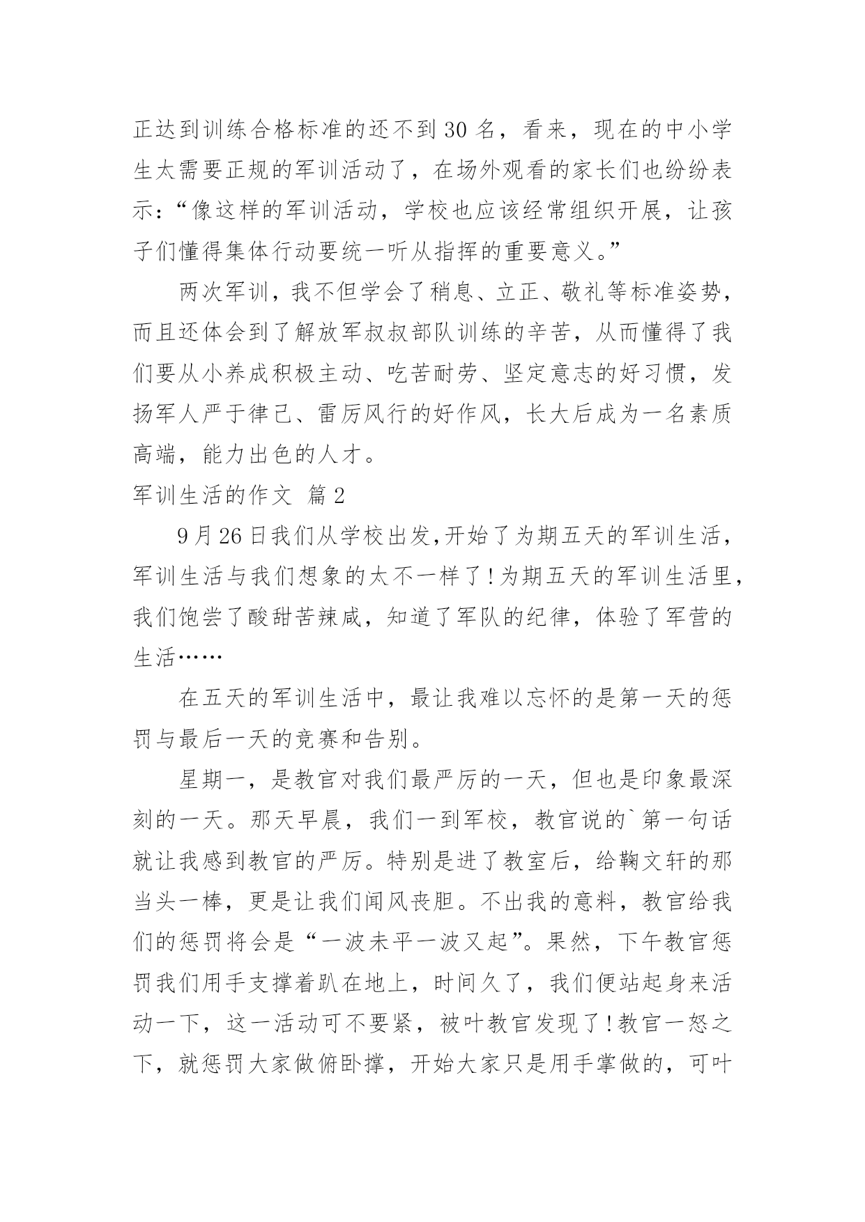 军训生活的作文【优秀】军训生活的作文在现实生活或工作学习中,大家对作文都再熟悉不过了吧,作文根据写作时限的不同可以分为限时作文和非限时作文。那么你有了解过作文吗?下面是小编为大家收集的军训生活的作文6篇,欢迎阅读与收藏。军训生活的作文篇1前几天,迎着春日的灿烂阳光,全体内蒙古小记者齐聚呼市青城公园的人民英雄纪念碑下,体验了两次别具意义的军训生活。下午三点整,年轻的孙教官准时到来。经过提前的队列编排,男女分站的两行纵队远远望去,不论是从矮到高,还是从高到矮,像阶梯似的摆在那里,孙教官风趣地夸奖说:“小记者战士还蛮正规的嘛!”军训开始了,我们首先训练立正。“两条腿并拢,两脚跟靠拢,两脚分开约60度,腰和后背要挺直,两只手贴着裤缝,脖子自然伸直,两眼目视前方…….”听着孙教官的耐心讲解,盯着他的'示范动作,有的小记者窃窃私语道:“哦!原来立正看似简单却很讲究规则,学校体育老师教的原来也不是很标准的呀!”接着,我们又学习了稍息、向左向右向后转、列队报数、原地踏步、敬礼等标准姿势。没想到这些练习起来比较乏味的几个动作,我们竟训练了整整一个下午,而且令大家自感惭愧的是,全体38名小记者能真正达到训练合格标准的还不到30名,看来,现在的中小学生太需要正规的军训活动了,在场外观看的家长们也纷纷表示:“像这样的军训活动,学校也应该经常组织开展,让孩子们懂得集体行动要统一听从指挥的重要意义。”两次军训,我不但学会了稍息、立正、敬礼等标准姿势,而且还体会到了解放军叔叔部队训练的辛苦,从而懂得了我们要从小养成积极主动、吃苦耐劳、坚定意志的好习惯,发扬军人严于律己、雷厉风行的好作风,长大后成为一名素质高端,能力出色的人才。军训生活的作文篇29月26日我们从学校出发,开始了为期五天的军训生活,军训生活与我们想象的太不一样了!为期五天的军训生活里,我们饱尝了酸甜苦辣咸,知道了军队的纪律,体验了军营的生活……在五天的军训生活中,最让我难以忘怀的是第一天的惩罚与最后一天的竞赛和告别。星期一,是教官对我们最严厉的一天,但也是印象最深刻的一天。那天早晨,我们一到军校,教官说的`第一句话就让我感到教官的严厉。特别是进了教室后,给鞠文轩的那当头一棒,更是让我们闻风丧胆。不出我的意料,教官给我们的惩罚将会是“一波未平一波又起”。果然,下午教官惩罚我们用手支撑着趴在地上,时间久了,我们便站起身来活动一下,这一活动可不要紧,被叶教官发现了!教官一怒之下,就惩罚大家做俯卧撑,开始大家只是用手掌做的,可叶教官似乎觉得这样惩罚我们还不够,便让我们改用拳头做,这让我们哪个人能吃得消呢?唉!没办法,只能照做了。不出五分钟,我们就有一大片的同学趴下了,他们中有的叫苦连天,有的擅自改成用手掌做,还有的想要挣扎着用拳头撑起来,可没有成功。我咬紧牙关,努力地用拳头支撑起身子,最终坚持了下来。这一惩罚中有不少同学哭了,但是除了几个同学外,大家都坚持到了最后,这次惩罚似乎让我学会了坚持。这天,叶教官给我们的印象坏透了!星期五,最令我紧张的是国防知识竞赛,因为我、李宁远、王新睿将要代表五(2)班出战。我们在同学们的目光下走上台。比赛开始了,台上的抢答器似乎就是筹码,决一胜负的工具。前面40分的必答题,我们班全到手了,接下去我意识到所有重任已经压在我们三个人的头上的了,我的手情不自禁地放在了抢答器上,要知道抢答题的关键,有时只在0.1秒,甚至0.01秒上,所以反应必须要快。在一番激烈的比赛后,我们班以五十分的优势获胜。接下来,我们就要与教官分别了。成老师说到这里,许多同学就早已经泣不成声了,教室里充满了抽泣声。几天来,教官给我们的严厉和温暖,都让人无法忘却,可我们要离开军校了,离开教官了,离开那浓浓的桂花香了,离开那狭小的寝室了……我们也许永远也不会再回来了,它们将成为我们永恒的美好回忆!军训使我明白了什么才是“坚持到底就是胜利!”什么才是军队的纪律,什么才是真正的军人,什么才是少年军校。军训生活的作文篇3在一个月前,我参加了人生中第一个军训,这几天火热的军训生活,让我既兴奋又疲惫,同时也让我懂得了很多道理。到了军训基地我才意识到军训的“可怕”。基地在十分美丽的乡下,这种天然的美是城市了看不到的,蔚蓝的天上不时飘来几片洁白的云朵儿,变换各种的形状任由人们想象。教官几乎每一句话都在提醒着我们:军训是来吃苦的,我们要坚强的度过这七天,努力!坚持下去!!第一天是不适应的,一天下来我们连一步也不想走了,倒到床上就睡!时光总是过的好快一转眼就天亮了我们又拖着沉重的步子走向训练场地,当时我就想:放下算了,在家里我哪受过这罪啊!但是我不想让新同学看不起我啊,他们都在坚持呢!我又怎能放下呢?就这样在我的纠结中又度过一天,随着渐渐的适应我发现军训其实也不是很累,反倒很搞笑!剩下的几天很快就过去了,军训的确是辛苦的