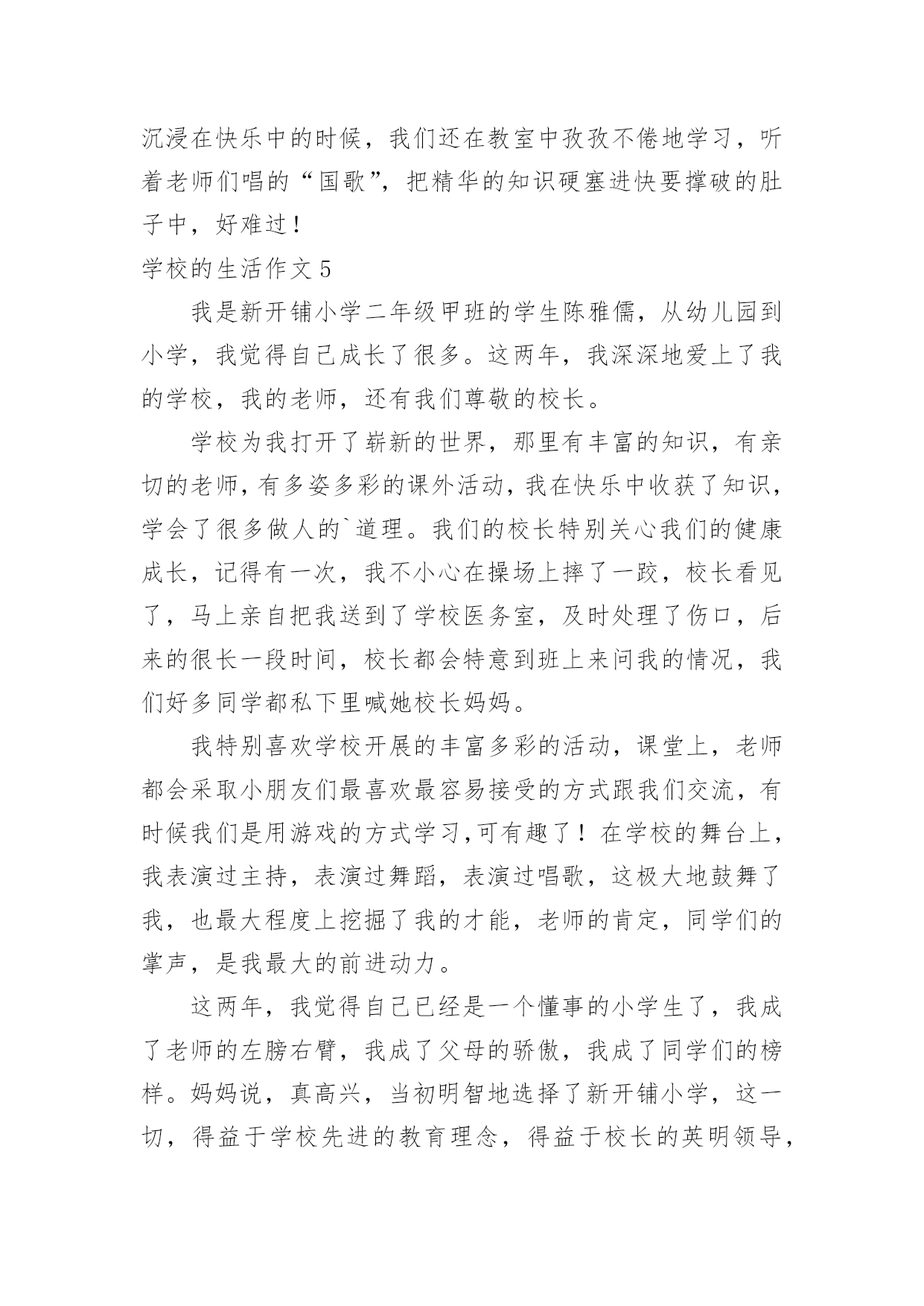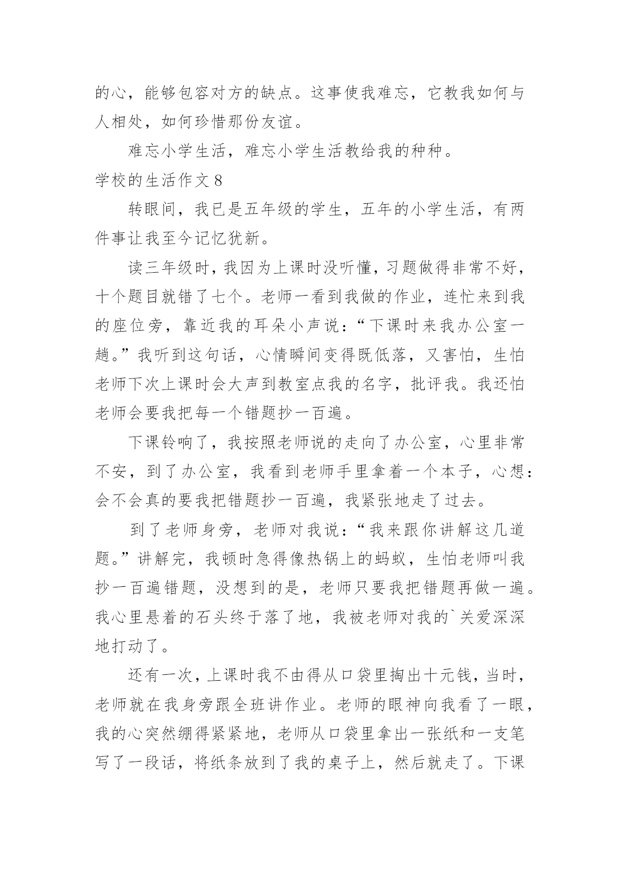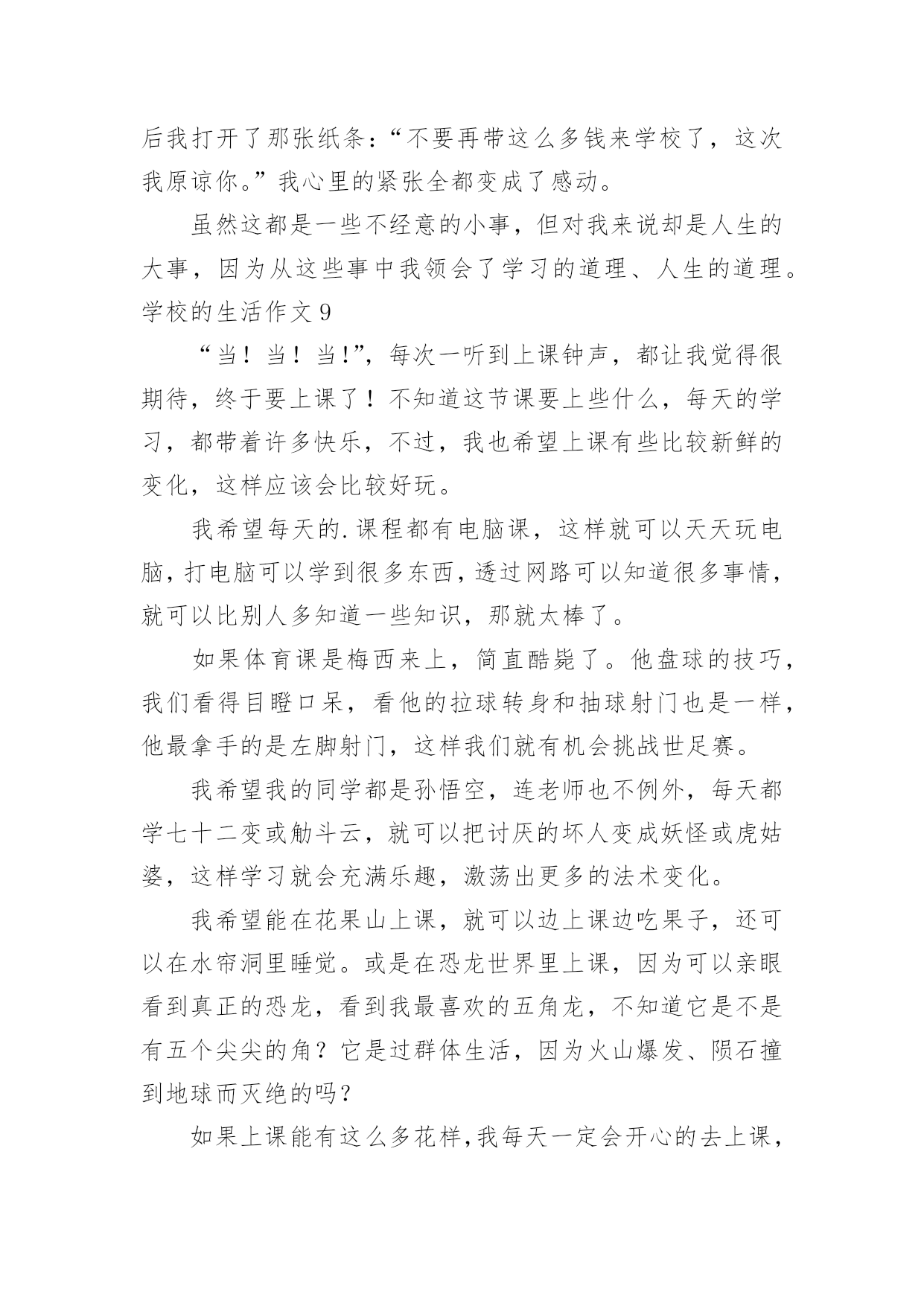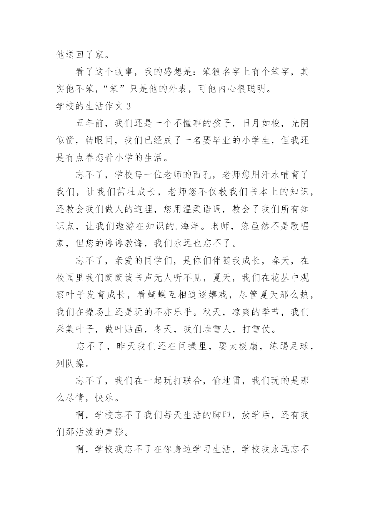 学校的生活作文学校的生活作文在平凡的学习、工作、生活中,大家最不陌生的就是作文了吧,作文根据写作时限的不同可以分为限时作文和非限时作文。为了让您在写作文时更加简单方便,下面是小编为大家收集的学校的生活作文,供大家参考借鉴,希望可以帮助到有需要的朋友。学校的生活作文1盼望着,盼望着,东风来了,考试的脚步近了。完成了一学期的学习,不知校园给了我多少欢乐与微笑。风飘飘水荡荡,掸掸身上的素衣风尘,驾起一叶扁舟,映者朝霞,来到考试的战场。试前,在校园走走,好象那些隆冬盛开的花朵在向我欢笑。一阵花香飘来,我与她撞了个满怀,那响气真清爽,那香气扑鼻而来真清爽。古人云:“一叶落而知天下秋。”是的,或许你还沉醉在夏天的阳光里,或许你还不经意的,秋天已走进了你,你也走进了秋天。虽然现在是隆冬,但临考前的校园里的一草一木仿佛把我引进了秋那硕果累累的季节,仿佛预示着我的`考试成功。是的,牛,从春播到秋收,从夏种到冬荆,从未从未停歇过;背朝吃的烈日,头顶凛冽的寒风,从未退缩过;饮的河塘水,嚼的是草禾秸,从未计较过;从满天星斗的凌晨到遍地夕烟的黄昏,忙了一季又一季,干了一年又一年,从未居过功;最后肉供食用,皮供造革,角雕刻,从未吝惜过。我也像牛一样,已经忙了了,也该上收获的时候了。学校,校园。她以特殊的方式向我致意,想我祝贺。学习大艰辛的,而考试则是测验你的收获的,而校园用她特殊的方法向我祝福是无法取代的。她让我信心满满,让我登上航船,到达胜利的彼岸。在一次考试中,她会让我知道自己的不足,知道自己的光芒,让自己在成功之路上勇往直前。学校的生活作文2这个暑假,我读了许多的书,其中一本是笨狼的学校生活。这本书精彩多多,非常吸引人,有时让我哈哈大笑,有时让我很感动,让人读了有一种流连忘返的感觉。这本书其中有一个故事是这样的:有一次,笨狼和小熊、小猪、小兔一起玩捉迷藏第一次是笨狼捉,其他的躲,笨狼玩捉迷藏是全森林最牛的,一下子捉到所有人,而且这次他们多的是老地方,因为他们认为最危险的地方是最安全的,小熊躲到了垃圾桶里,小兔在他自己的书包里,小猪在门后,他们以为笨狼找不到,所以哈哈大笑,笨狼听见了他们的`笑声把他们通通捉到了。第二次是小猪找,其他的躲,10秒钟过后,小猪把小熊和小兔轻而易举地捉到了,而笨狼躲在树上,这棵树平常都没人过去,30分钟过去了,他们连笨狼的影子都没看到。一天过去了一只小鸟看见了笨狼,而笨狼在睡觉,才慢慢地把他送回了家。看了这个故事,我的感想是:笨狼名字上有个笨字,其实他不笨,“笨”只是他的外表,可他内心很聪明。学校的生活作文3五年前,我们还是一个不懂事的孩子,日月如梭,光阴似箭,转眼间,我们已经成了一名要毕业的小学生,但我还是有点眷恋着小学的生活。忘不了,学校每一位老师的面孔,老师您用汗水哺育了我们,让我们茁壮成长,老师您不仅教我们书本上的知识,还教会我们做人的道理,您用温柔语调,教会了我们所有知识点,让我们遨游在知识的.海洋。老师,您虽然不是歌唱家,但您的谆谆教诲,我们永远也忘不了。忘不了,亲爱的同学们,是你们伴随我成长,春天,在校园里我们朗朗读书声无人听不见,夏天,我们在花丛中观察叶子发育成长,看蝴蝶互相追逐嬉戏,尽管夏天那么热,我们在操场上还是玩的不亦乐乎。秋天,凉爽的季节,我们采集叶子,做叶贴画,冬天,我们堆雪人,打雪仗。忘不了,昨天我们还在间操里,耍太极扇,练踢足球,列队操。忘不了,我们在一起玩打联合,偷地雷,我们玩的是那么尽情,快乐。啊,学校忘不了我们每天生活的脚印,放学后,还有我们那活泼的声影。啊,学校我忘不了在你身边学习生活,学校我永远忘不了你。学校的生活作文4(一)我们的英语老师Because,简直是个“话罐子”,不管是人说的,还是动植物说的,她都说得出口,不过近几日她的话变少了,因为她在与她丈夫打架的时候,把右手给打骨折了,为了让手恢复得快一些,就只好把到口的话咽回口中去。好可怜!待到手恢复得差不多的时候,她又在大谈她的“cause理论”:“前段时间,我的手骨折了,那时我才知道手的重要性了!……”说得唾沫横飞,说得一本书从头湿到尾;同学们都昏昏欲睡……话说这人不能同情别人,一同情他人,自己就遭殃了,这不,陈宁宏因为同情Because,把自己的脚给扭坏了,可怜!(我不能同情她,否则我就要遭殃了)(二)贾继松是我班的焦点,据了解,我的同学大部分都认为他长得好看,所以他就自然而然地成为了我的同学们的偶像,大家都喊他“车人表―车老师”。上个星期四下午学校举行篮球赛,贾老师也参加,所以在别班的同学吃饭的'时候,我班的学生还在操场上观看篮球赛,皇天不负有心人,车老师那一队赢了!好高兴!(三)凉爽的秋风迎来了一年一度的“国庆节”,当全国人民沉浸在快乐中的时候,我们还在教室中孜孜不倦地学习,听着老师们唱的“国歌”,把精华的知识硬塞进