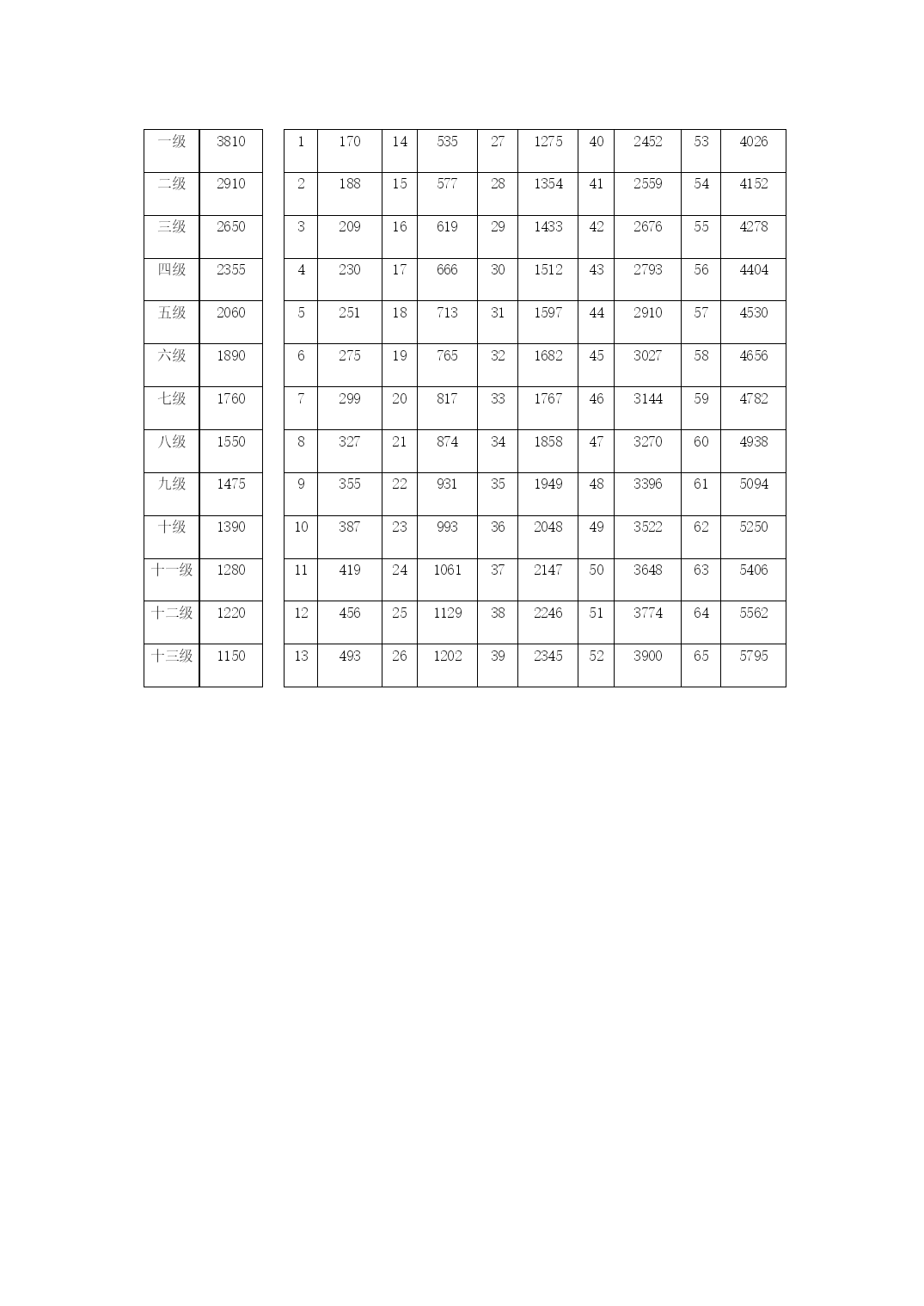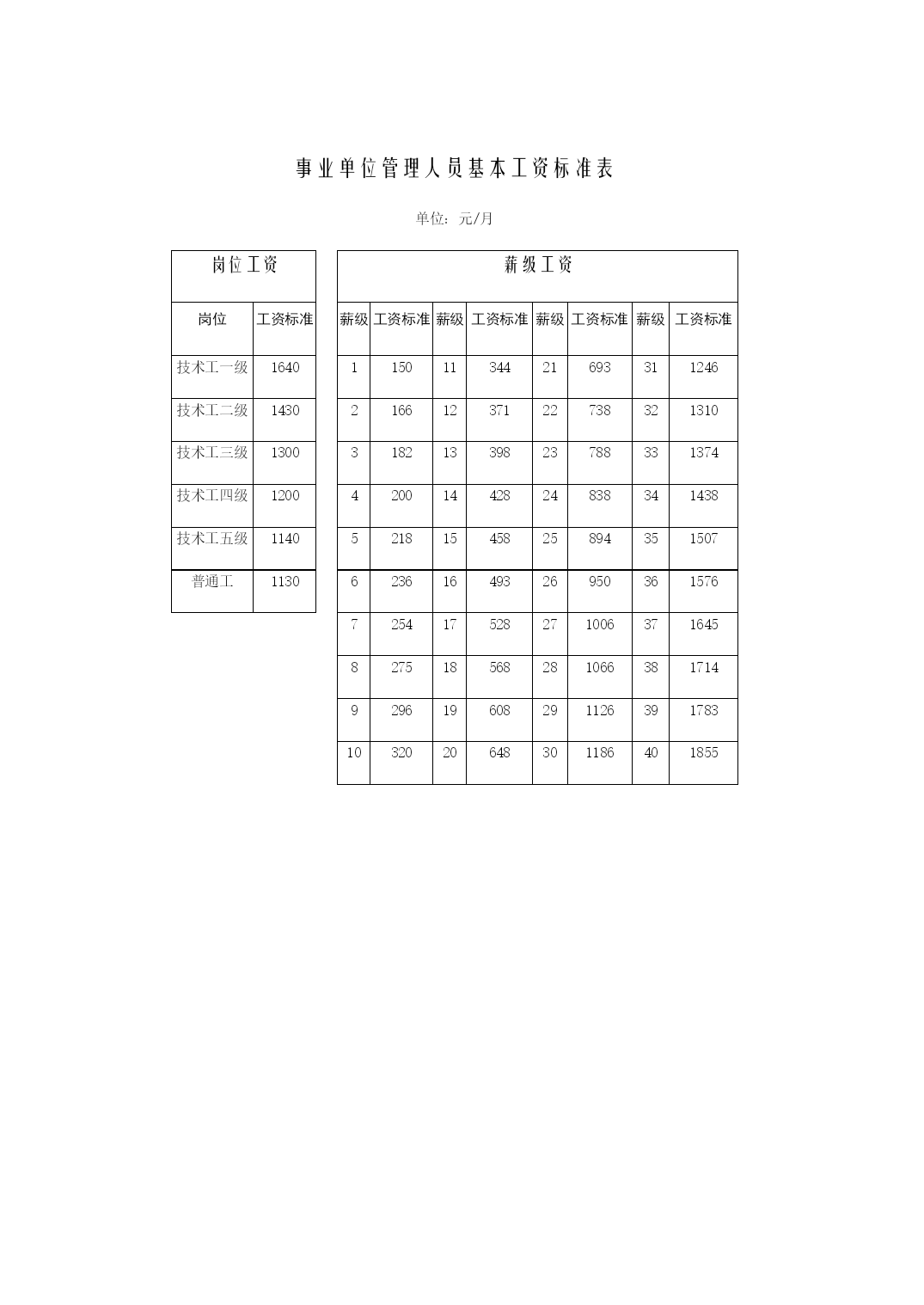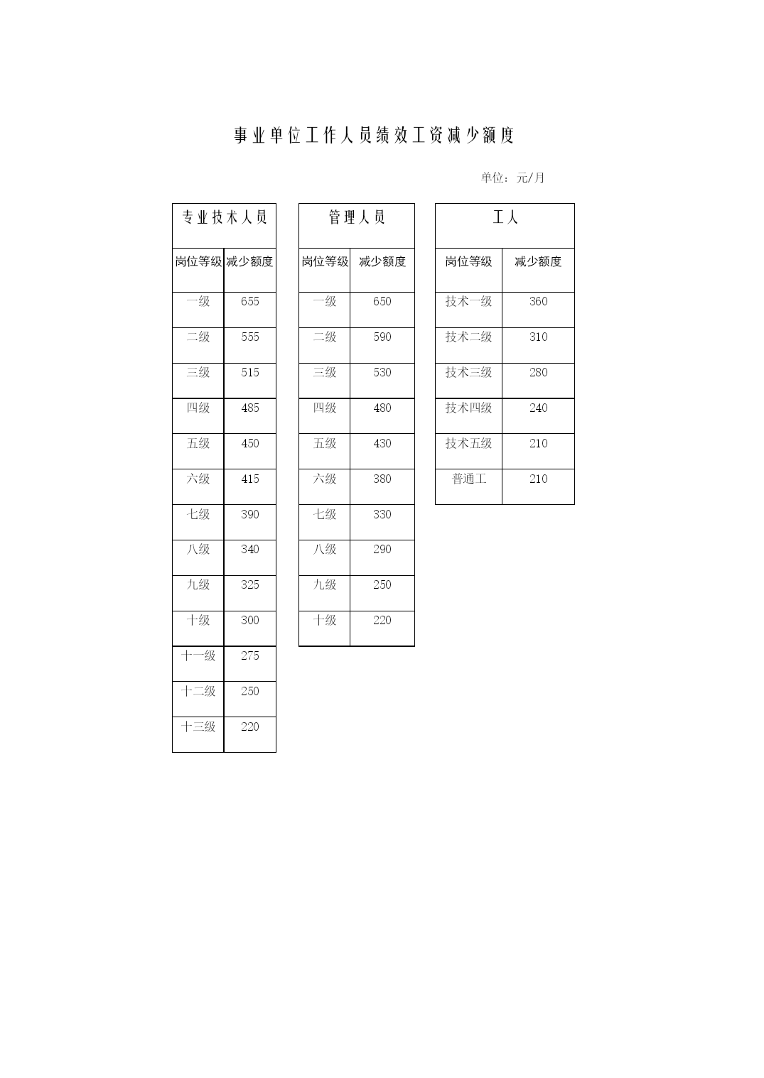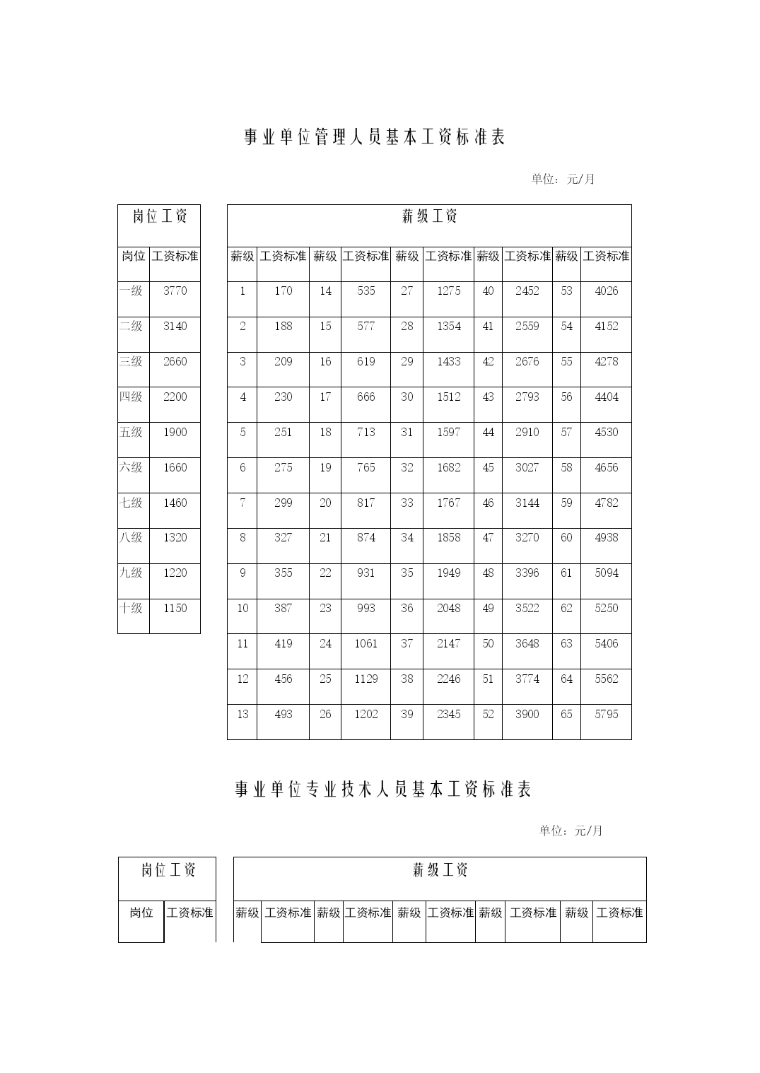 年公务员职务级别工资标准表优质资料(可以直接使用,可编辑优质资料,欢迎下载)公务员职务级别工资标准表单位:元/月职务工资职务工资标准领导职务非领导职务国家级正职5250国家级副职4290省部级正职3440省部级副职2720厅局级正职21301990厅局级副职17001590县处级正职13601270县处级副职10801010乡科级正职860820乡科级副职720690科员600办事员510级别工资级别档次1234567891011121314一613566047073754280118480二5625602964336837724176458049三51605524588862526616698073447708四472150555389572360576391672570597393五4318463249465260557458886202651668307144六39494243453748315125541957136007630165956889七36223896417044444718499252665540581460886362八33363590384440984352460648605114536856225876九30793313354737814015424944834717495151855419十28413056327134863701391641314346456147764991十一262028183016321434123610380840064204440246004798十二2415259827812964314733303513369638794062424544284611十三22252395256527352905307532453415358537553925409542654435十四20492207236525232681283929973155331334713629378739454103十五18872034218123282475262227692916306332103357350436513798十六17381874202121462282241825542690282629623098323433703506十七1602172718521977210222272352247726022727285229773102十八1478159317081823193820532168228323982513262827432858十九136514701575168017851890199521002205231024152520二十12631358145315481643173818331928202321182213二十一1171125613411426151115961681176618511936二十二108911641239131413891464153916141689二十三10171082114712121277134214071472二十四9541010106611221178123412901346二十五8999479951043109111391187二十六85189393597710191061二十七810846882918954990机关技术工人岗位技术等级工资标准表单位:元/月标准技术等级岗位工资技术等级工资123456789101112131415161718高级技师1558164317281828192820282143225823732503263327632908305331981000技师131713871457152716111695177918781977207621902304241825482678720高级工11281185124212991367143515031582166117401832192420212121222623442462585中级工101110571103114912061263132013881456152416031682176118521943204621492252475初级工920956992102810741120116612231280133714041471153816171696177518661957385机关普通工人岗位技术等级工资标准表单位:元/月12345678910111213141516171819普通工1280131213441380141614621508156516221690175818381918202121002202230424062508公务员和机关工人规范津贴补贴减少额度单位:元/月公务员机关工人职务减少额度职务(技术等