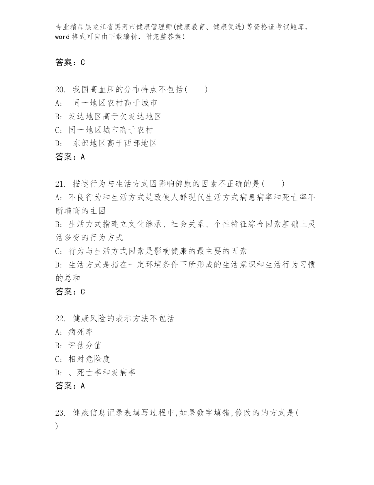 2024年黑龙江省黑河市健康管理师(健康教育、健康促进)等资格证考试(夺冠).docx