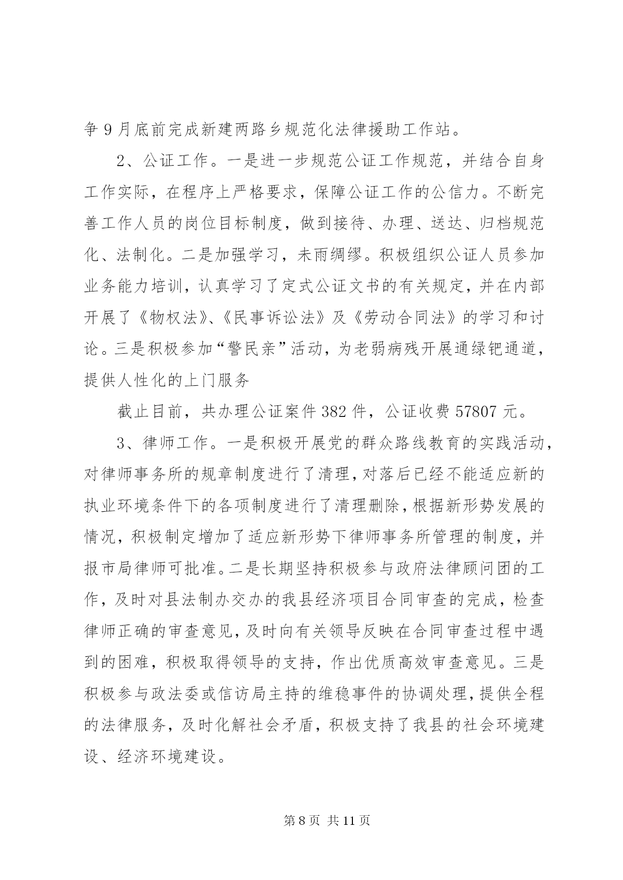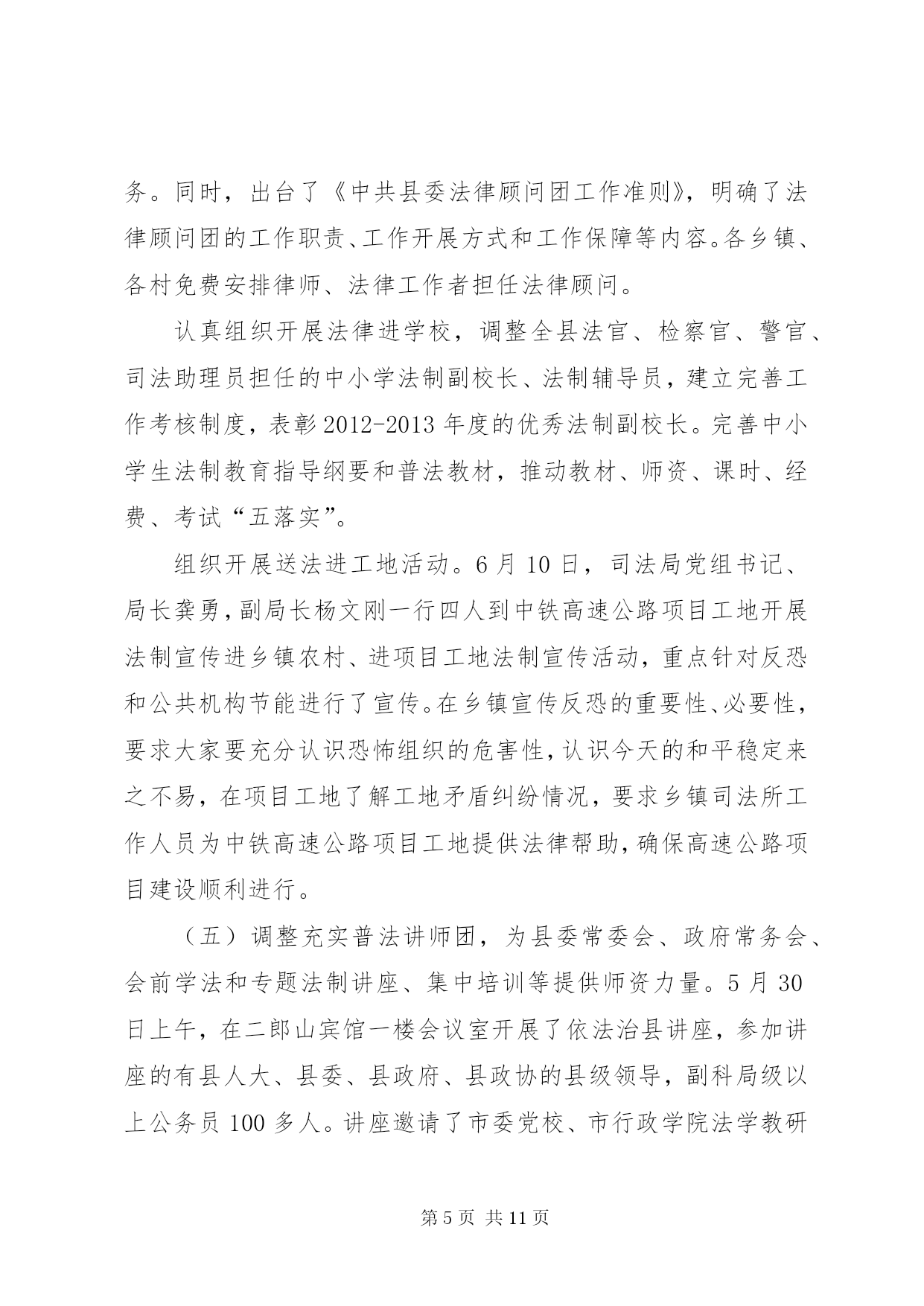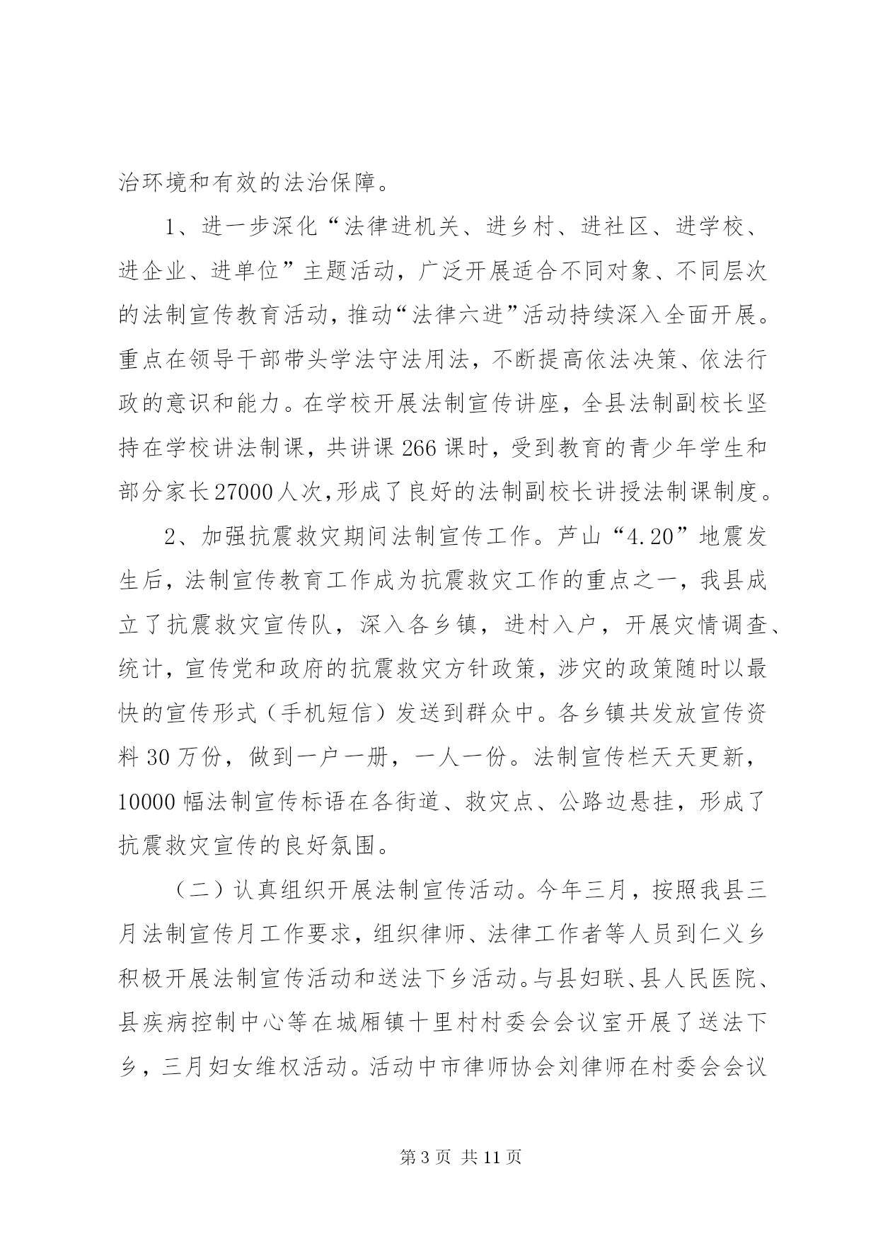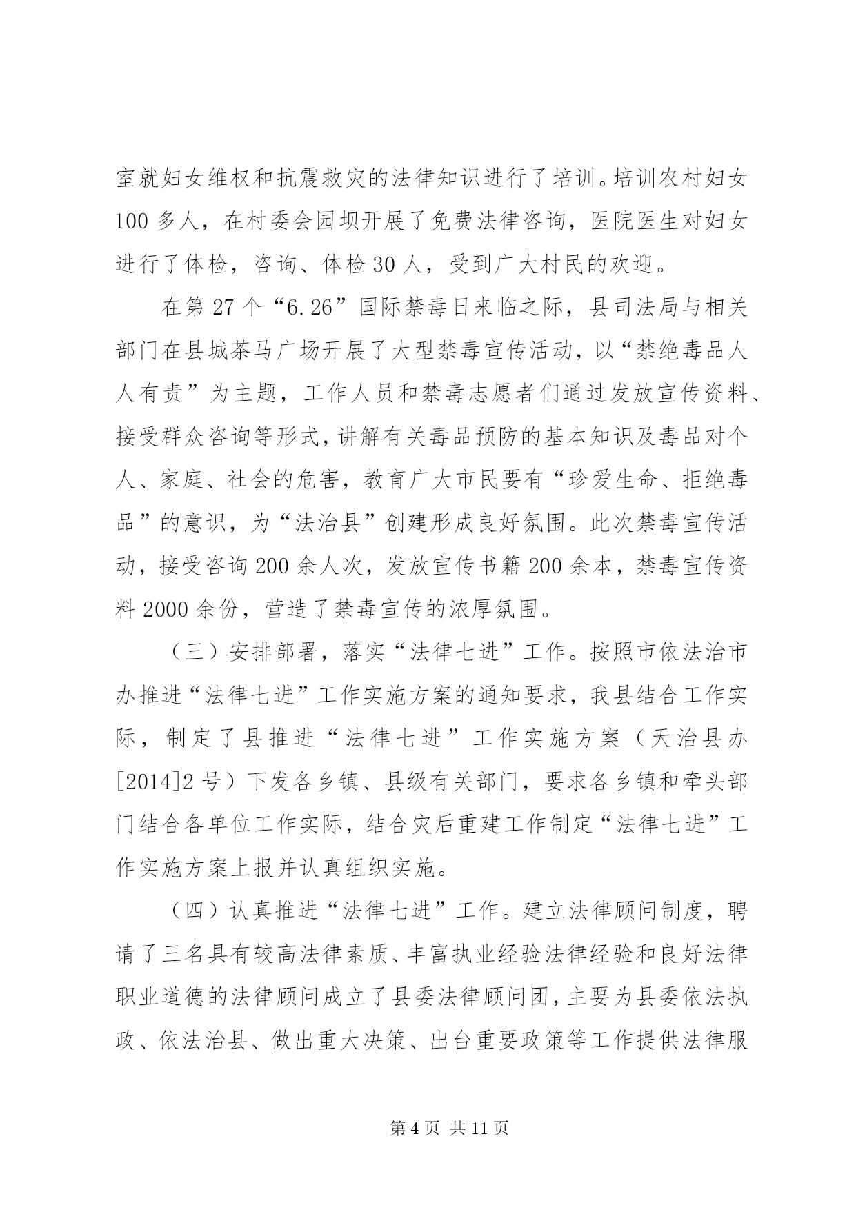 第PAGE\*Arabic\*MERGEFORMAT11页共NUMPAGES\*MERGEFORMAT11页司法局灾后重建工作总结按照重建办《关于灾后恢复重建一周年工作总结的通知》要求,现将涉及我局灾后重建工作情况总结如下:一、扎实推进人民调解进项目工作(一)加强人民调解队伍建设,营造调解职能大提升大发展的良好氛围。各乡镇确保落实1名副科级乡(镇)领导任人民调解委员会主任,落实3-5人组成调委会专、兼职人员,确保人民调解工作有人抓、有人管、有办公场所、有工作人员办事,为大调解工作的扎实有效开展奠定坚实基础。其次健全教育培训制度。发挥县人民调解指导中心的作用,县培训乡、乡培训村和重大纠纷经验交流的形式强化调解队伍的培训,提高调解人员的政策法律水平,从而提高依法调解矛盾纠纷和民事案件的能力。各乡镇充分发挥人民调解维稳“第一道防线”作用,加大矛盾纠纷排查力度,真正做到横到边、纵到底,实现“小纠纷不出村(社区)、大纠纷不出乡镇、疑难纠纷不出县”。做到层层有人抓,事事有人管,确保全县的社会稳定。(二)围绕市依法治市工作方案,全面推进人民调解进项目工作。全县15个乡镇目前建立项目的人民调解室有:多功的“蓝天新村”项目调解室、始阳的“乐坝村聚居点”人民调解室、“光荣村聚居点”人民调解室、乐英的“盐店村聚居点”人民调解室、大坪的“毛山村聚居点”人民调解室、“大坪村聚居点”人民调解室、两路“高速公路建设项目”人民调解室、仁义的“永兴村聚居点”调解室、“溪口村聚居”调解室、“桐林村聚居点”调解室、“石桥村聚居点”调解室。11个项目调解室均严格按照雅司发[2014]2号文件要求,做到了“七有”、“及录”、“优卷案”。:即:“七有”:有相对固定的办公场所(与项目部共用);有必要的办公设备(桌椅和电脑)、有调解员(各司法所的司法助理员参与其中),有外观标识、有规范的名称、有公示牌、有矛盾纠纷台账。“及录”:所有项目人民调解案件统一及时录入大调解信息系统。“优卷案”指优秀的人民调解案件按照人民调解文书格式制作建立规范的人民调解案件卷宗。全县项目调解室共受理纠纷29件。调解成功29件,成功率100%。目前在11个项目调解室中打造了3个项目调解示范点(乐英的盐店村聚居点、始阳的乐坝村聚居点、两路高速公路建设项目)。全县各级调解组织共155个(其中乡镇调委会15个、村调委会138各、社区调委会7个,专业性人民调解委员会2个)、人民调解员775名。共受理各类矛盾纠纷495件,调解成功469件,调解成功率94.75%,与去年同期相比减少了14件,调解成功率下降0.54%,案件下降率为3.35%。共制作规范性的人民调解协议书422份。二、认真开展宣传活动,为灾后重建营造良好的法制氛围(一)深化“法律六进”主题活动,为抗震救灾提供良好法治环境和有效的法治保障。1、进一步深化“法律进机关、进乡村、进社区、进学校、进企业、进单位”主题活动,广泛开展适合不同对象、不同层次的法制宣传教育活动,推动“法律六进”活动持续深入全面开展。重点在领导干部带头学法守法用法,不断提高依法决策、依法行政的意识和能力。在学校开展法制宣传讲座,全县法制副校长坚持在学校讲法制课,共讲课266课时,受到教育的青少年学生和部分家长27000人次,形成了良好的法制副校长讲授法制课制度。2、加强抗震救灾期间法制宣传工作。芦山“4.20”地震发生后,法制宣传教育工作成为抗震救灾工作的重点之一,我县成立了抗震救灾宣传队,深入各乡镇,进村入户,开展灾情调查、统计,宣传党和政府的抗震救灾方针政策,涉灾的政策随时以最快的宣传形式(手机短信)发送到群众中。各乡镇共发放宣传资料30万份,做到一户一册,一人一份。法制宣传栏天天更新,10000幅法制宣传标语在各街道、救灾点、公路边悬挂,形成了抗震救灾宣传的良好氛围。(二)认真组织开展法制宣传活动。今年三月,按照我县三月法制宣传月工作要求,组织律师、法律工作者等人员到仁义乡积极开展法制宣传活动和送法下乡活动。与县妇联、县人民医院、县疾病控制中心等在城厢镇十里村村委会会议室开展了送法下乡,三月妇女维权活动。活动中市律师协会刘律师在村委会会议室就妇女维权和抗震救灾的法律知识进行了培训。培训农村妇女100多人,在村委会园坝开展了免费法律咨询,医院医生对妇女进行了体检,咨询、体检30人,受到广大村民的欢迎。在第27个“6.26”国际禁毒日来临之际,县司法局与相关部门在县城茶马广场开展了大型禁毒宣传活动,以“禁绝毒品人人有责”为主题,工作人员和禁毒志愿者们通过发放宣传资料、接受群众咨询等形式,讲解有关毒品预防的基本知识及毒品对个人、家庭、社会的危害,教育广大市民要有“珍爱生命、拒绝毒品”的意识,为“法治县”创建形成良好氛围。此次禁毒宣传活动,接受咨询200余