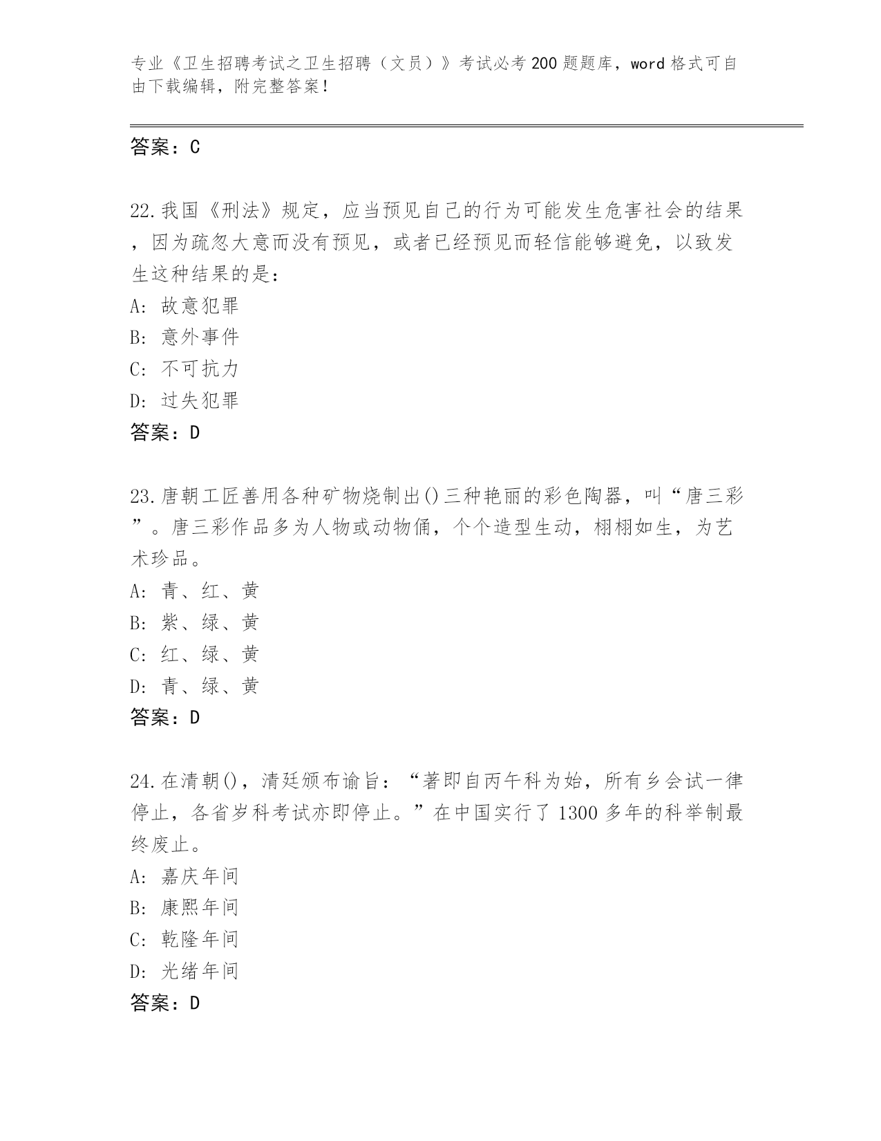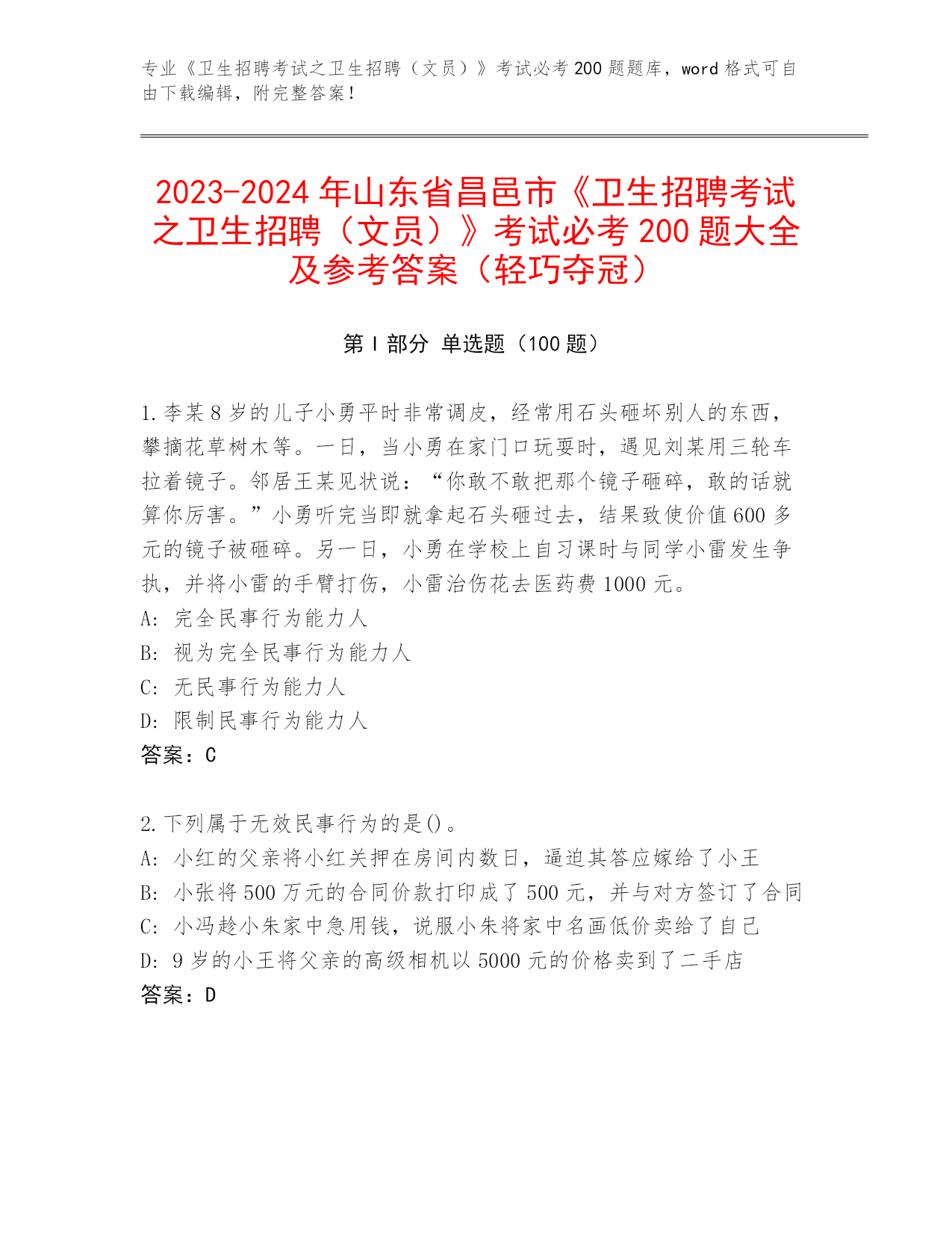 2023-2024年山东省昌邑市《卫生招聘考试之卫生招聘(文员)》考试必考200题大全及参考答案(轻巧夺冠)