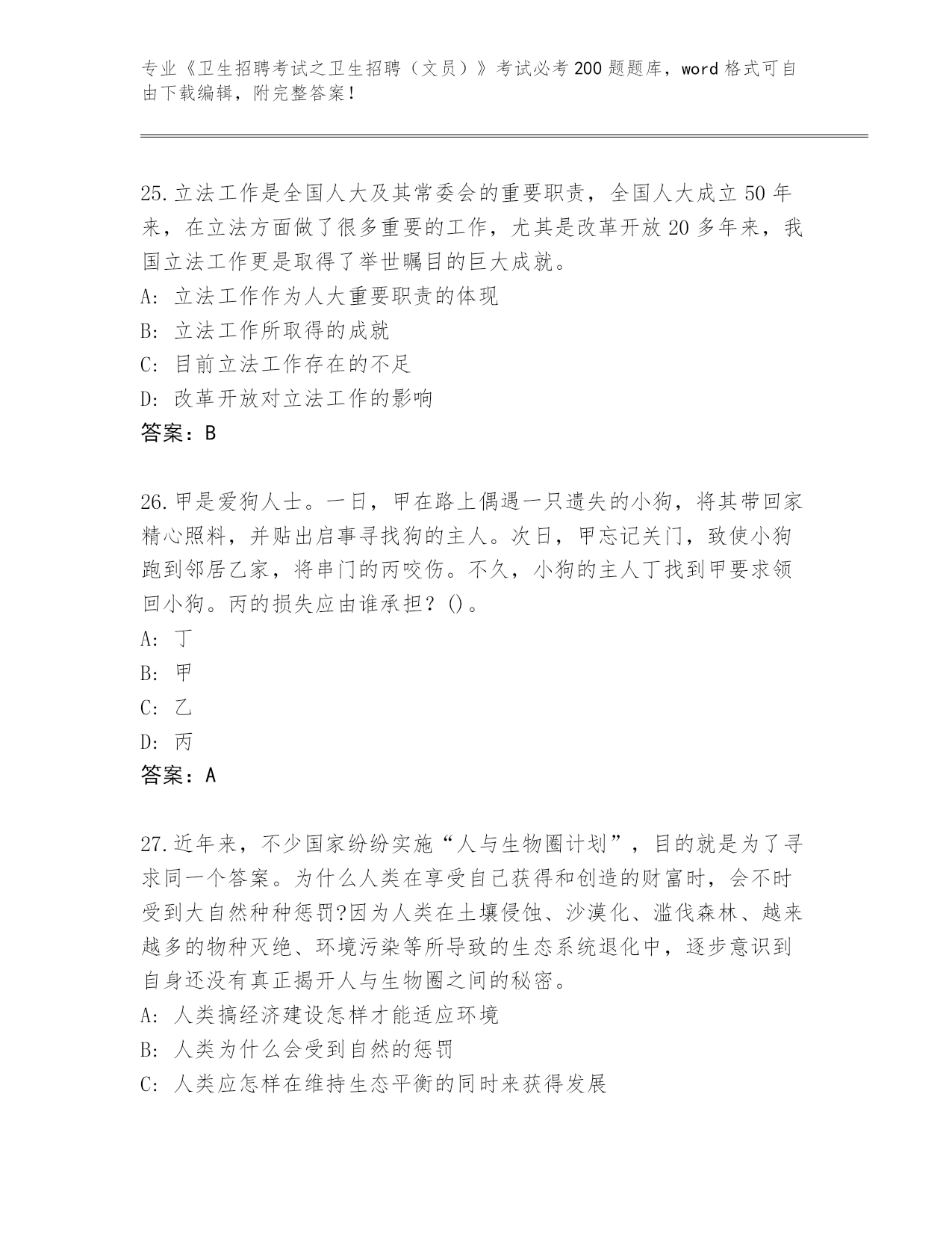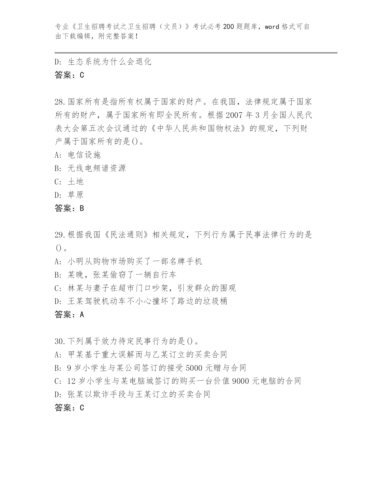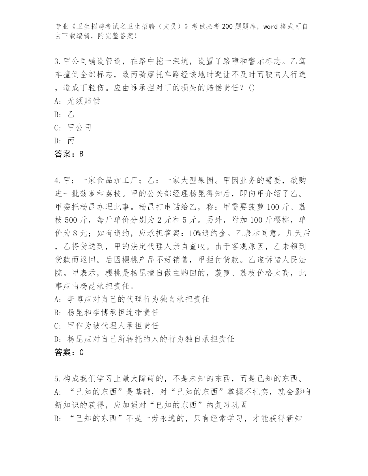 2024甘肃省《卫生招聘考试之卫生招聘(文员)》考试必考200题大全含答案(轻巧夺冠)
