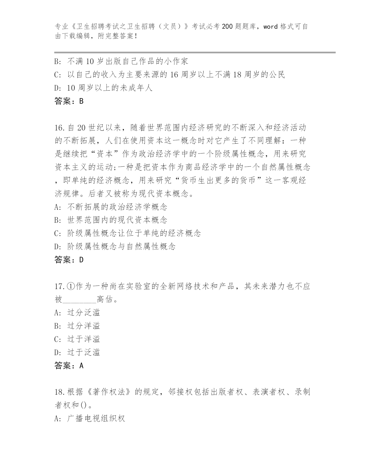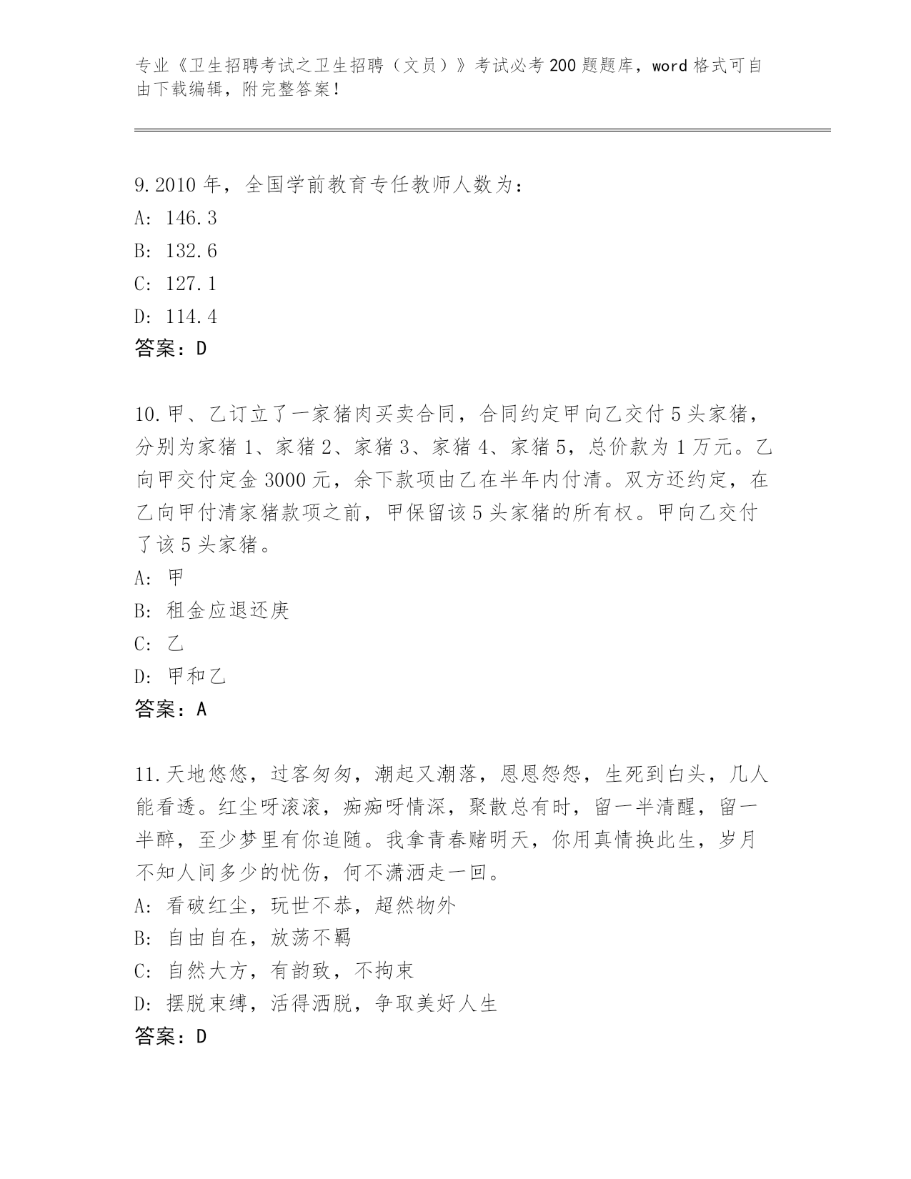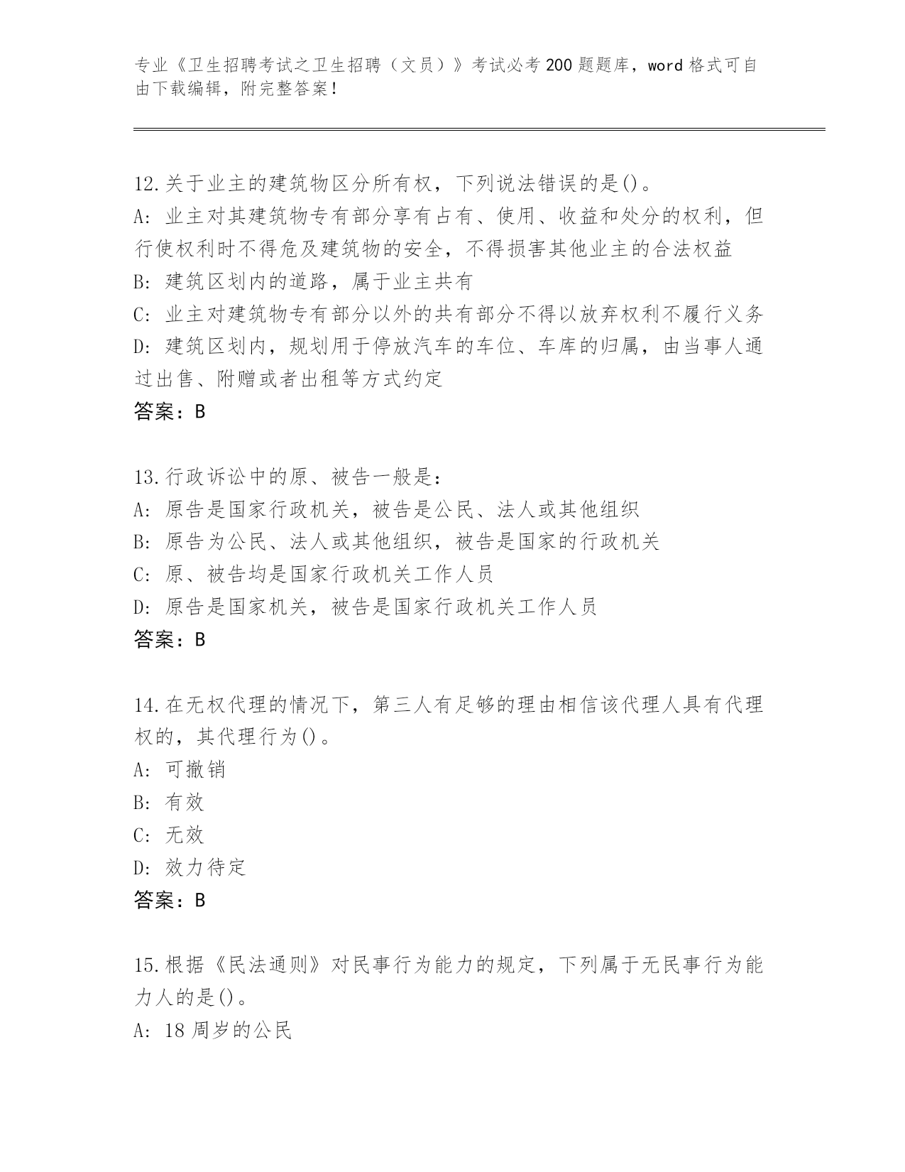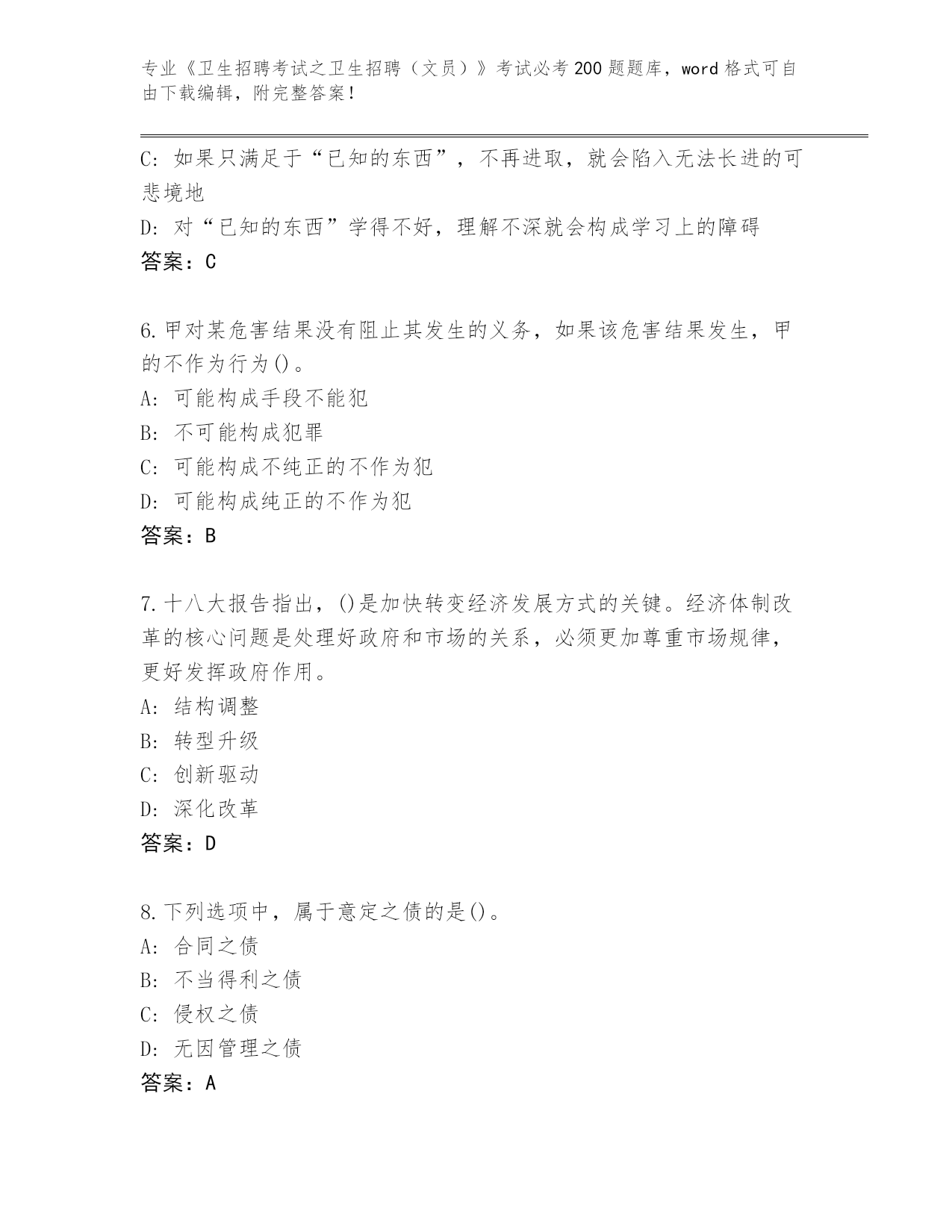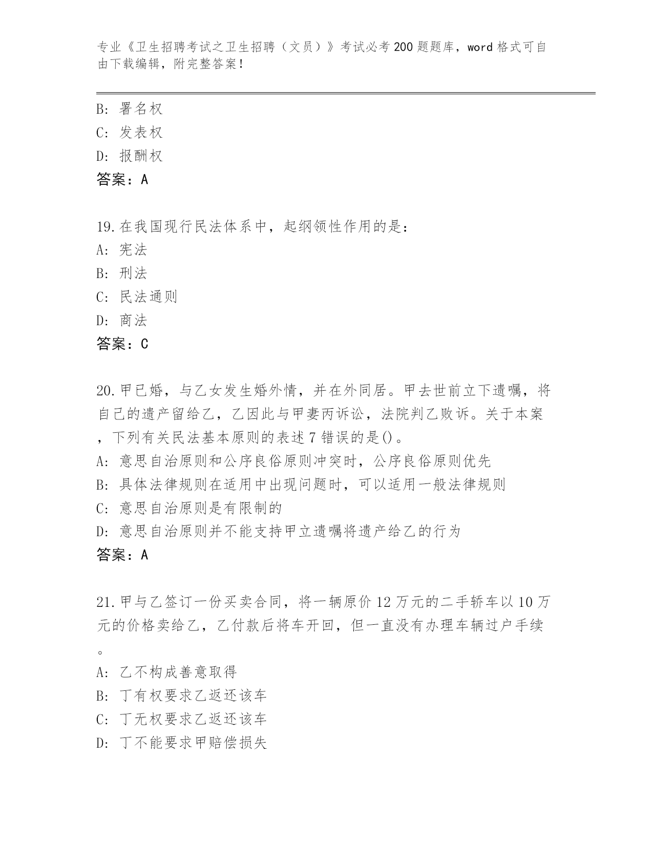 2024年云南省《卫生招聘考试之卫生招聘(文员)》考试必考200题大全附参考答案(轻巧夺冠)