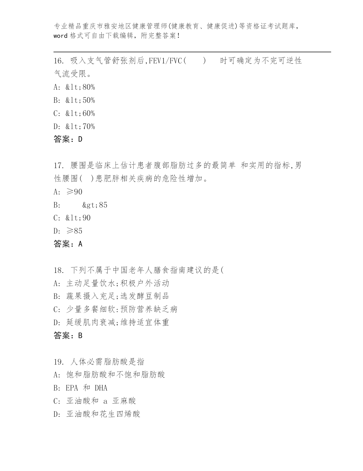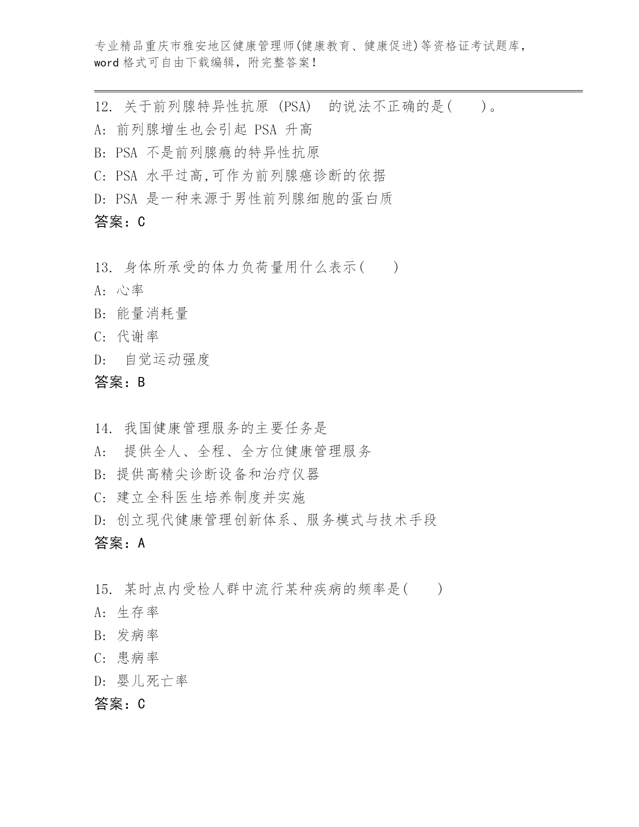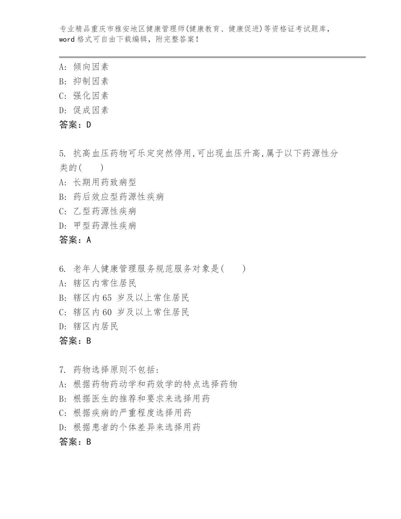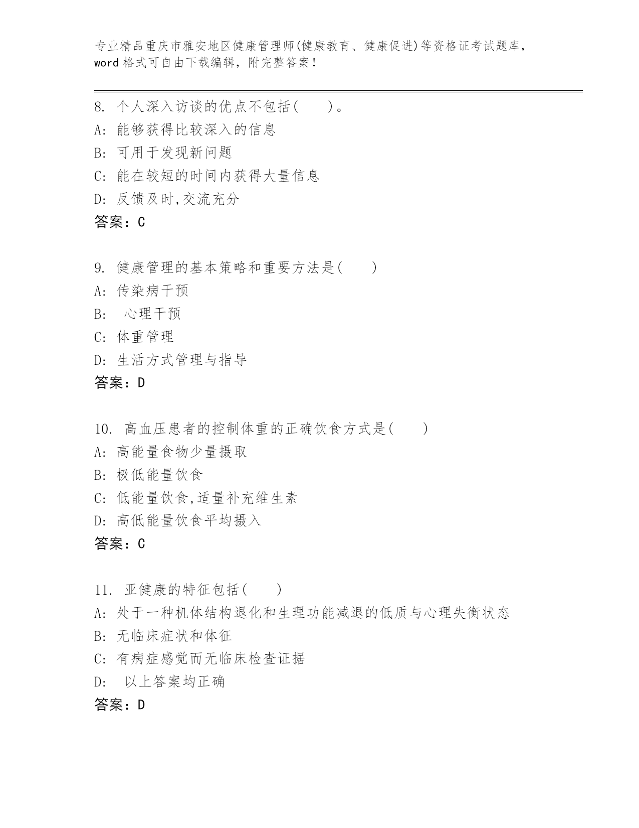 优选重庆市雅安地区健康管理师(健康教育、健康促进)等资格证考试免费下载答案