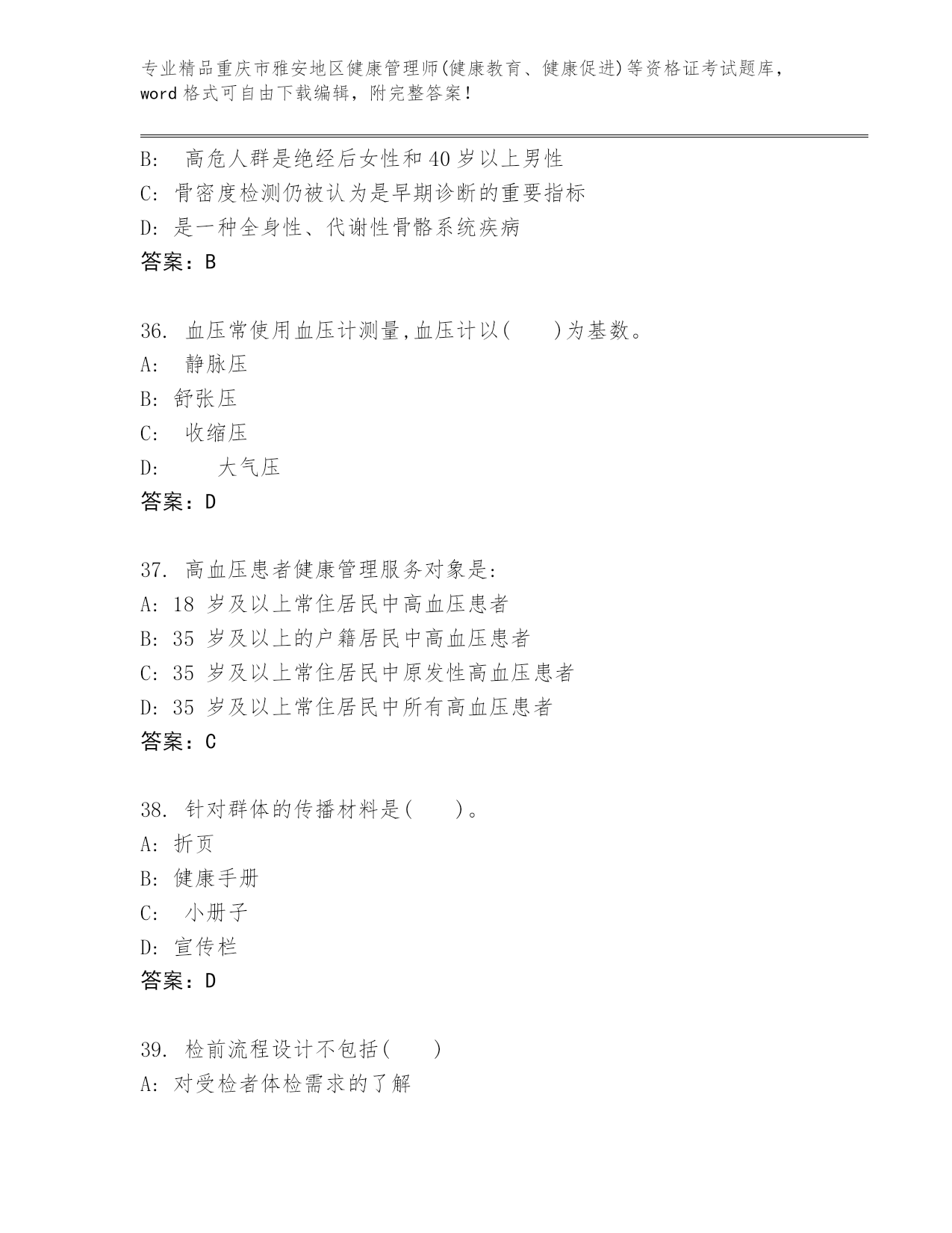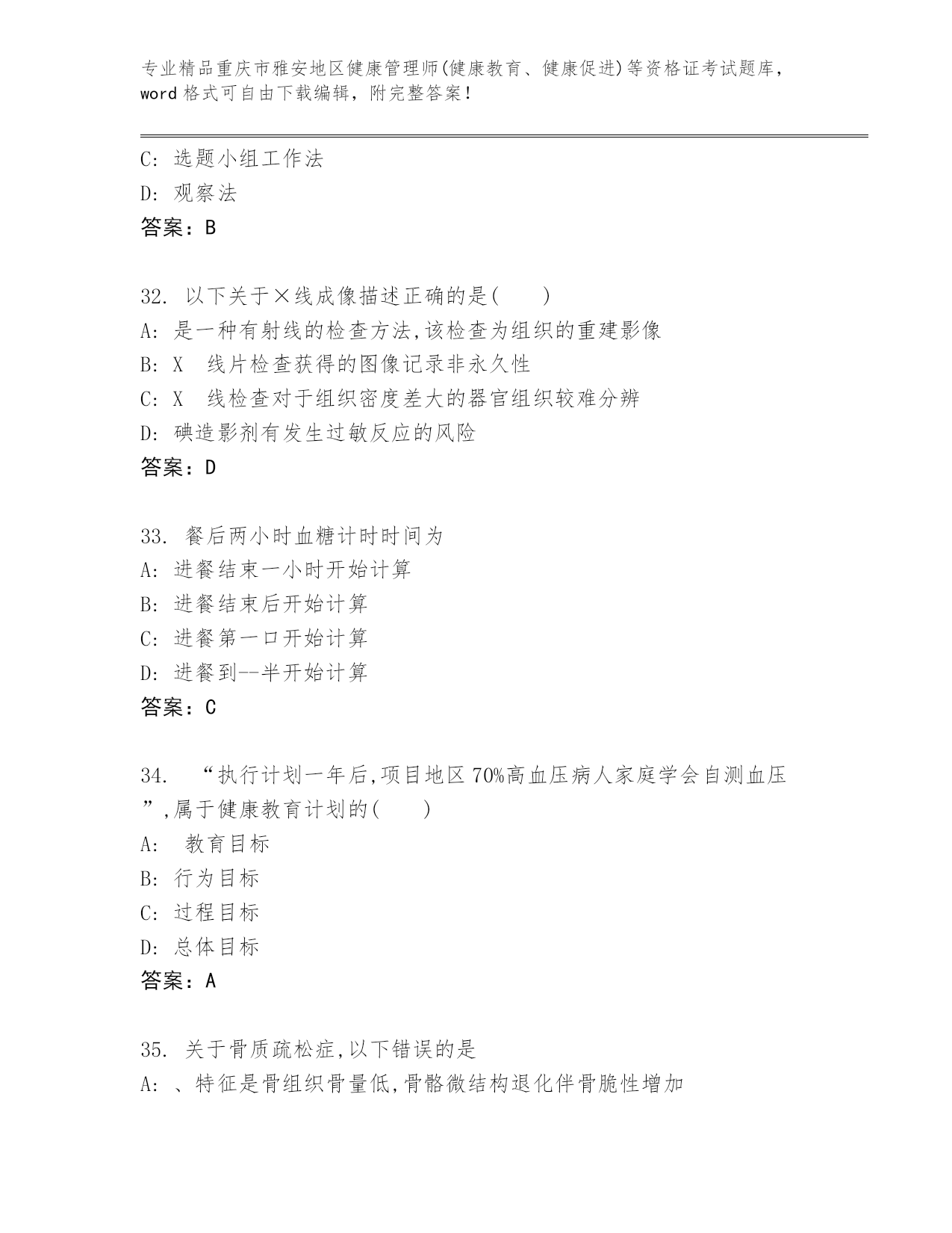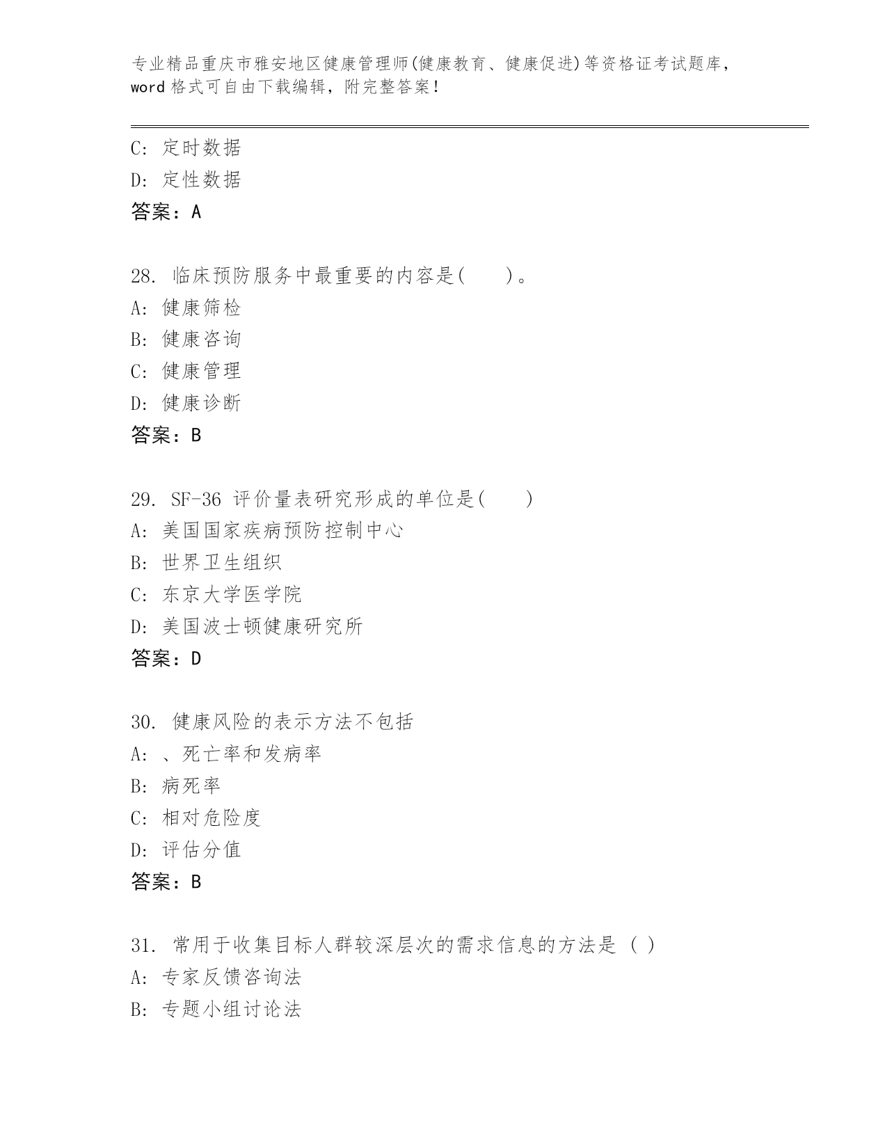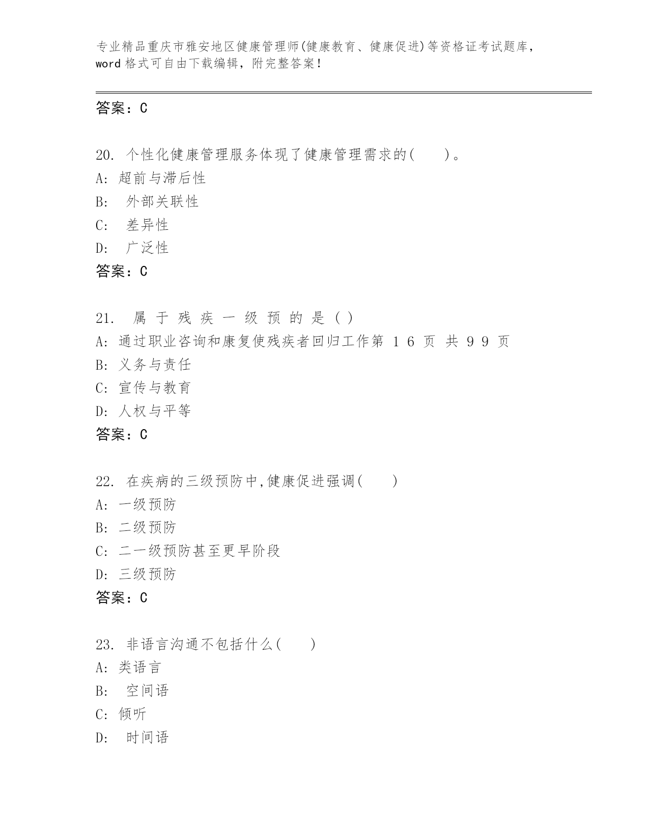 优选重庆市雅安地区健康管理师(健康教育、健康促进)等资格证考试免费下载答案