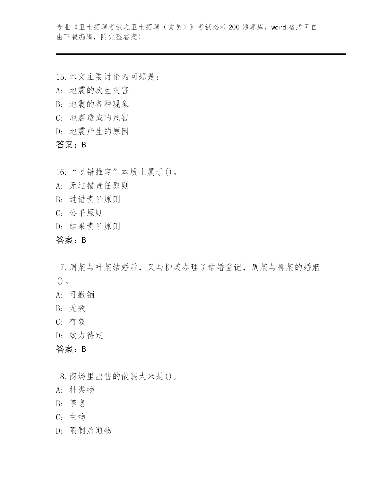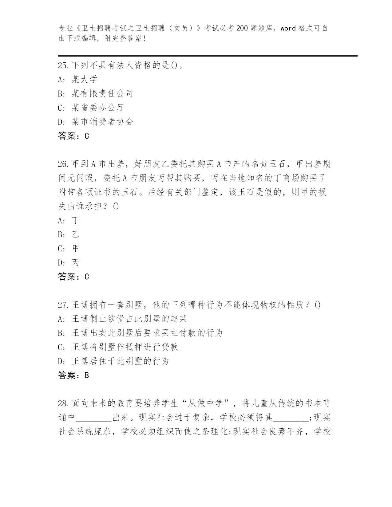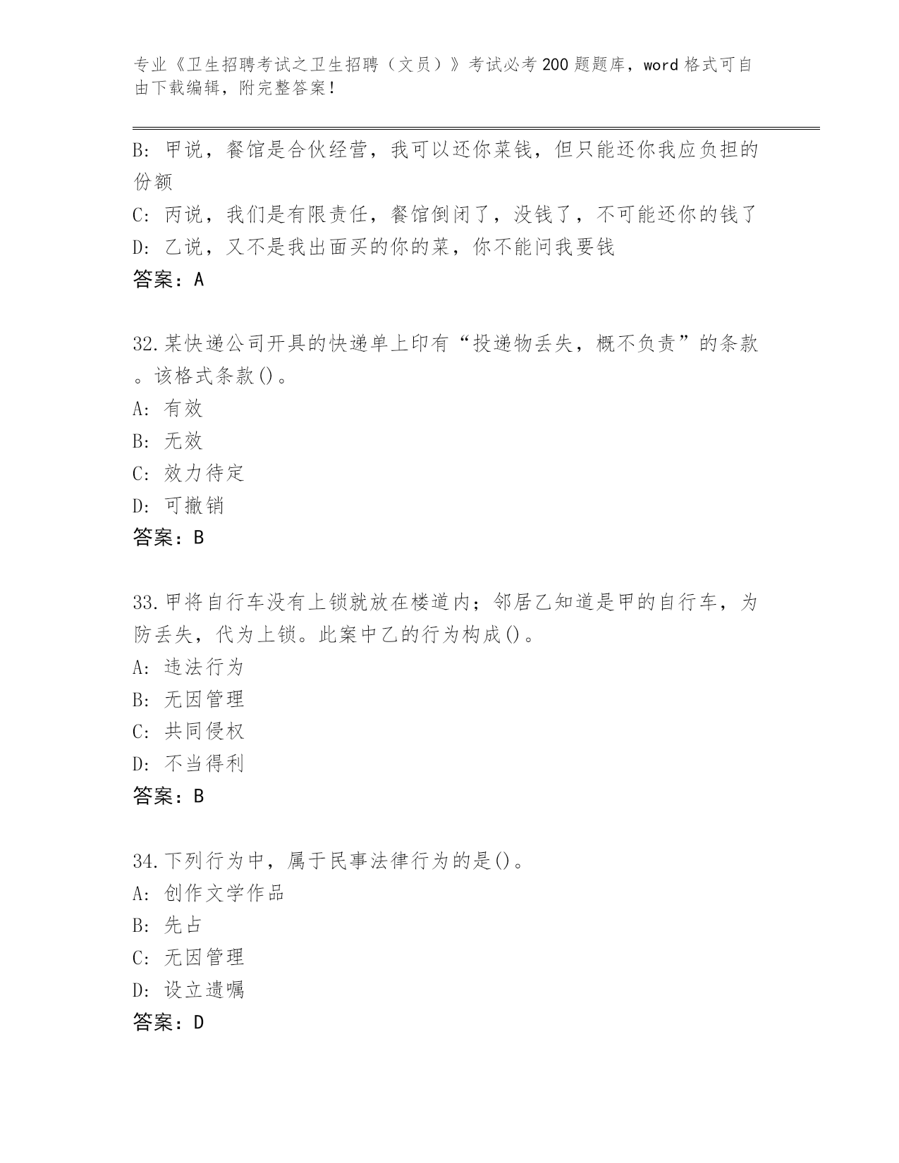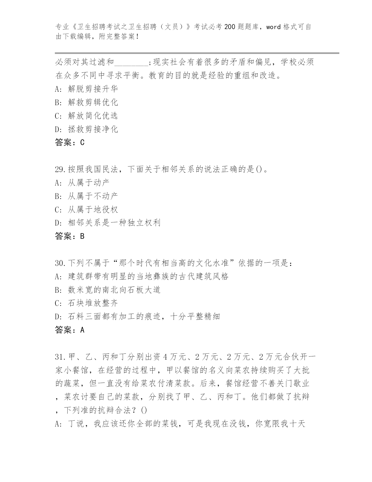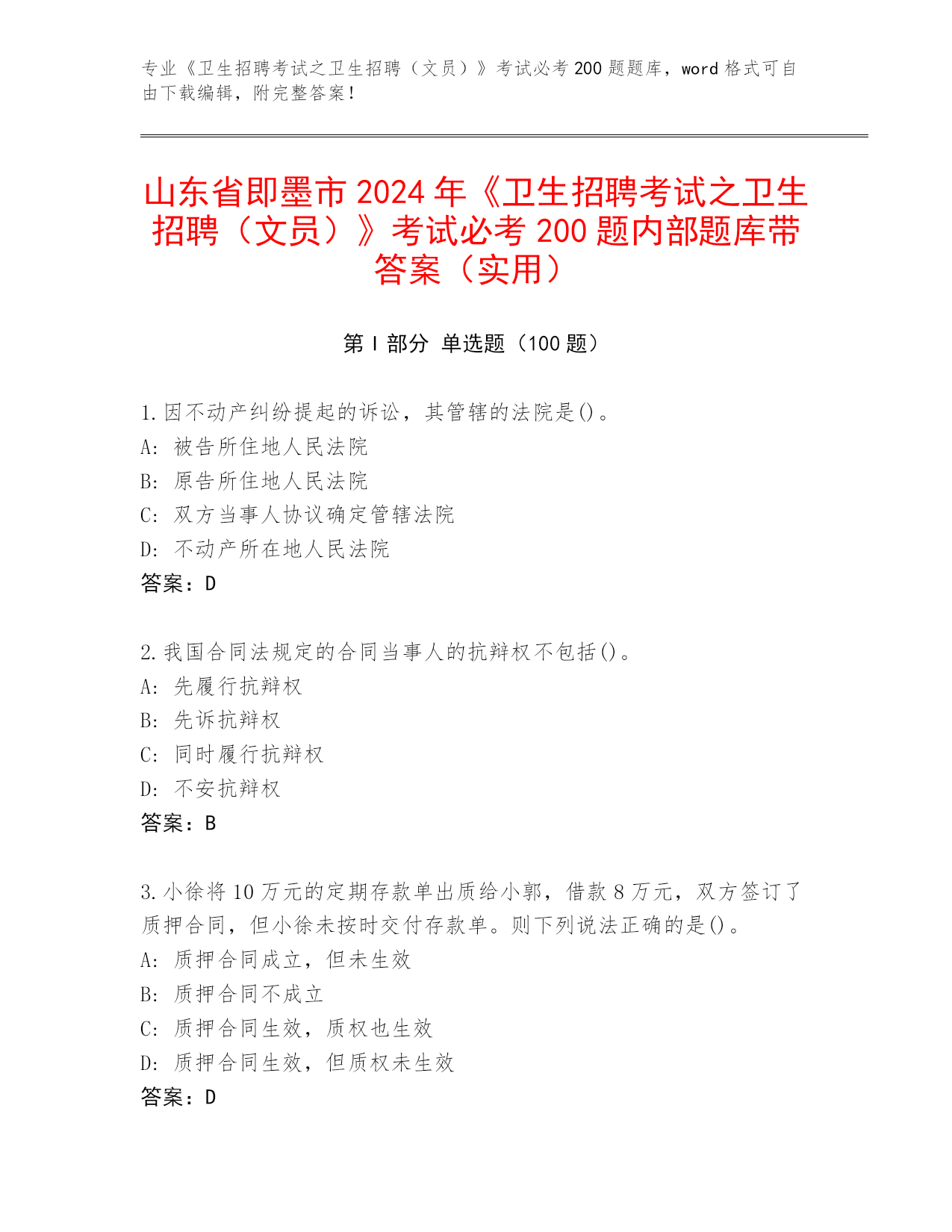 山东省即墨市2024年《卫生招聘考试之卫生招聘(文员)》考试必考200题内部题库带答案(实用)