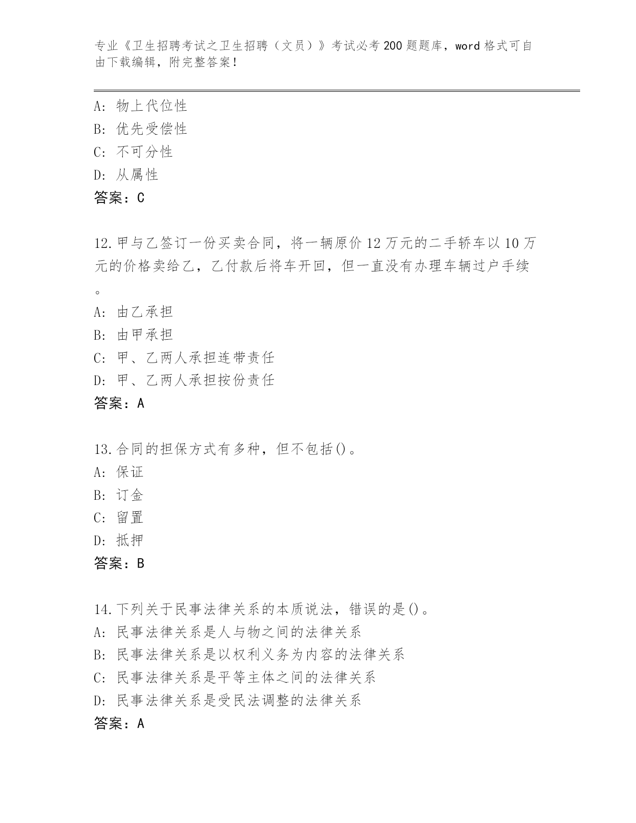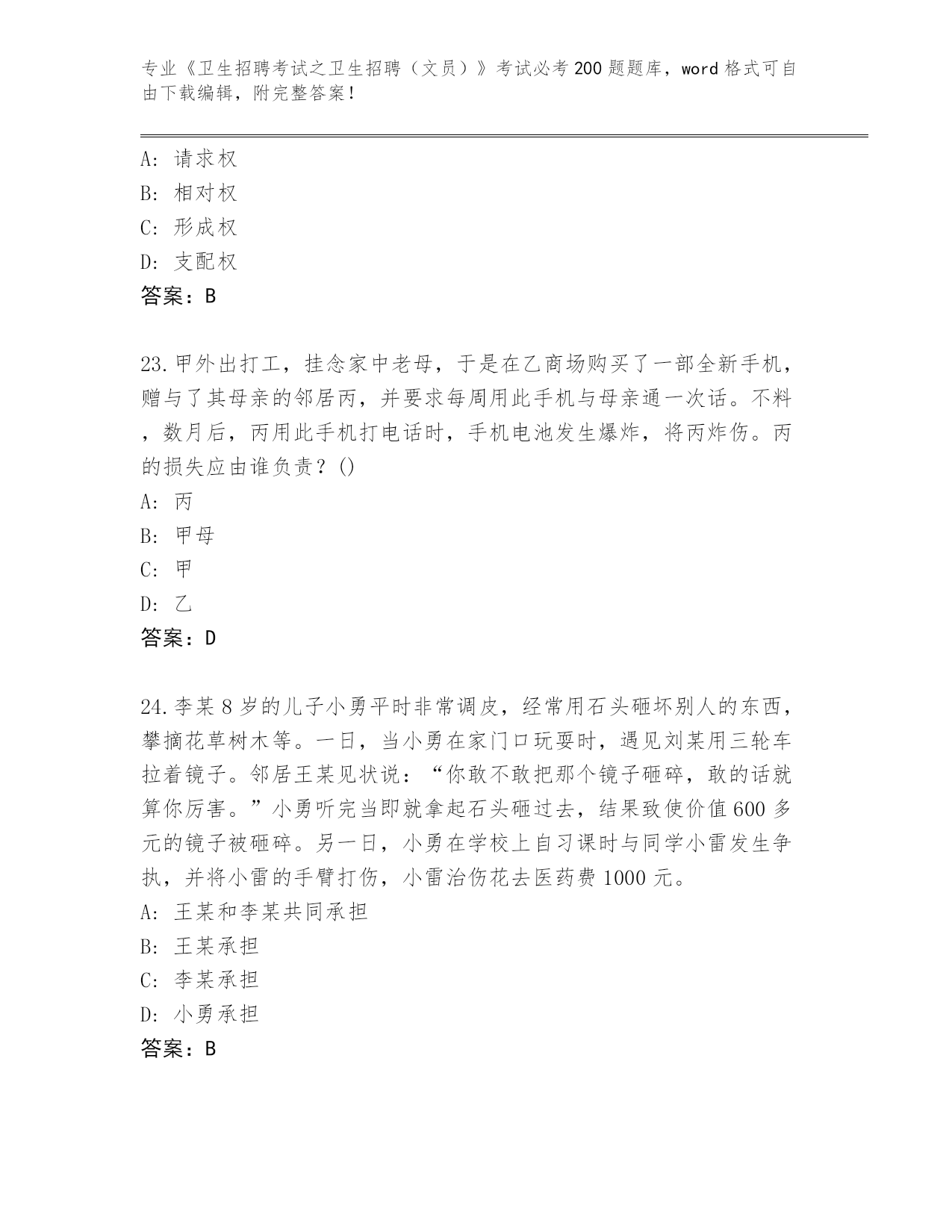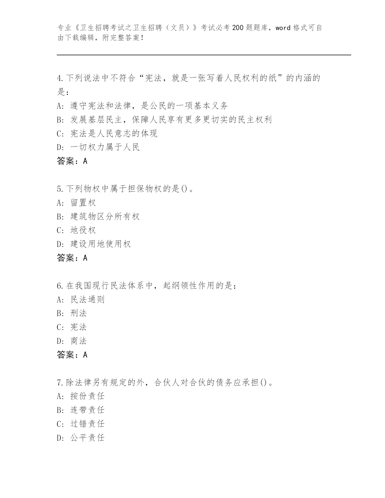 山东省即墨市2023-24年《卫生招聘考试之卫生招聘(文员)》考试必考200题内部题库含答案【典型题】