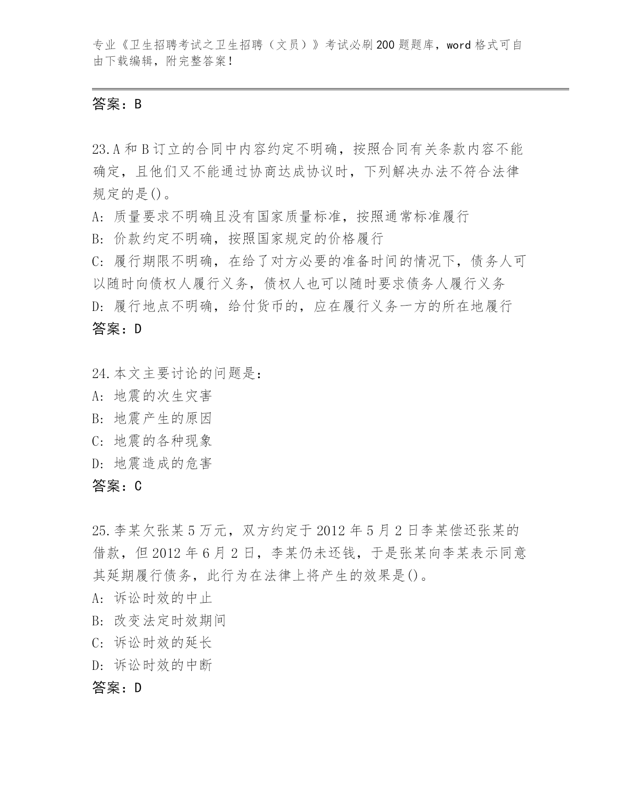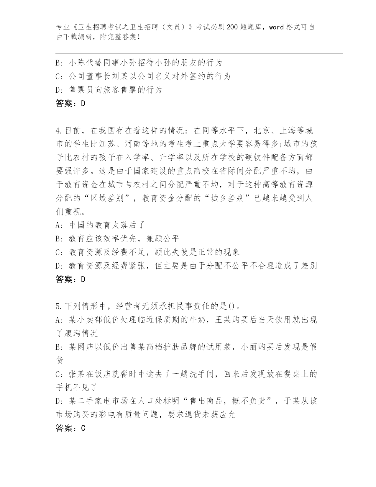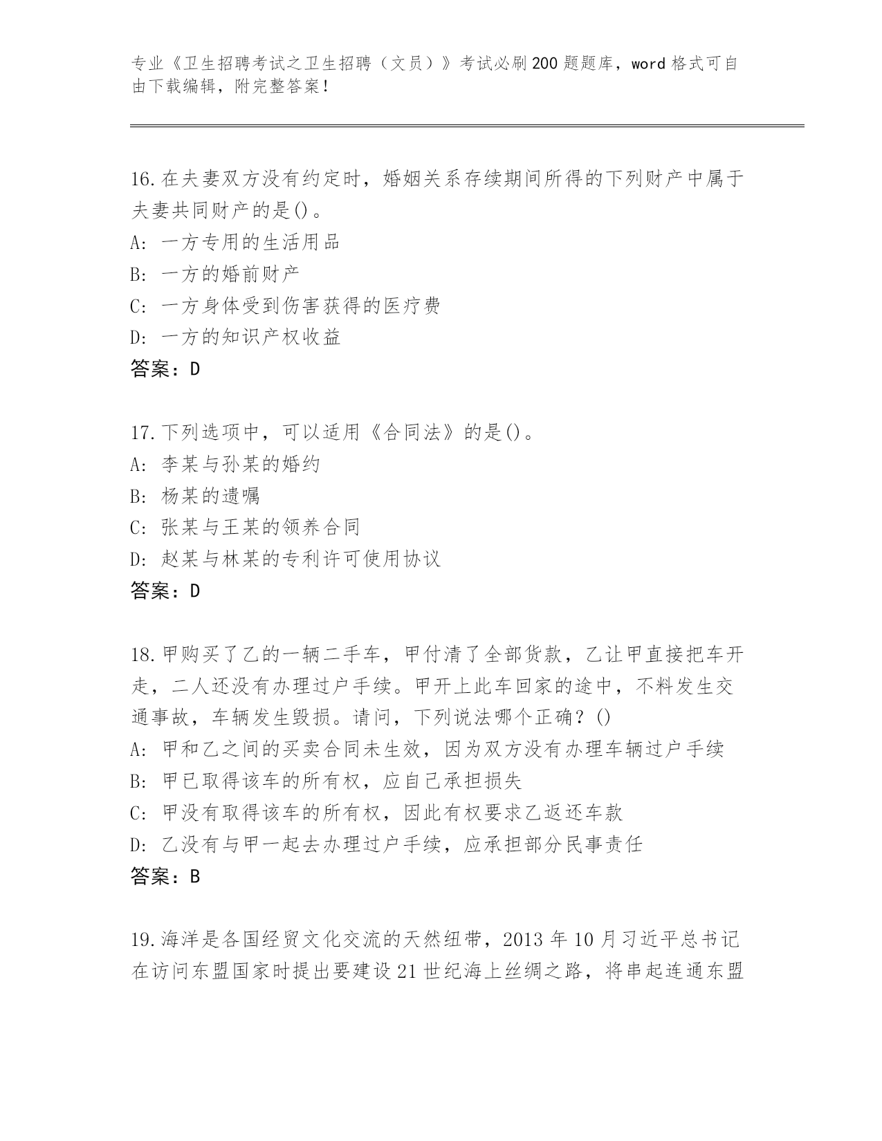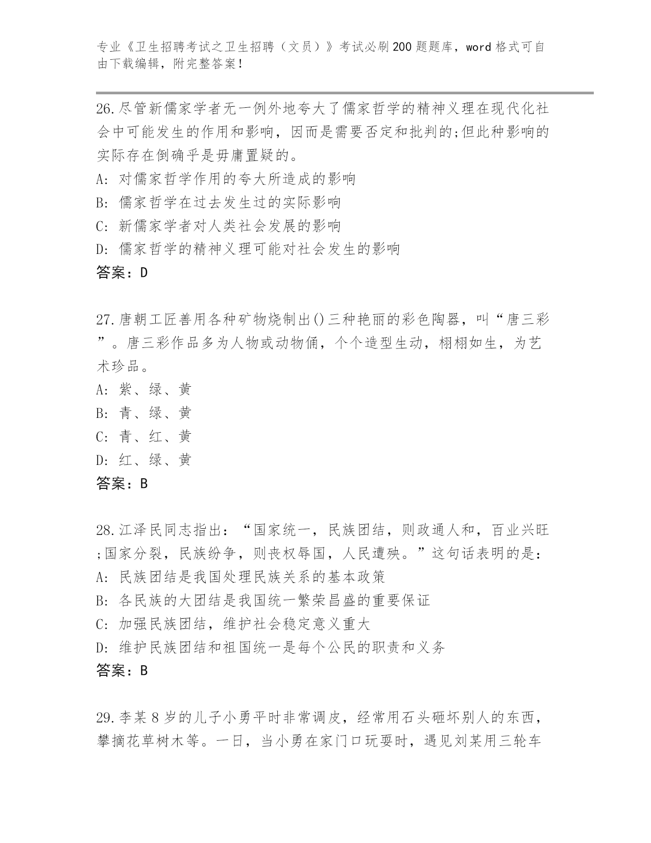 广东省《卫生招聘考试之卫生招聘(文员)》考试必刷200题题库(突破训练)