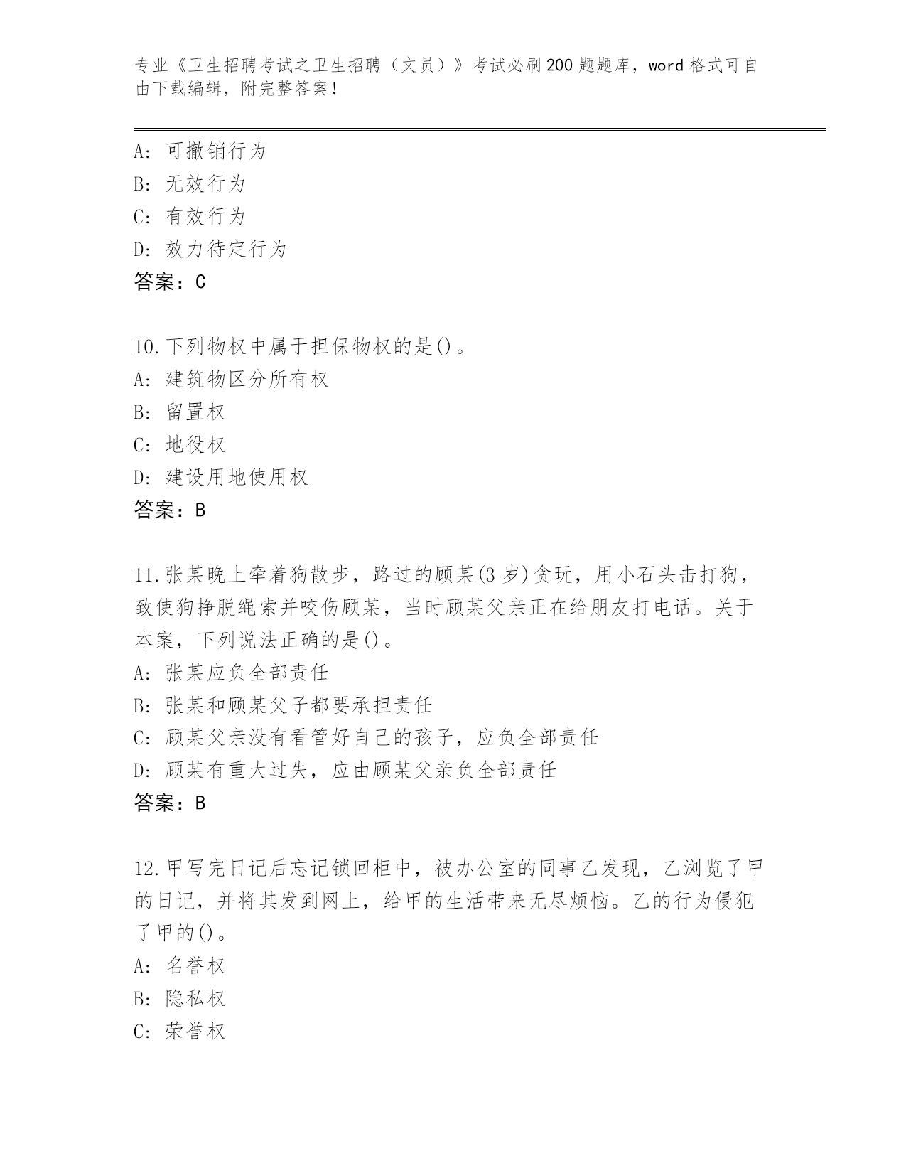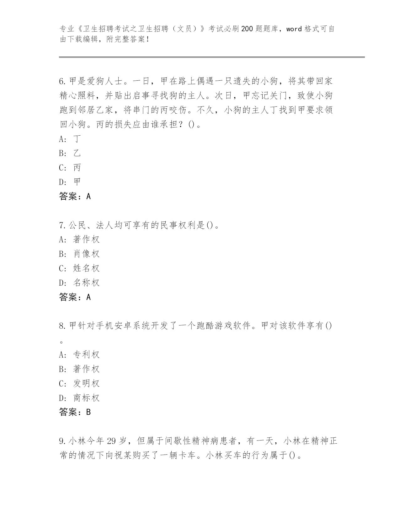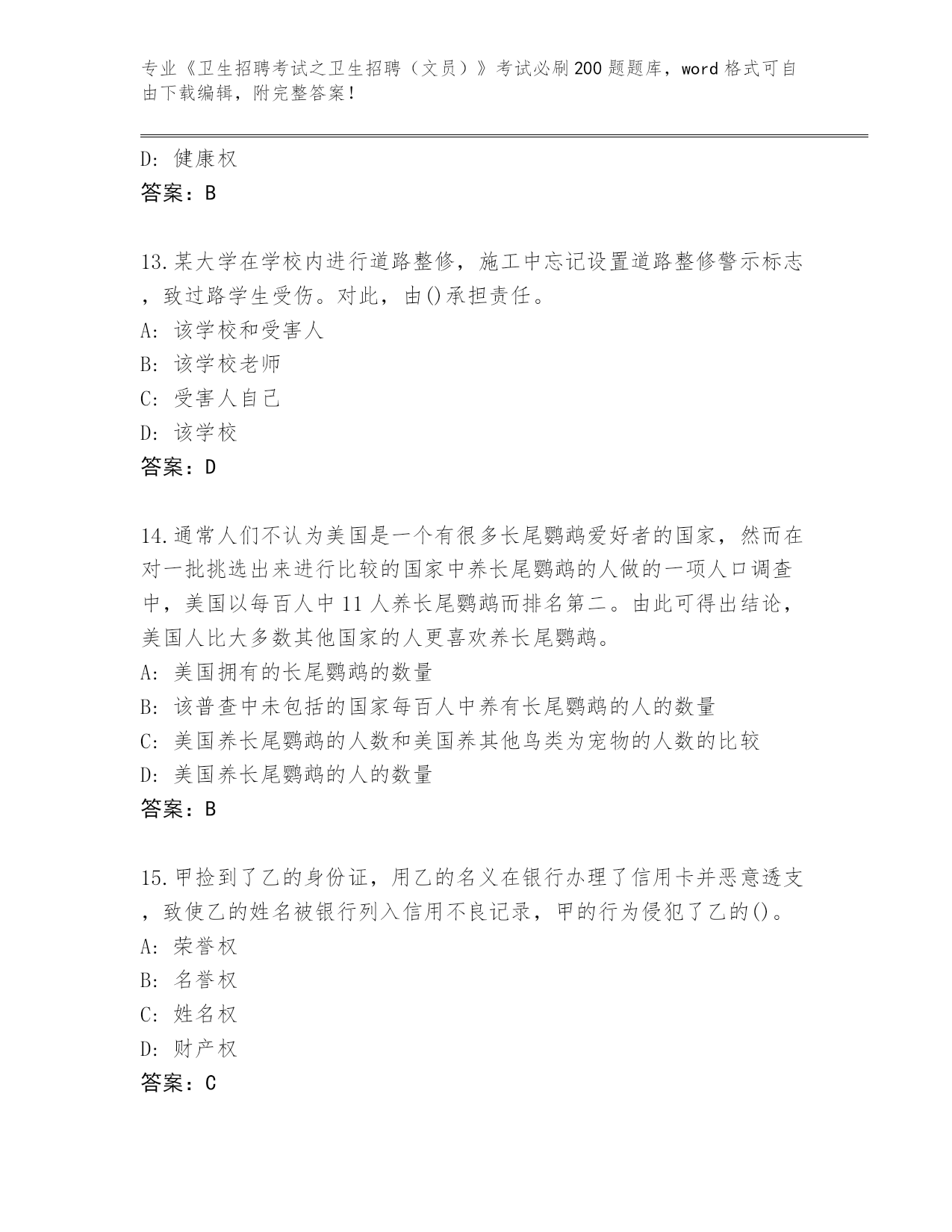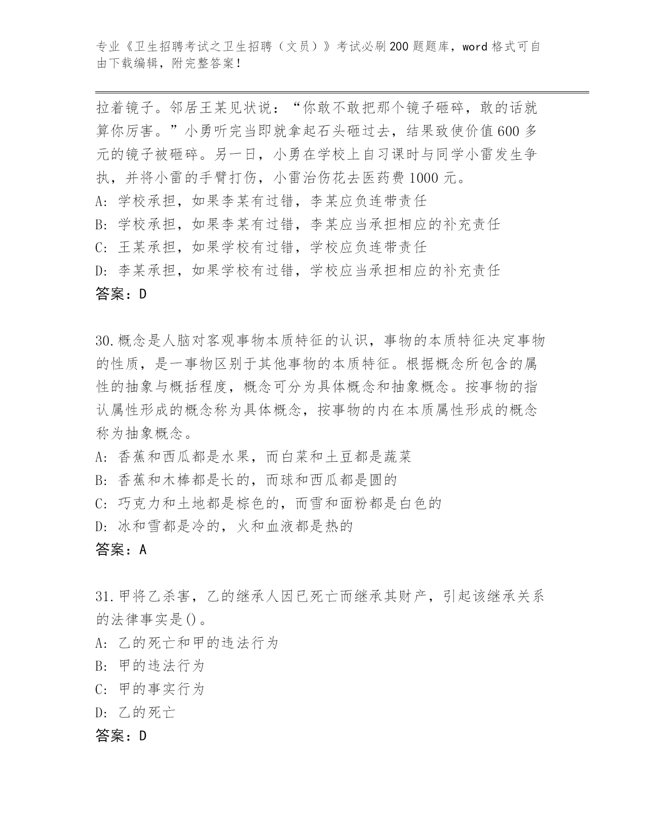 广东省《卫生招聘考试之卫生招聘(文员)》考试必刷200题题库(突破训练)