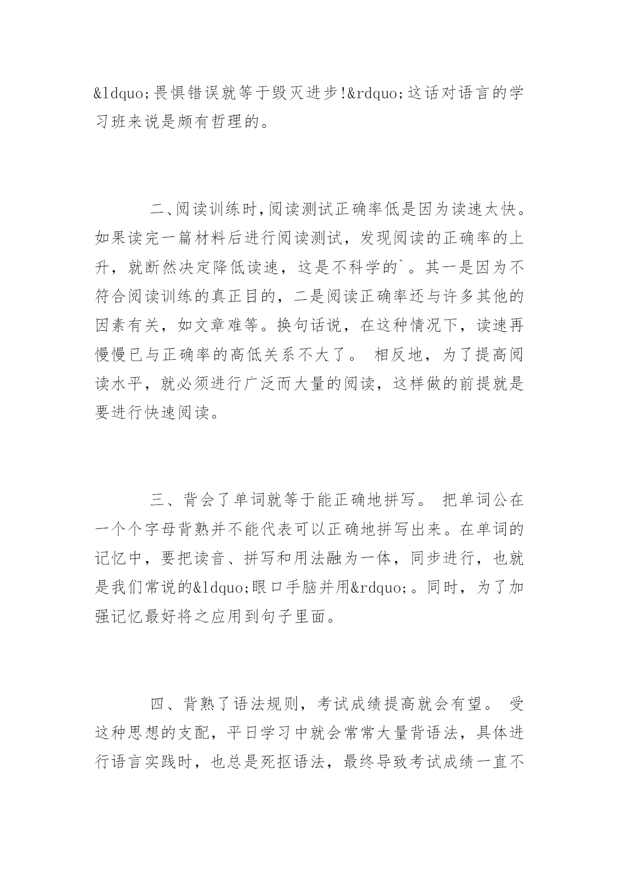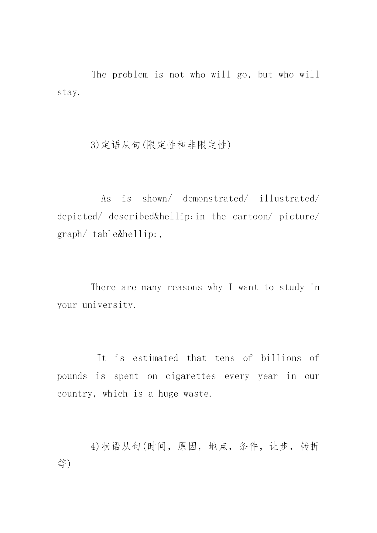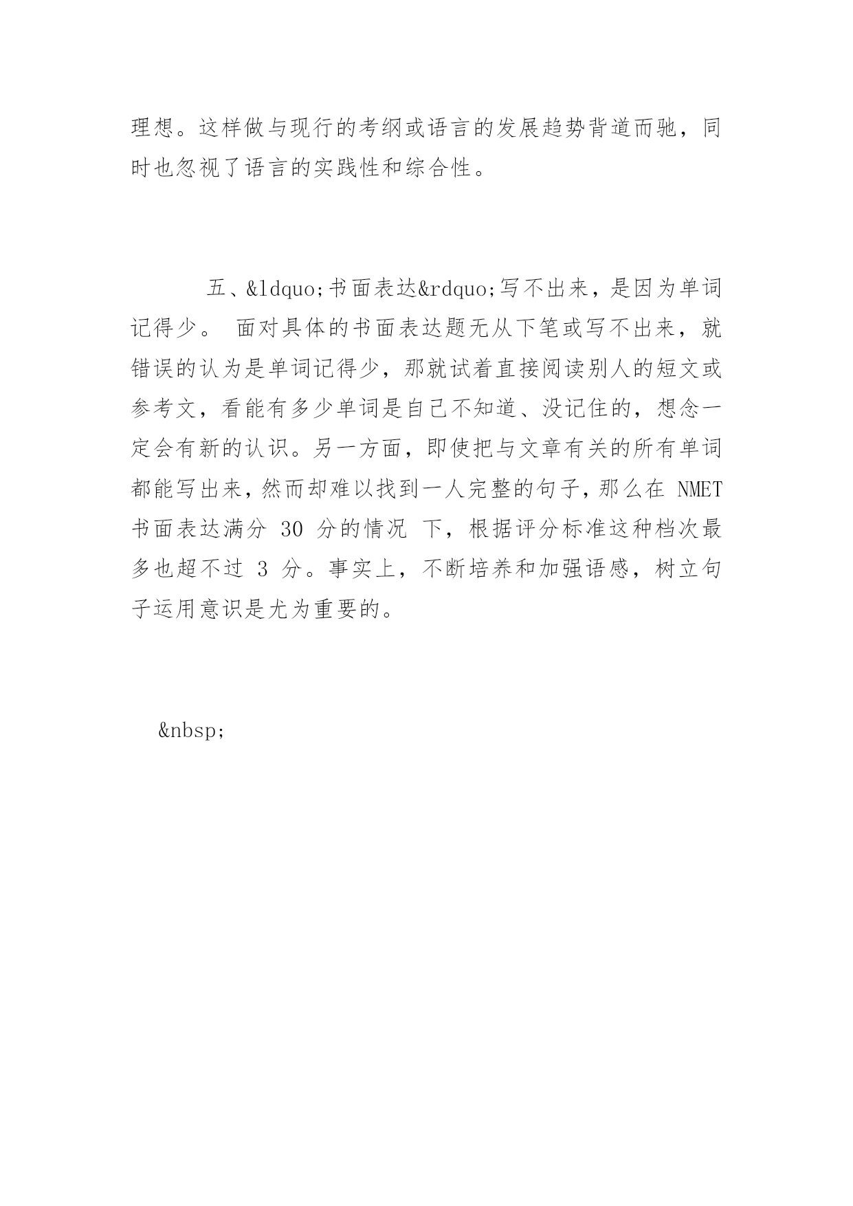 广东高考英语高频单词复习讲义2017广东高考英语必备高频单词复习讲义要想在广东高考的英语考试中取得好成绩,复习好高频单词的复习讲义必不可少,下面百分网小编为大家整理的广东高考英语必备高频单词复习讲义,希望大家喜欢。广东高考英语必备高频单词复习讲义~+名词calculateaddress打算演说calculatearea计算面积calculatethecostofthejourney计算旅途的费用calculatecrime蓄意犯罪calculateaneclipse预测日(月)食calculateinsult有意侮辱calculateload设计负载calculateman-daysinattendance应出勤工日数calculatethemoney数钱~+副词calculatementally心算calculateprecisely精确计算calculateroughly估计calculateshrewdly精明地计算calculatewrongly计算错误~+介词calculateat9000计约为九千calculatebythousand数以千计calculatefor适合于,以…为目的calculateon〔upon〕期待,指望,依靠calculateonsb'sco-operation指望某人的协作calculateonafineweather指望有个好天气calculateonalong-termbasis作长期打算calculatetoanicety设想很细致高考英语写作经典句型1)主语从句Itiscommonknowledgethathonestyisthebestpolicy.Itiswell-knownthat…Itisself-evident/conceivable/obvious/apparentthat…Itgoeswithoutsayingthat…Itisuniversallyacknowledgedthat…Itis/that2)宾(表)语从句Wecannotunderstandwhyhewassocrueltohisroommates.Theproblemisnotwhowillgo,butwhowillstay.3)定语从句(限定性和非限定性)Asisshown/demonstrated/illustrated/depicted/described…inthecartoon/picture/graph/table…,TherearemanyreasonswhyIwanttostudyinyouruniversity.Itisestimatedthattensofbillionsofpoundsisspentoncigaretteseveryyearinourcountry,whichisahugewaste.4)状语从句(时间,原因,地点,条件,让步,转折等)Whenthemanisenjoyingthecigarette,thesmokebecomesamonster(怪物)whichwilldevourhim.Whateverthereason,therearestillsomeproblemswithstudentuseofcomputers.5)分词短语做定语或状语Prof.Kangcametoouruniversity,givingusalectureonhowtoacquireEnglishbetter.高考英语二轮复习误区一、因怕犯错误而不敢开口。学习水平低,但学习的信心和勇气一点都不能少。要提高学习成绩,就要多开口,就要敢于犯错误。语言水平提高的过程,就是不断犯错误的过程。学英语,简单地说,就是学说话。不开口显然不会犯错误,但永远也就没有进步的可能。有句很著名的话说:“畏惧错误就等于毁灭进步!”这话对语言的学习班来说是颇有哲理的。二、阅读训练时,阅读测试正确率低是因为读速太快。如果读完一篇材料后进行阅读测试,发现阅读的正确率的上升,就断然决定降低读速,这是不科学的`。其一是因为不符合阅读训练的真正目的,二是阅读正确率还与许多其他的因素有关,如文章难等。换句话说,在这种情况下,读速再慢慢已与正确率的高低关系不大了。相反地,为了提高阅读水平,就必须进行广泛而大量的阅读,这样做的前提就是要进行快速阅读。三、背会了单词就等于能正确地拼写。把单词公在一个个字母背熟并不能代表可以正确地拼写出来。在单词的记忆中,要把读音、拼写和用法融为一体,同步进行,也就