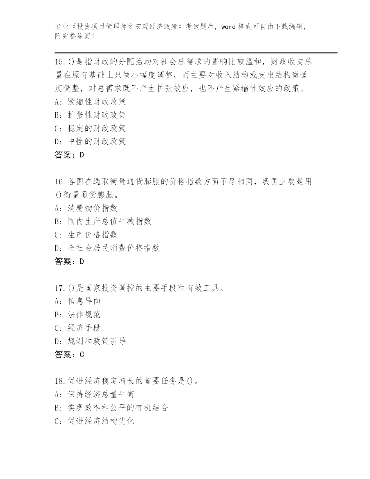 2024年辽宁省沈北新区《投资项目管理师之宏观经济政策》考试大全【名师推荐】