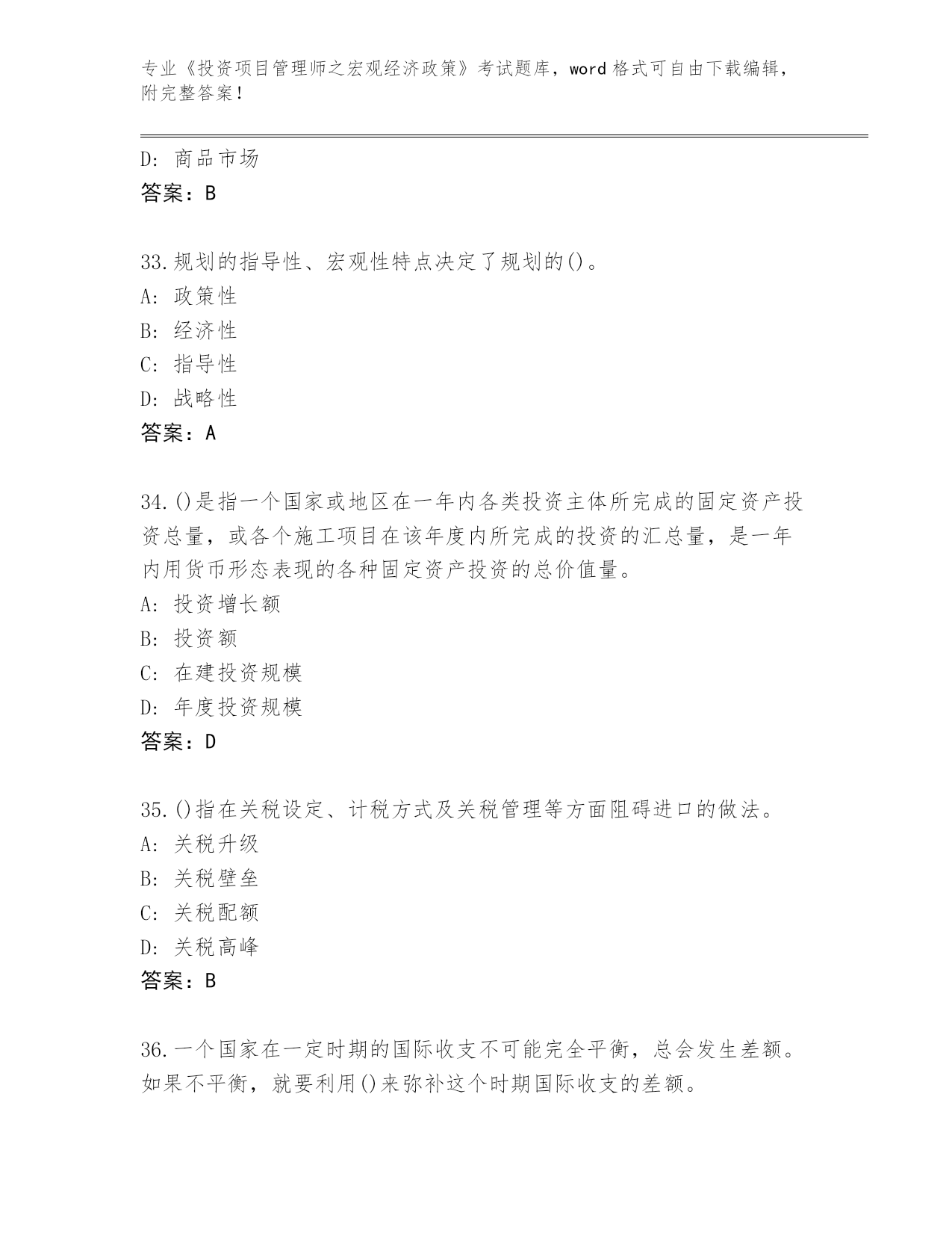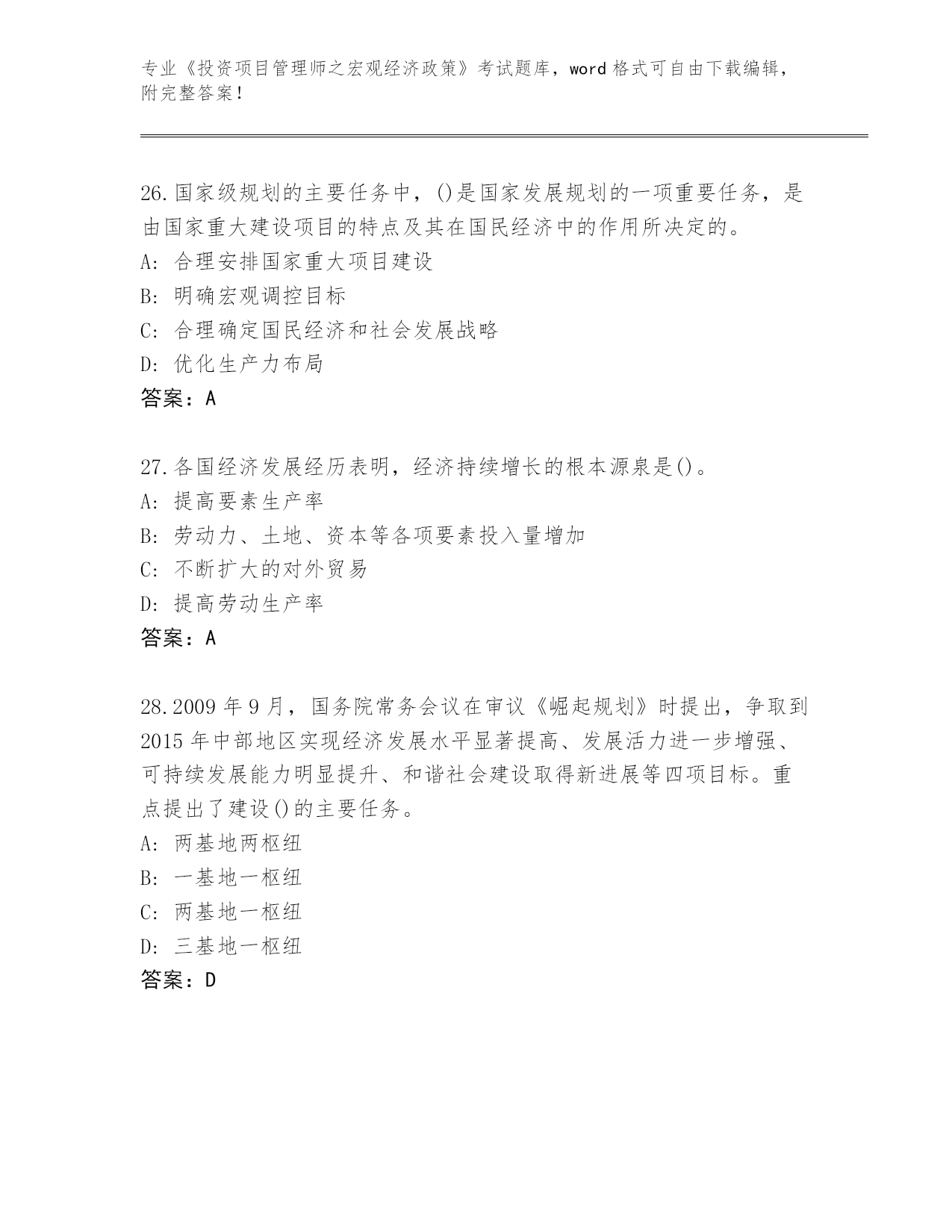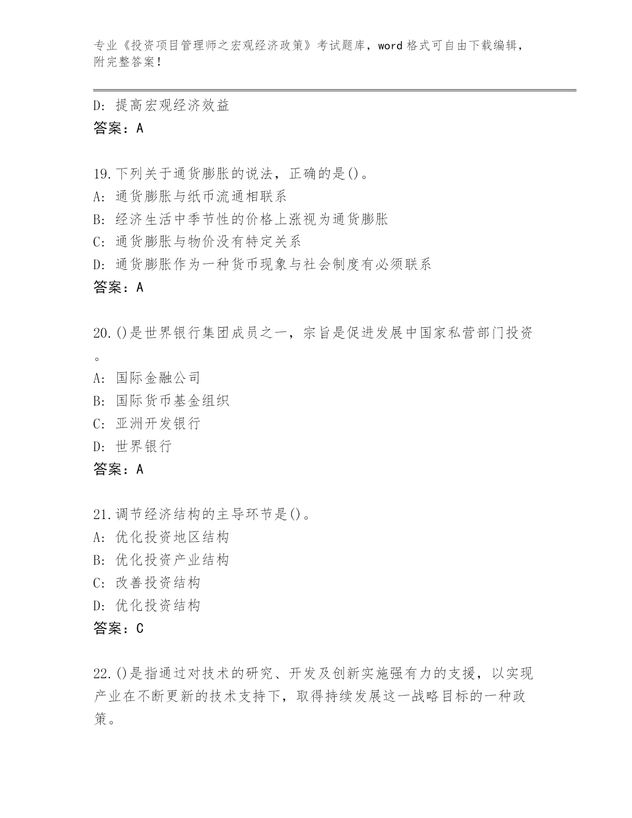 陕西省内部使用《投资项目管理师之宏观经济政策》考试王牌题库附答案(名师推荐)